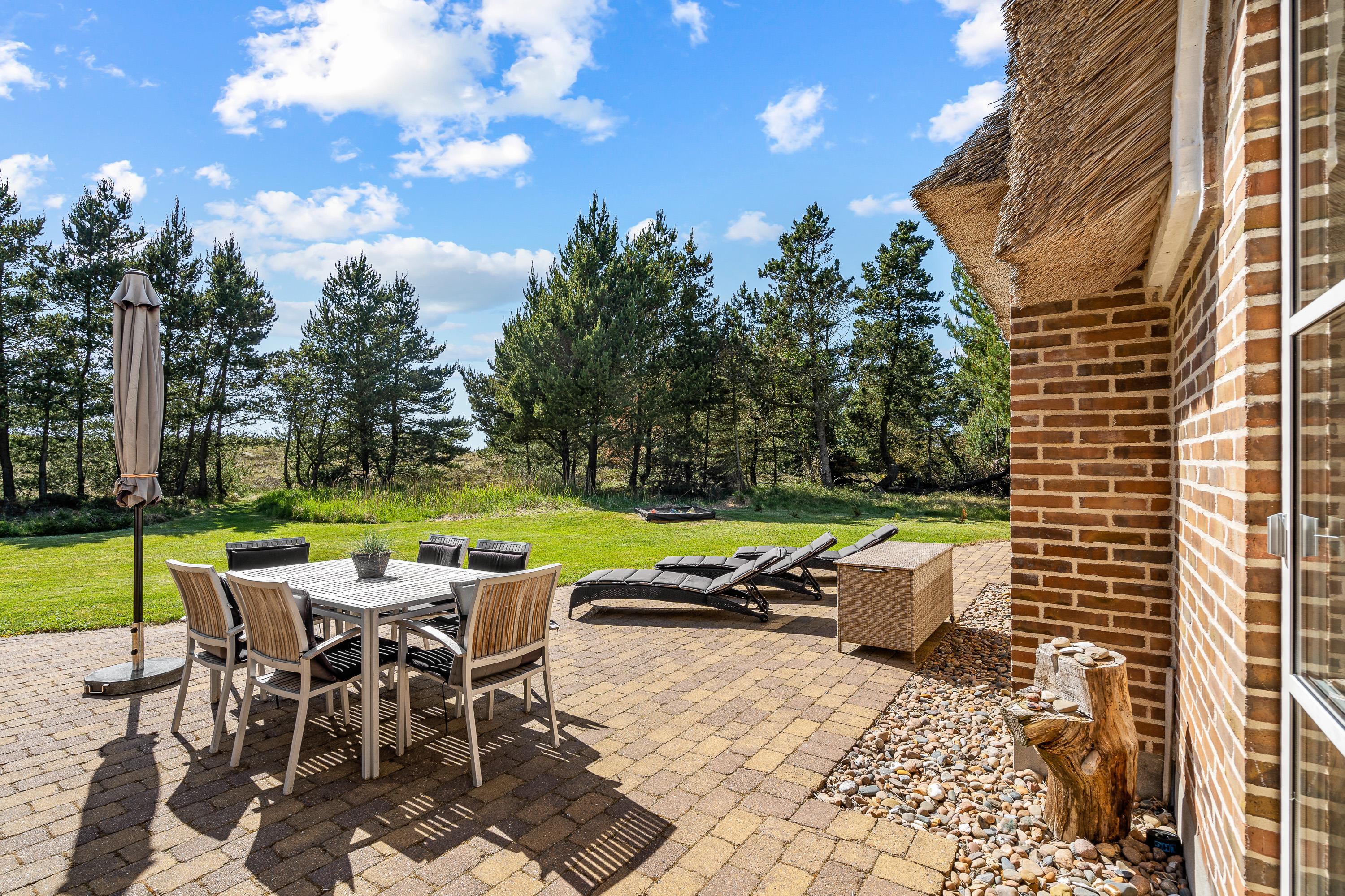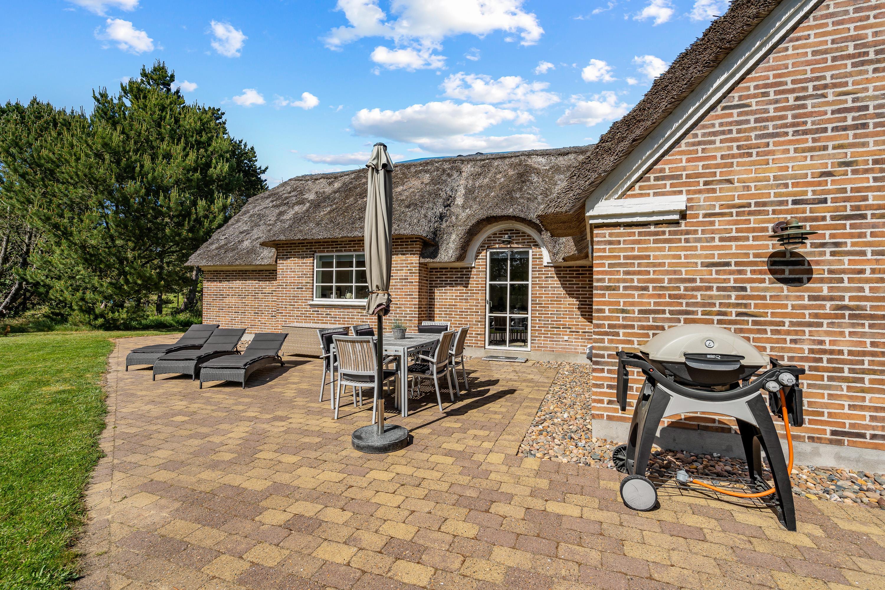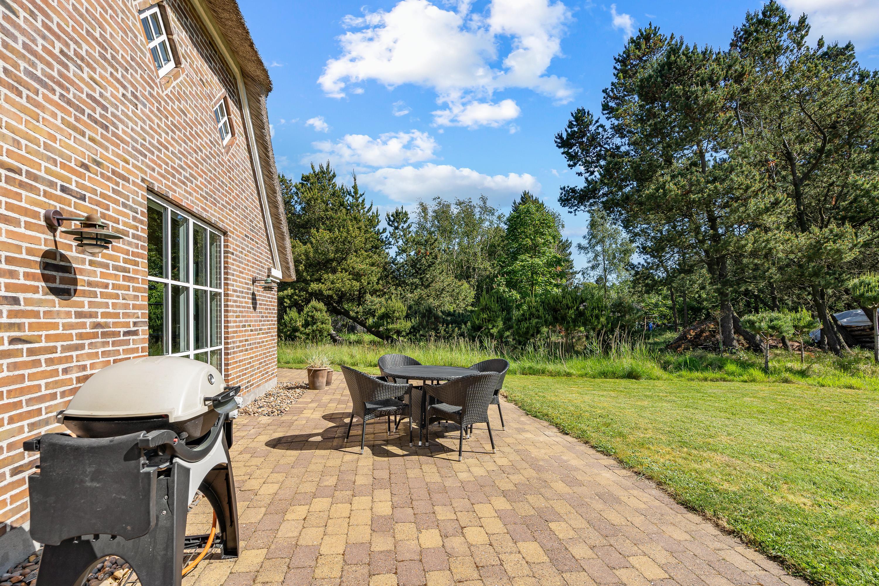 På terrassen har I havemøbler og liggestole til rådighed, som I kan finde jer godt til rette i på en plads i solen. Læn jer tilbage og nyd ferien til lyden af fuglefløjt og børnenes leg i baggrunden. Når det bliver tid til at lave aftensmad, kan I tilberede en lækker middag på gasgrillen på terrassen.