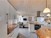 Køkken og spisestue er i åben forbindelse og udgør på den måde ét stort rum, hvor hele familien kan samles omkring fælles madlavning, brætspil eller en god film. Køkkenet er lyst og åbent med god plads til at kokkerere, og i spisestuen kan I nyde hinandens samvær foran den varme brændeovn.