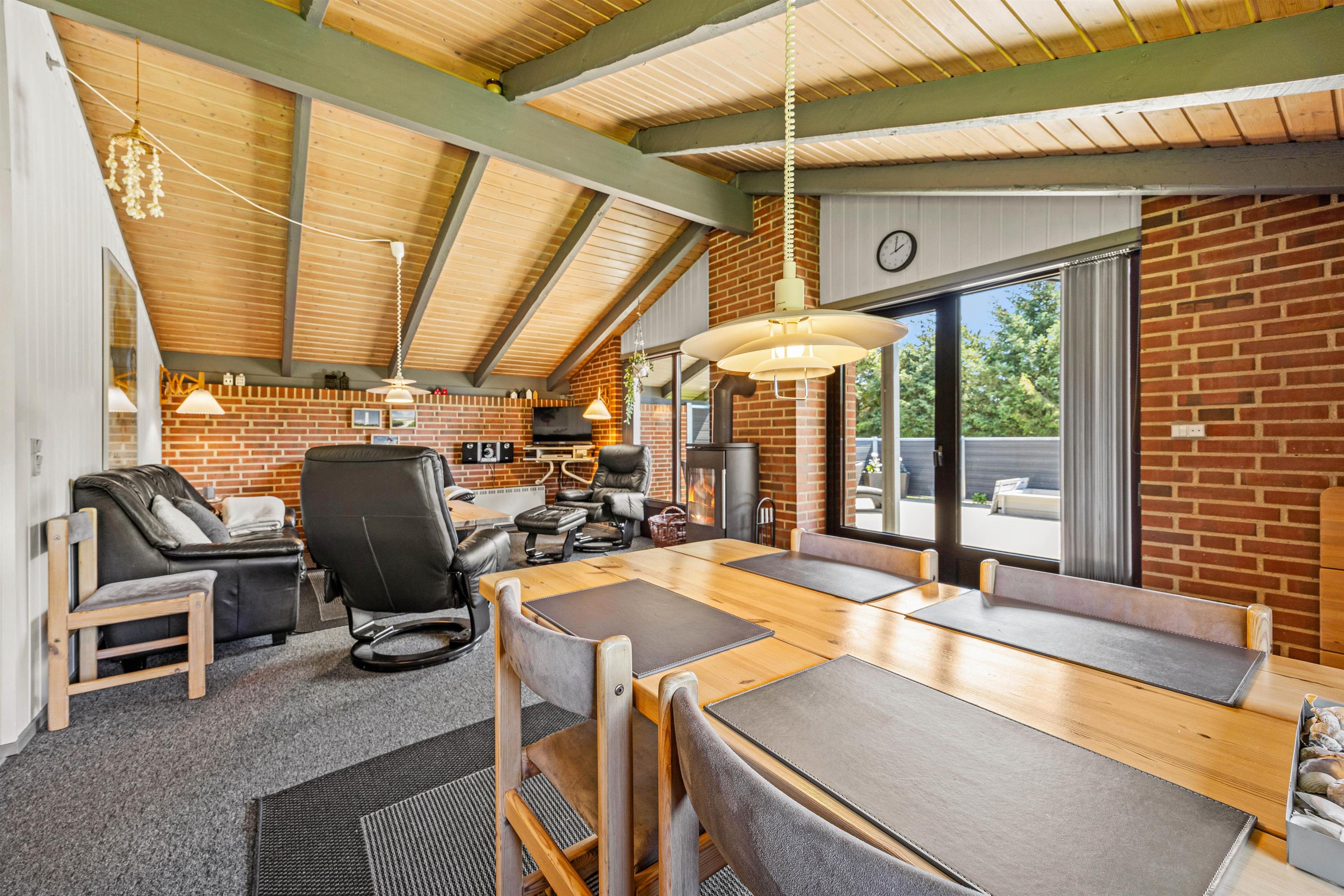 I stuen giver den centralt placerede brændeovn jer dejlig varme på kolde dage, og ellers sørger den effektive luft-til-luft-varmepumpe for, at der altid er et godt indeklima i huset.