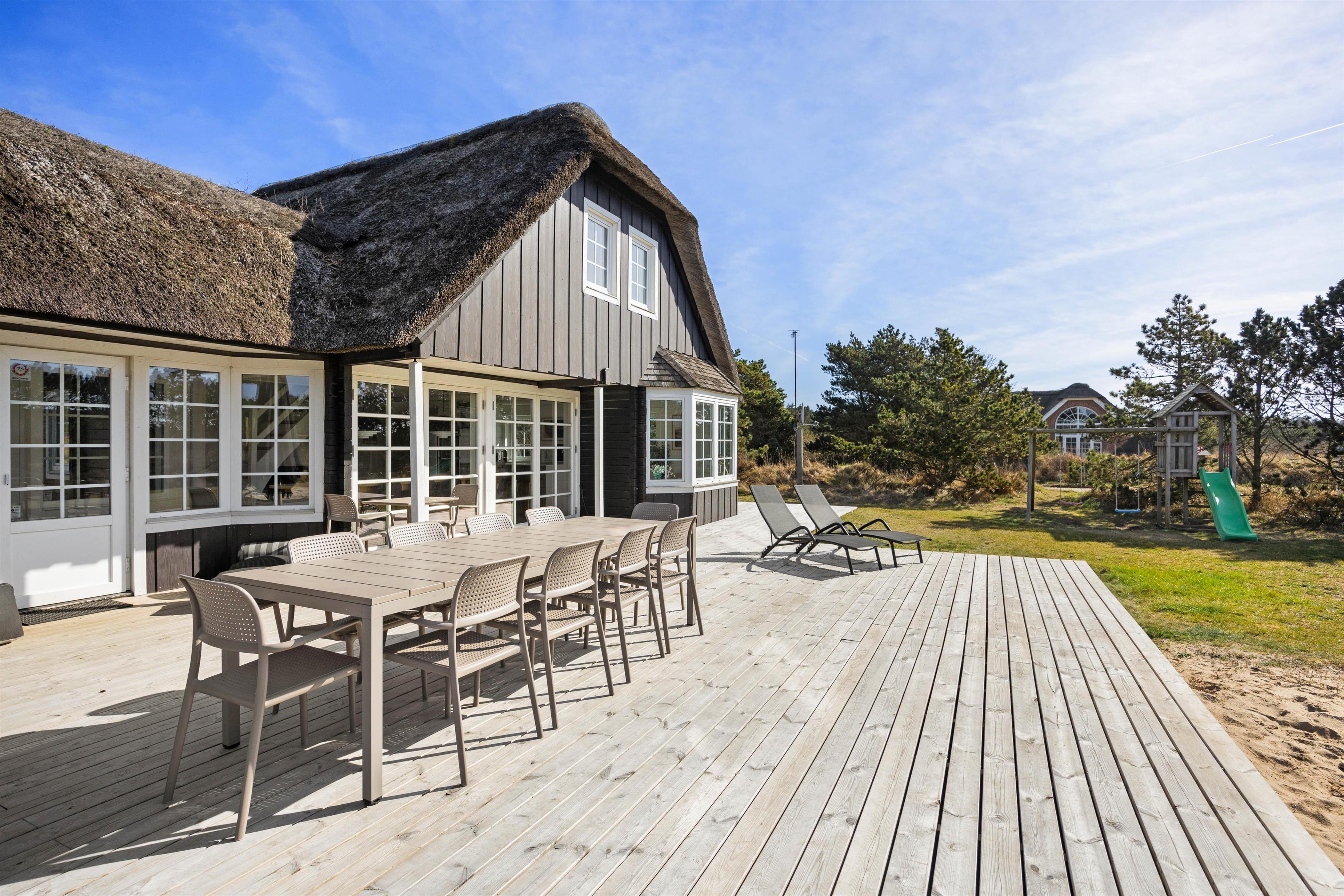 Blåvand er berømt for sin betagende natur og familievenlige atmosfære. I kan nyde den store have på 2500 kvadratmeter, som har en åben terrasse og er oplagt til grill og hyggelige stunder med familien, og børnene kan glæde sig til leg i trampolinen, gyngen og sandkassen, hvilket gør sommerhuset til et godt feriested for hele familien.
