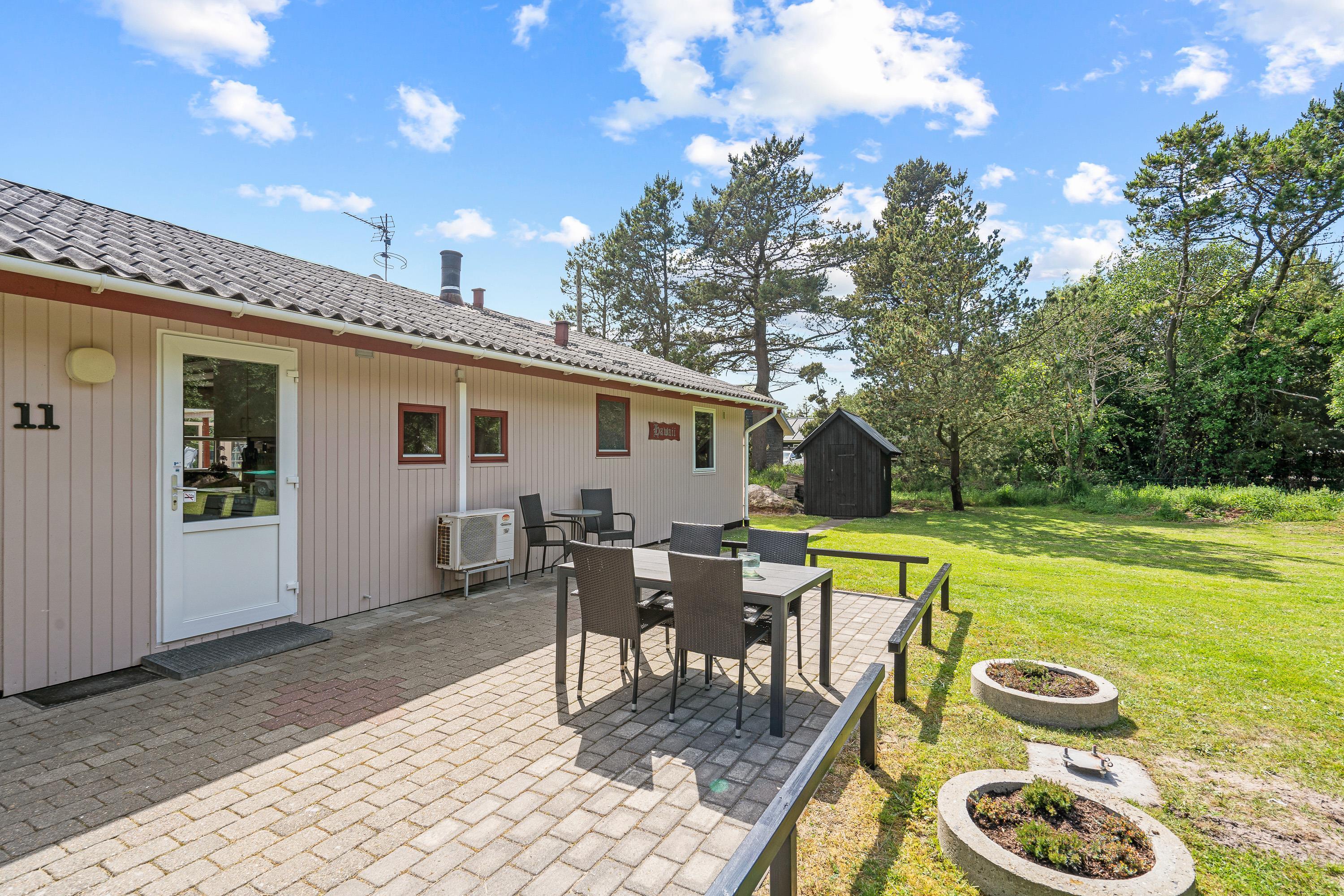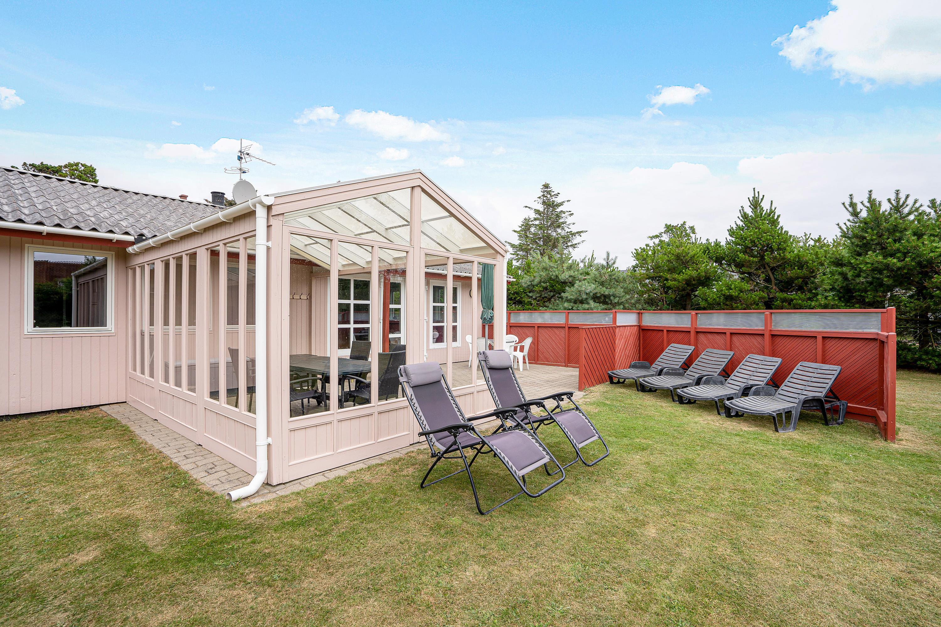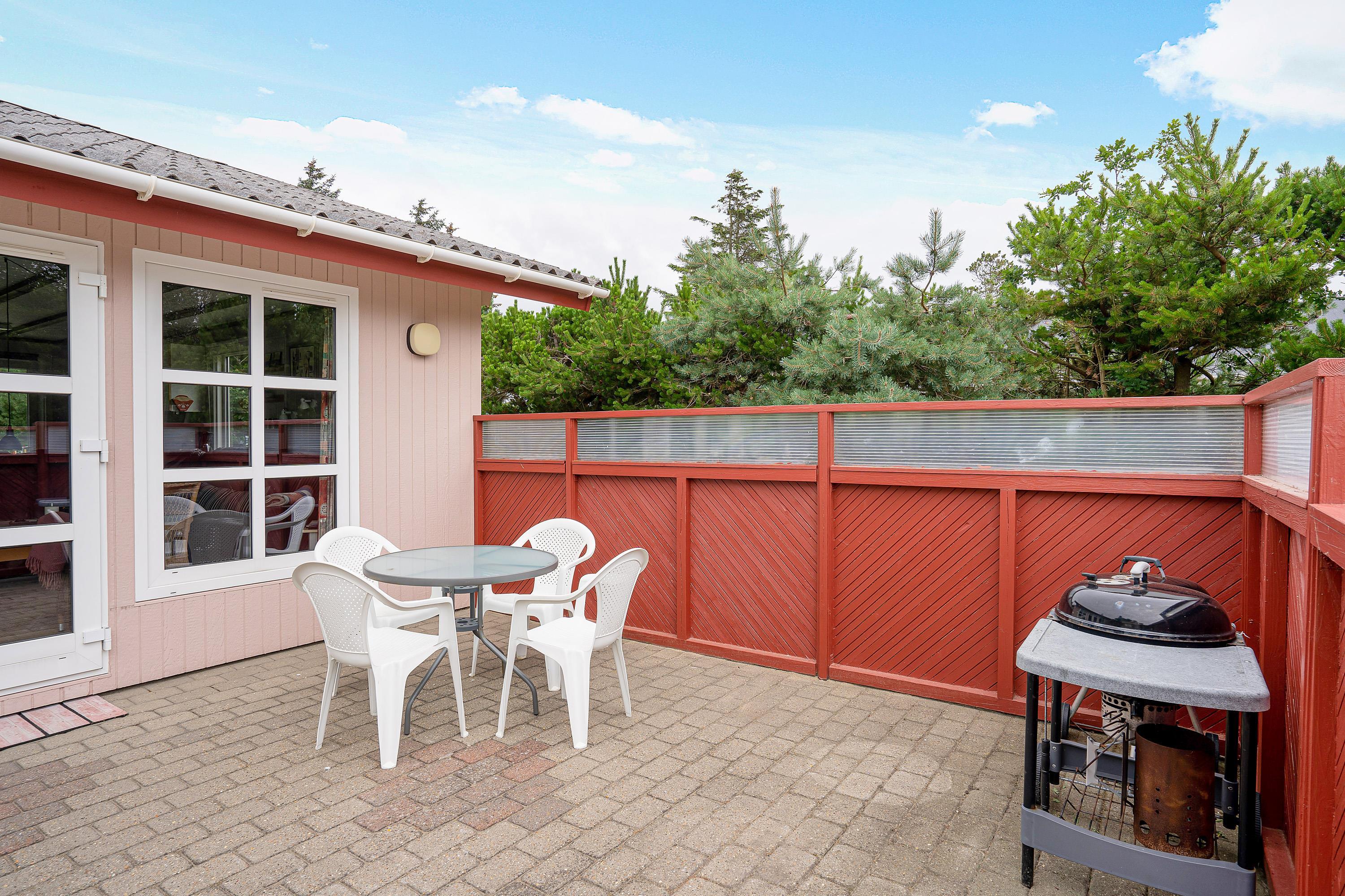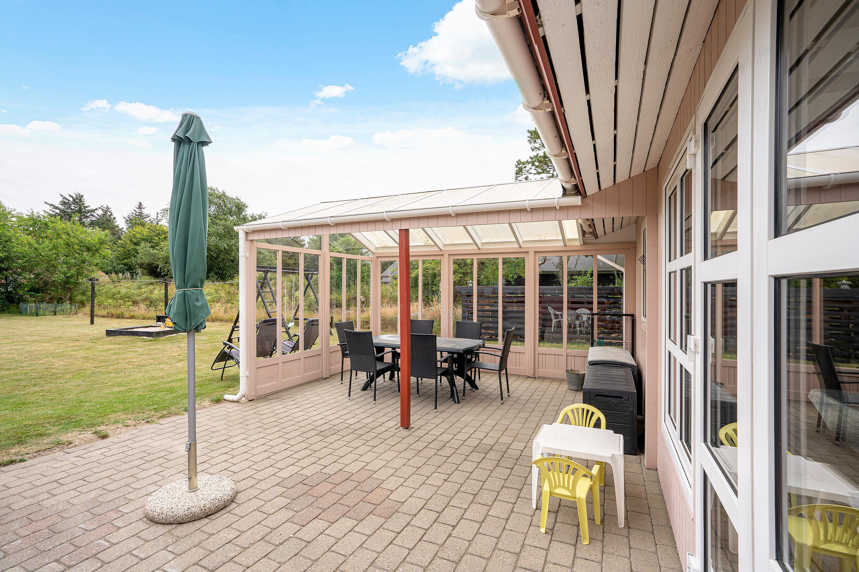 Når I skal se til, mens børnene leger, kan I med fordel gøre det fra sommerhusets sydvendte terrasse. Her kan I finde solens stråler det meste af dagen, og det er det perfekte sted at grille et lækkert aftenmåltid. Desuden vil I også møde en flot udestue, hvor I kan nyde følelsen af at være udendørs - uanset vejret.