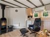De fleste timer af ferien kommer I til at bruge i sommerhusets samlingspunkt – den hyggelige stue, der er kombineret med køkkenet. I stuen er der i 2021 monteret nyt gulv og ny brændeovn, så feriehuset er parat til at sørge for en god ferie til jer!