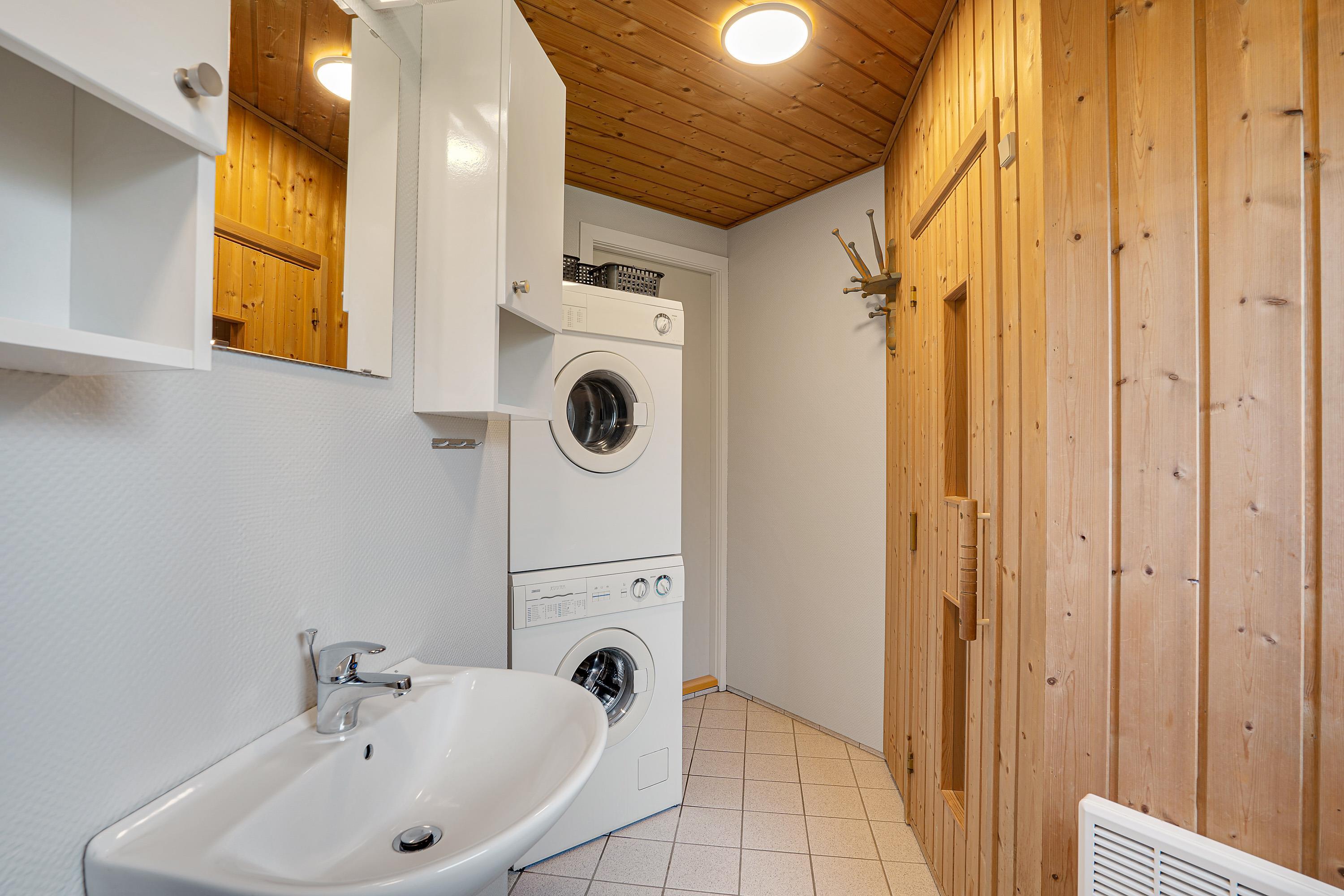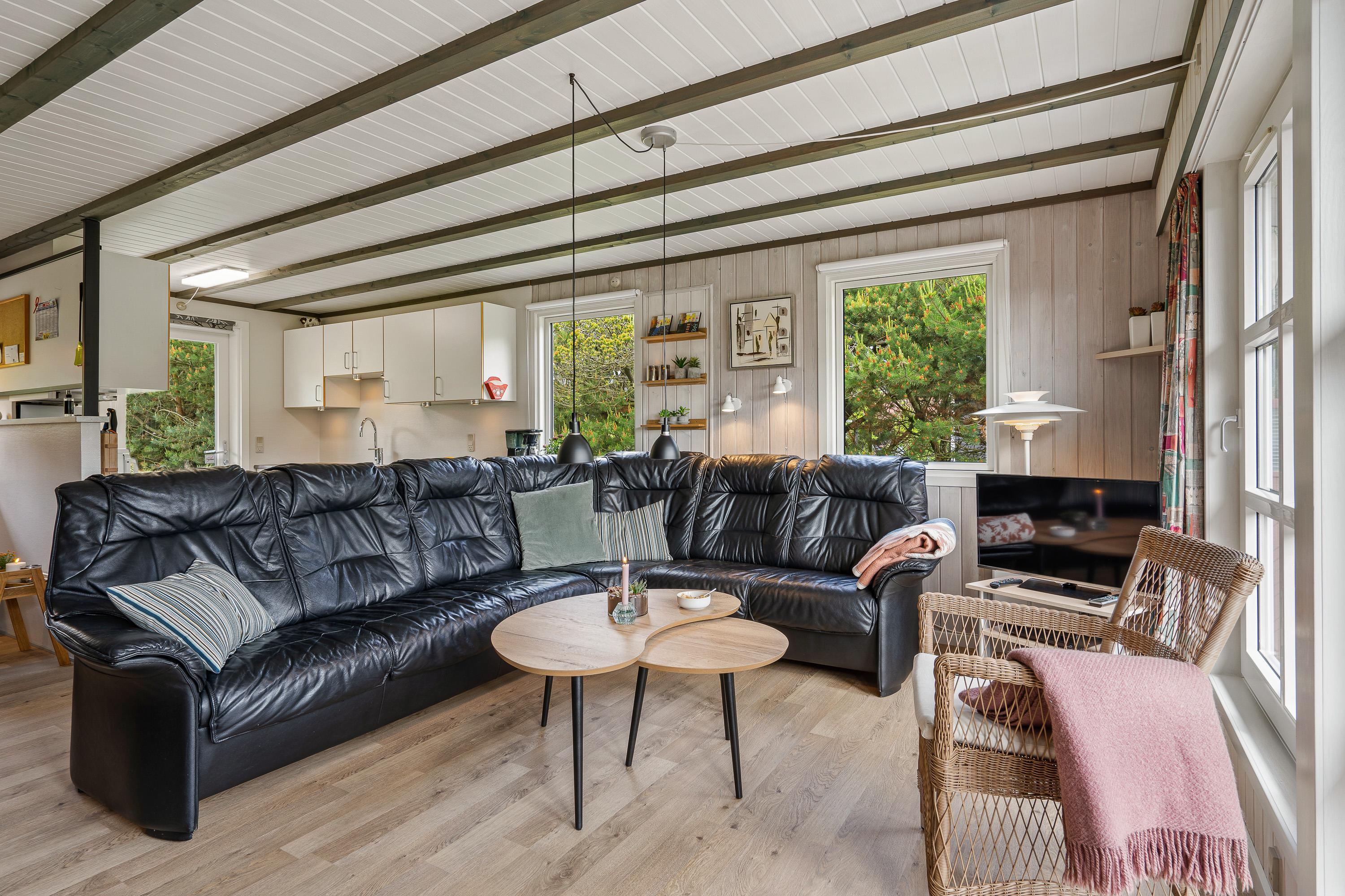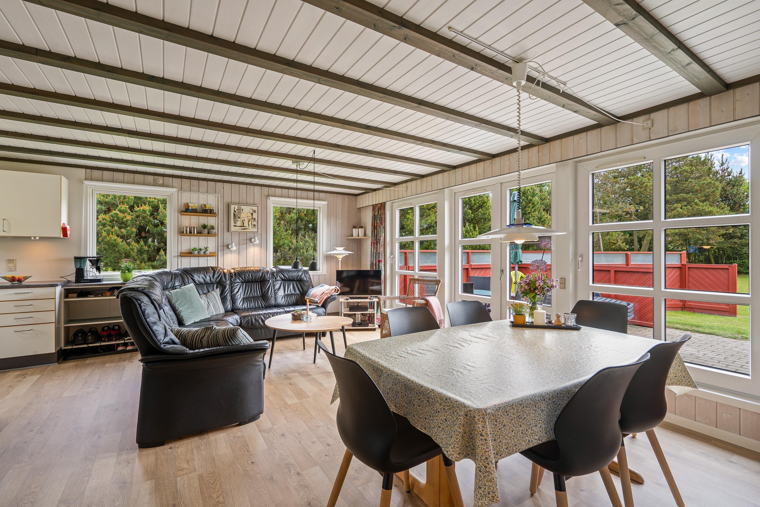 Hvis vestenvinden har vist tænder, hjælper feriehusets økonomiske varmepumpe med at holde jer varme. Derudover vil I naturligvis møde både vaskemaskine, tørretumbler og opvaskemaskine, så I slipper for alt det praktiske og blot skal læne jer tilbage i en af sommerhusets lækre stole.