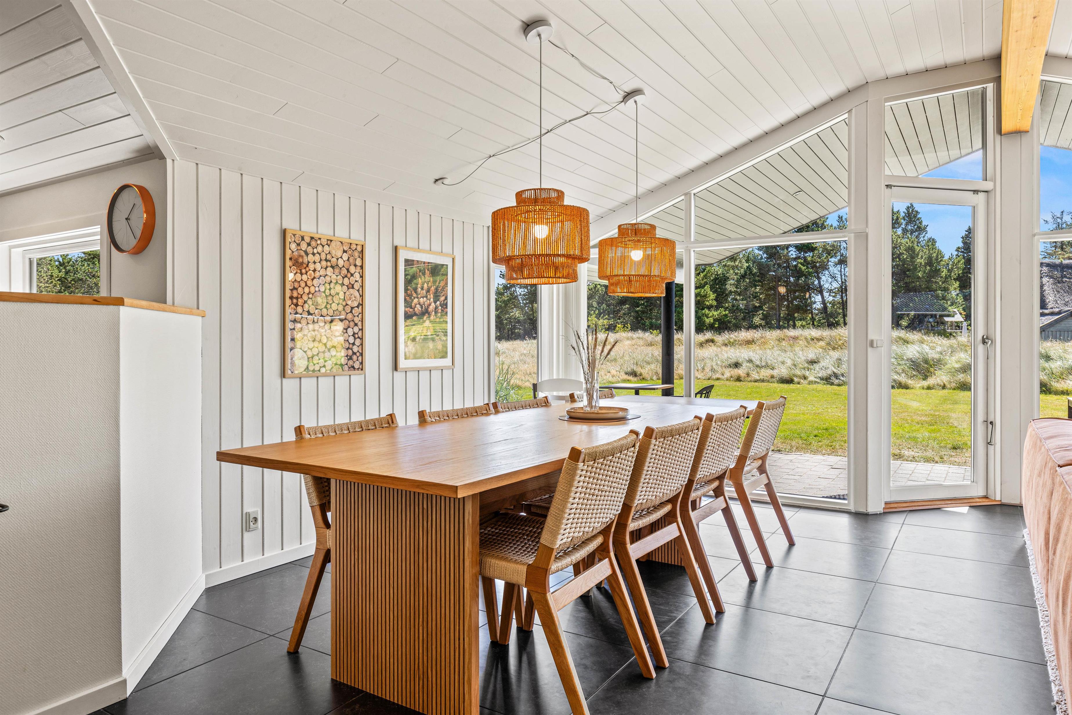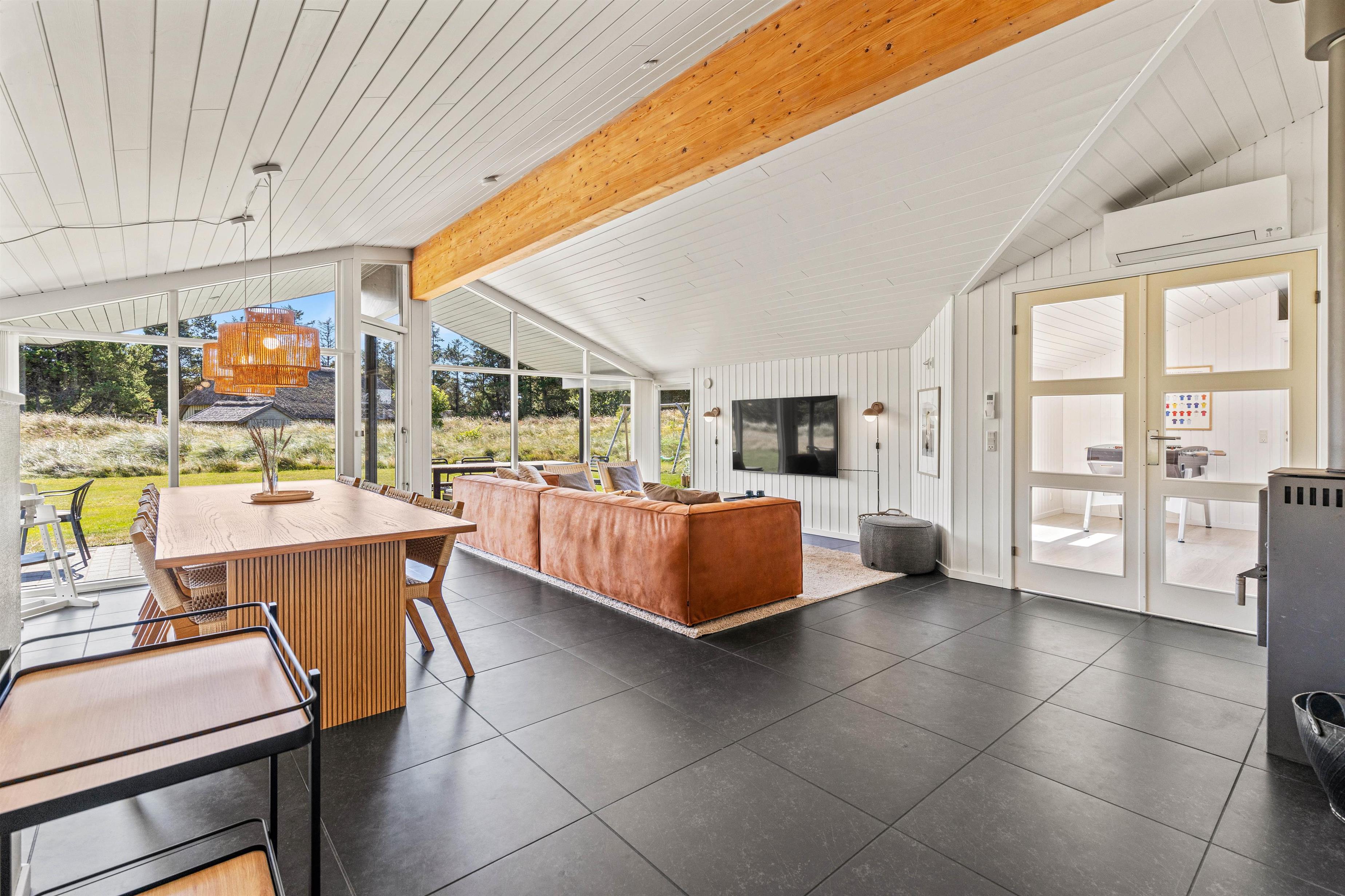Søger I et ferieophold, hvor alle moderne bekvemmeligheder er tilgængelige, vil dette sommerhus i Blåvand tilfredsstille jeres ønsker. Feriehuset er udstyret med en brændeovn, der tilføjer hygge på kølige aftener, samt en luft til luft varmepumpe, der sikrer et behageligt indeklima. De fire soverum er fordelt med to dobbeltsenge og fire enkeltsenge, hvilket giver komfortabel soveplads til alle gæster. Et gæstetoilet og to badeværelser, det ene med gulvvarme, sikrer ingen kø i morgenstunden.