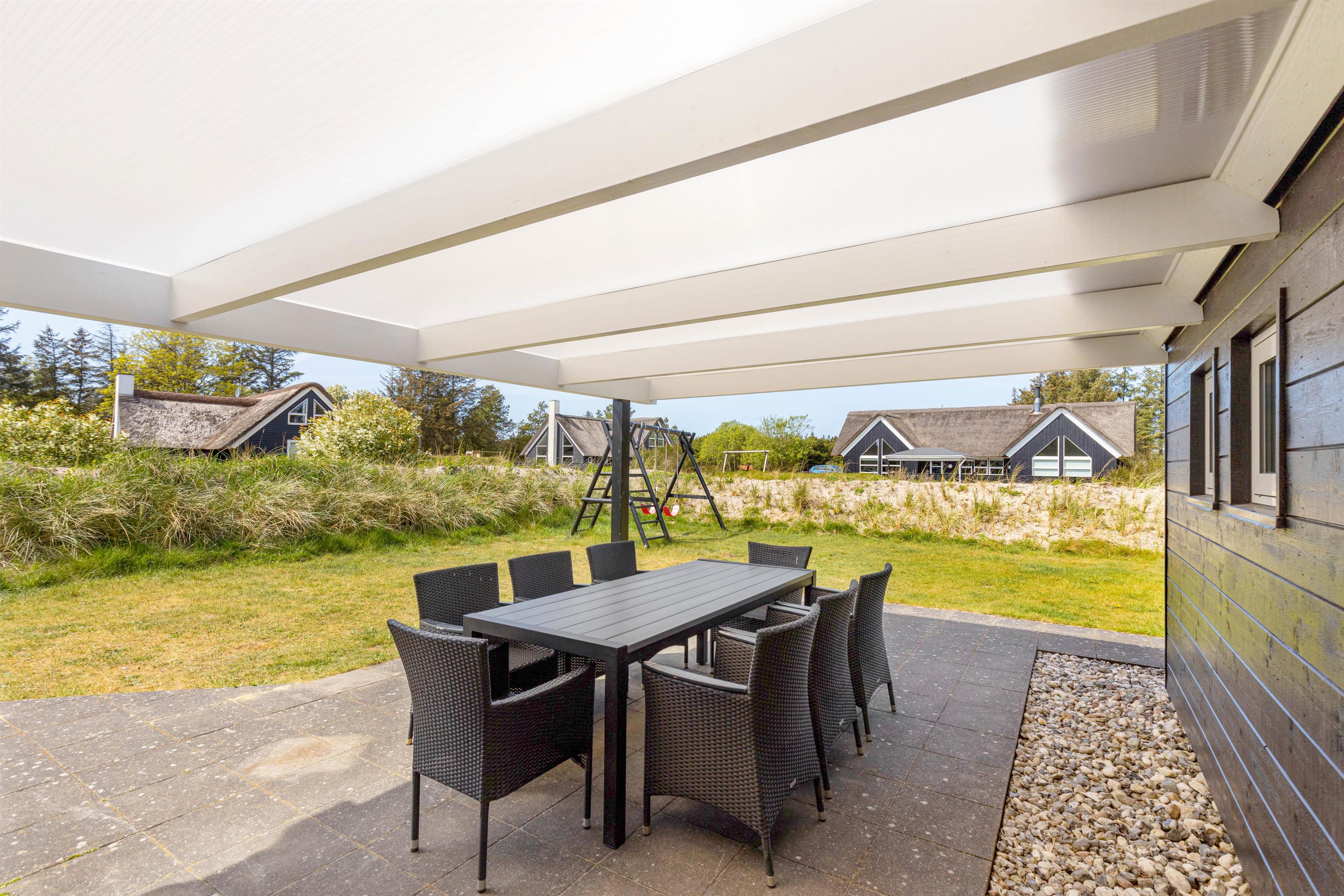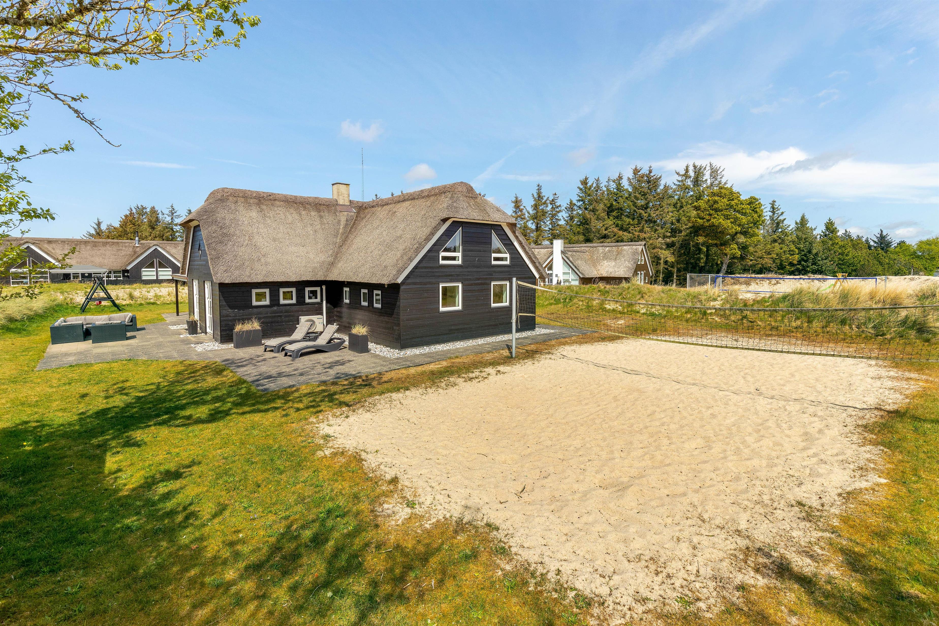 Så snart vejret er til det, er det med at komme ud og nyde den friske vesterhavsluft. Imens I ligger og hygger jer på husets liggestole, eller sidder med en god bog og en kop kaffe på terrassen, så er børnene godt beskæftigede med leg, da her både er gynger, sandkasse og – her skal hele familien nok være med, en lækker beachvolleybane.