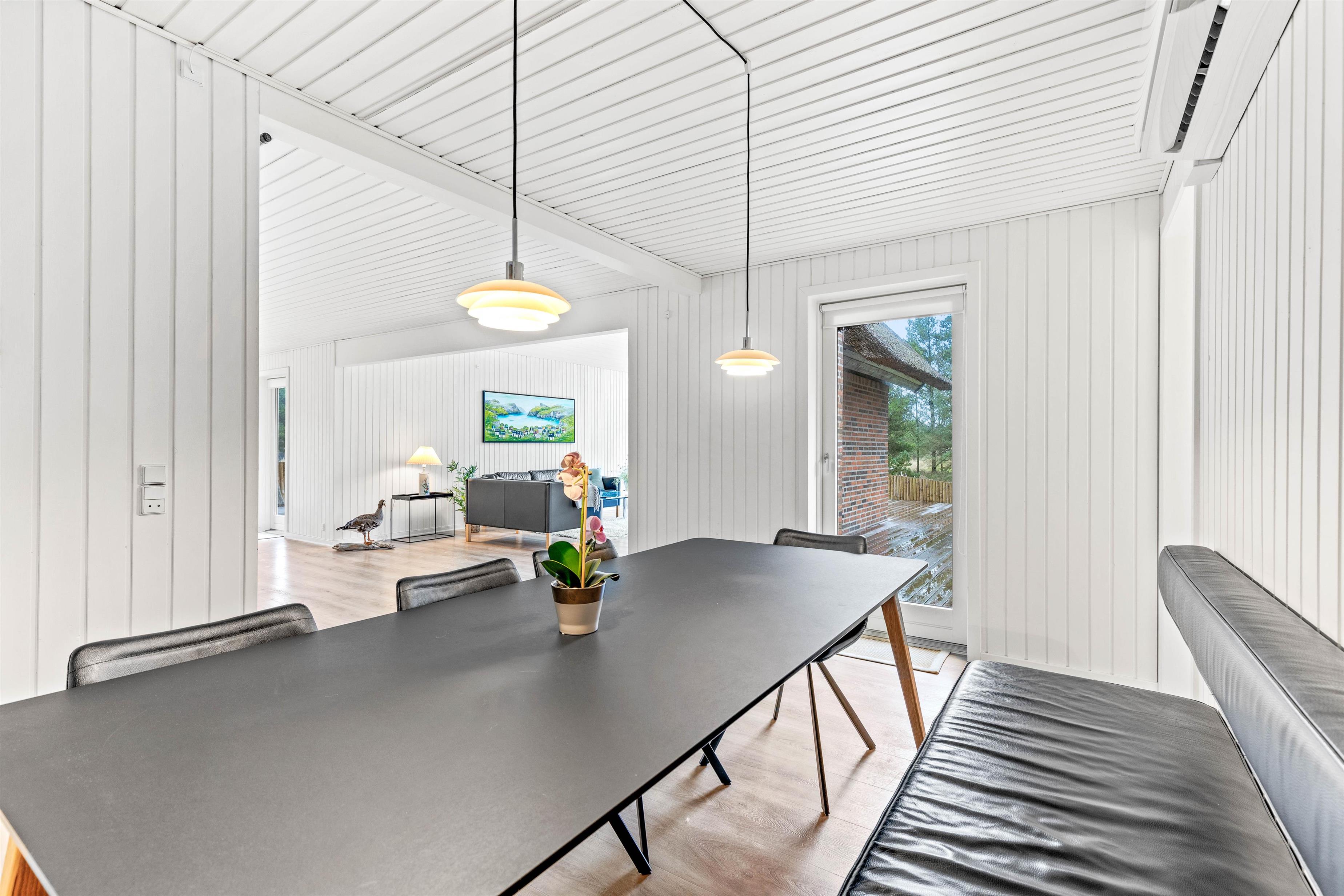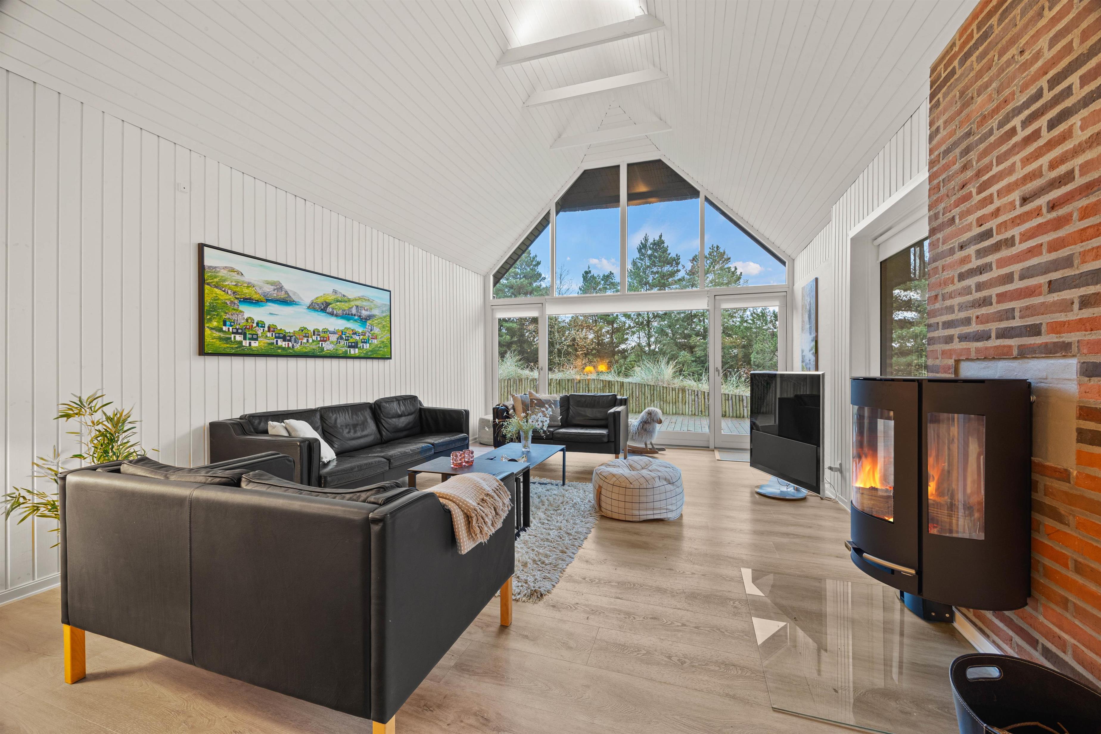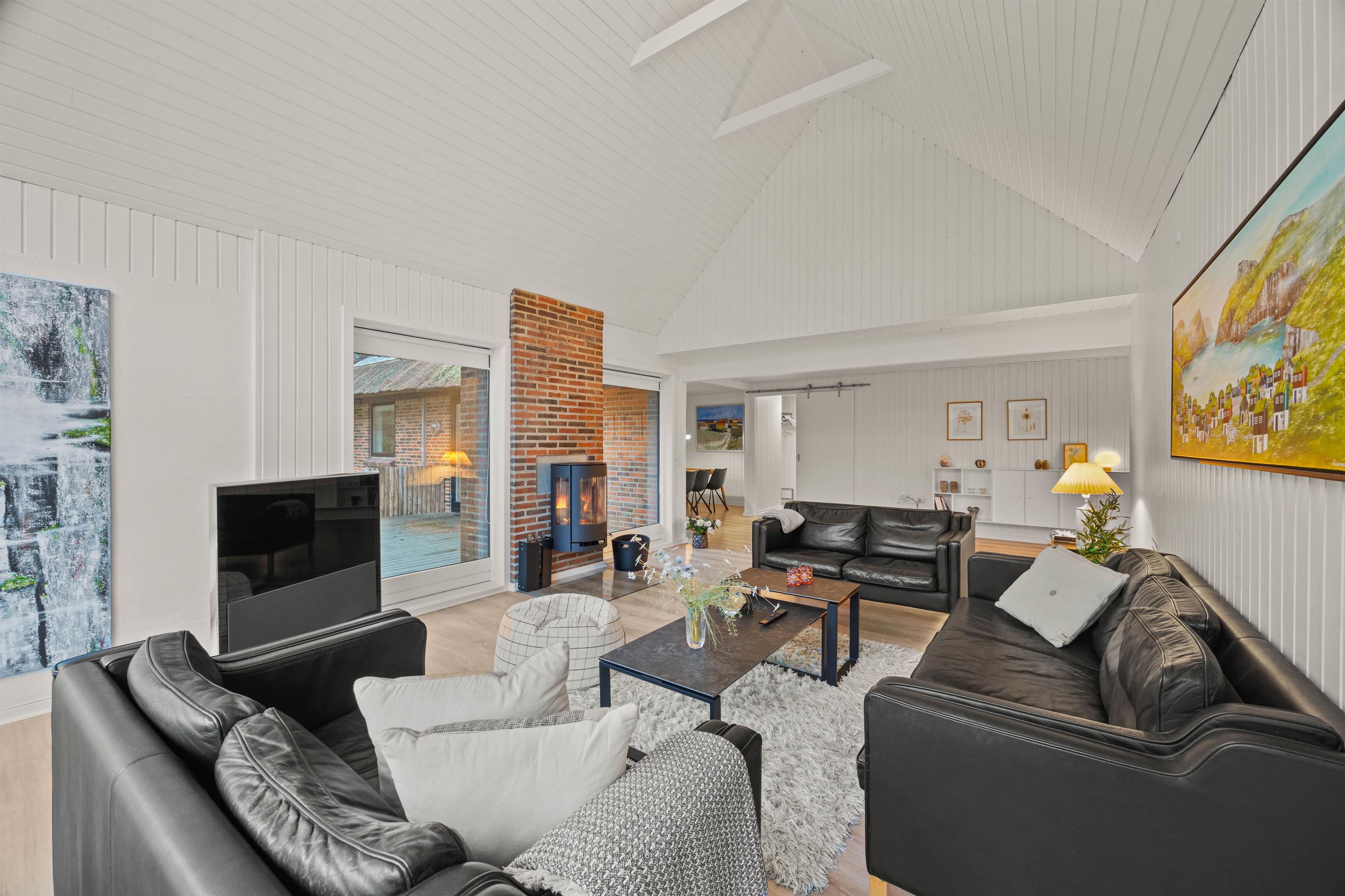 Det store samlingspunkt i sommerhuset er alrummet, hvor køkken, stue og spiseplads ligger i åben forbindelse. Her vil I kunne samles til hyggelige feriestunder med madlavning, spil og film. Brændeovnen i rummet sørger for at fuldende den hyggelige feriestemning.