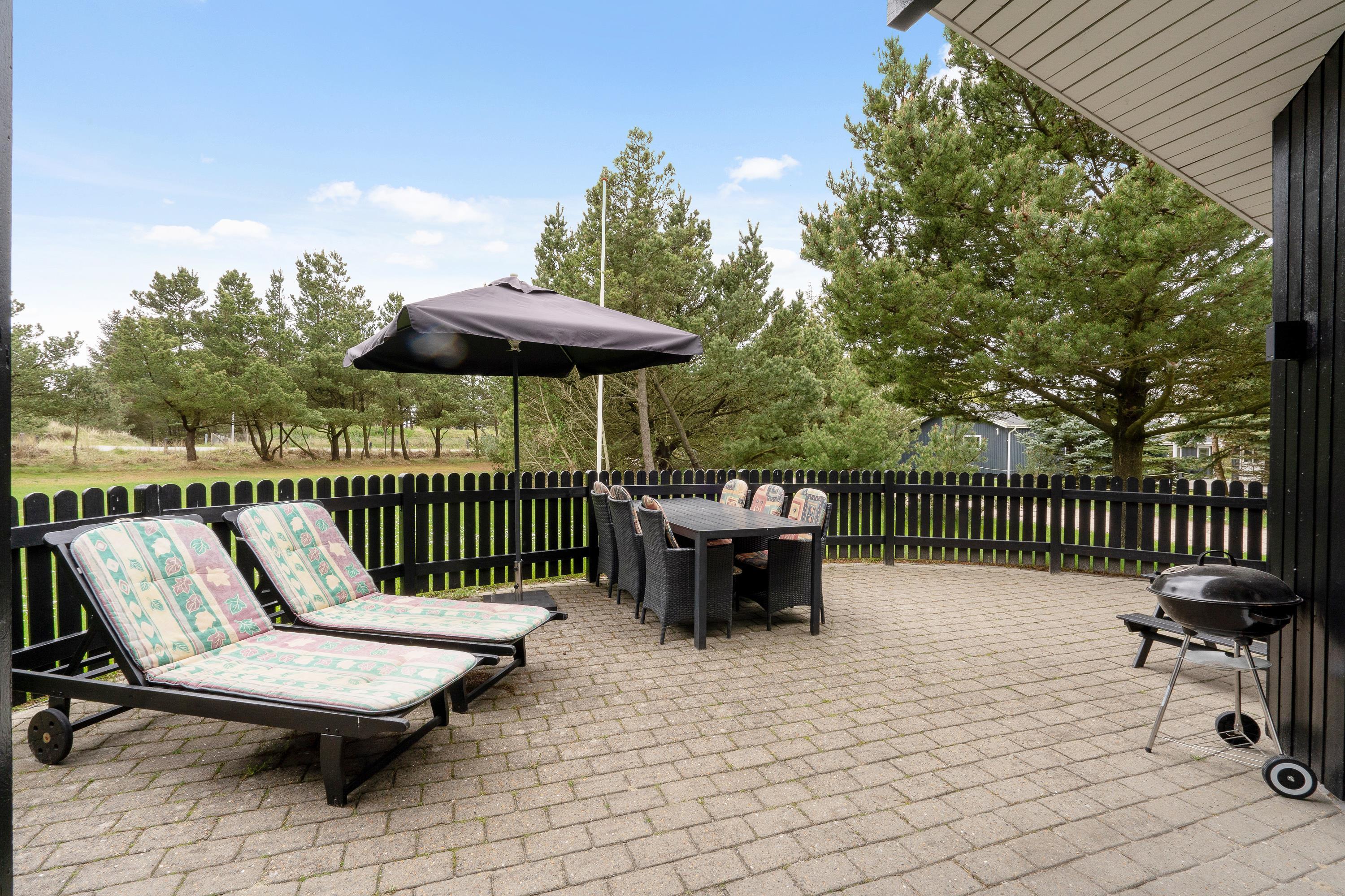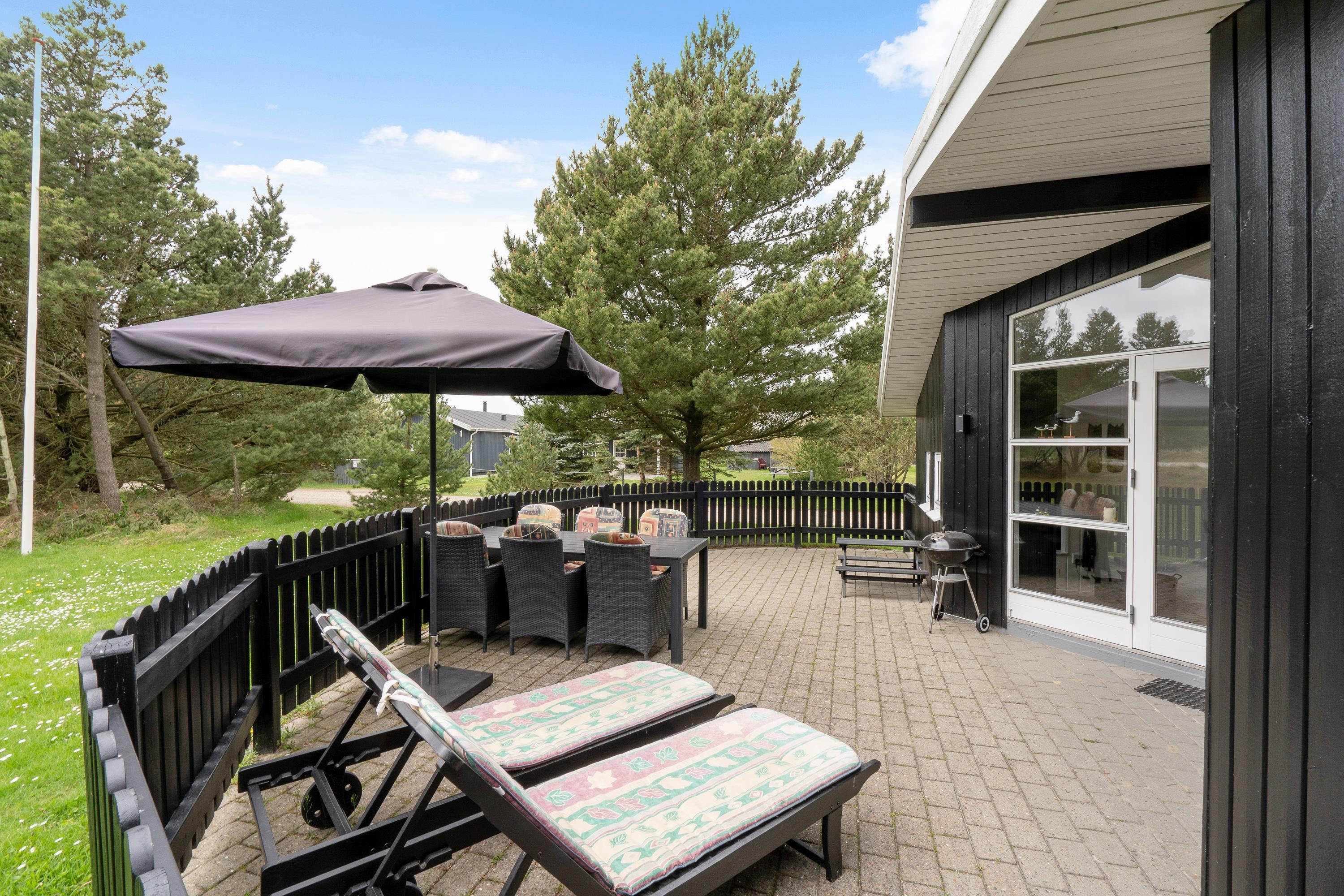 Der er flere hyggelige kroge rundt om feriehuset, alt sammen forbundet af en flisesti, som løber hele vejen rundt om huset. Den sydvendte terrasse har også en overdækket del, som er det oplagte sted at søge hen på de lune sommeraftener, der klart kalder på en grillmiddag i aftensolen.