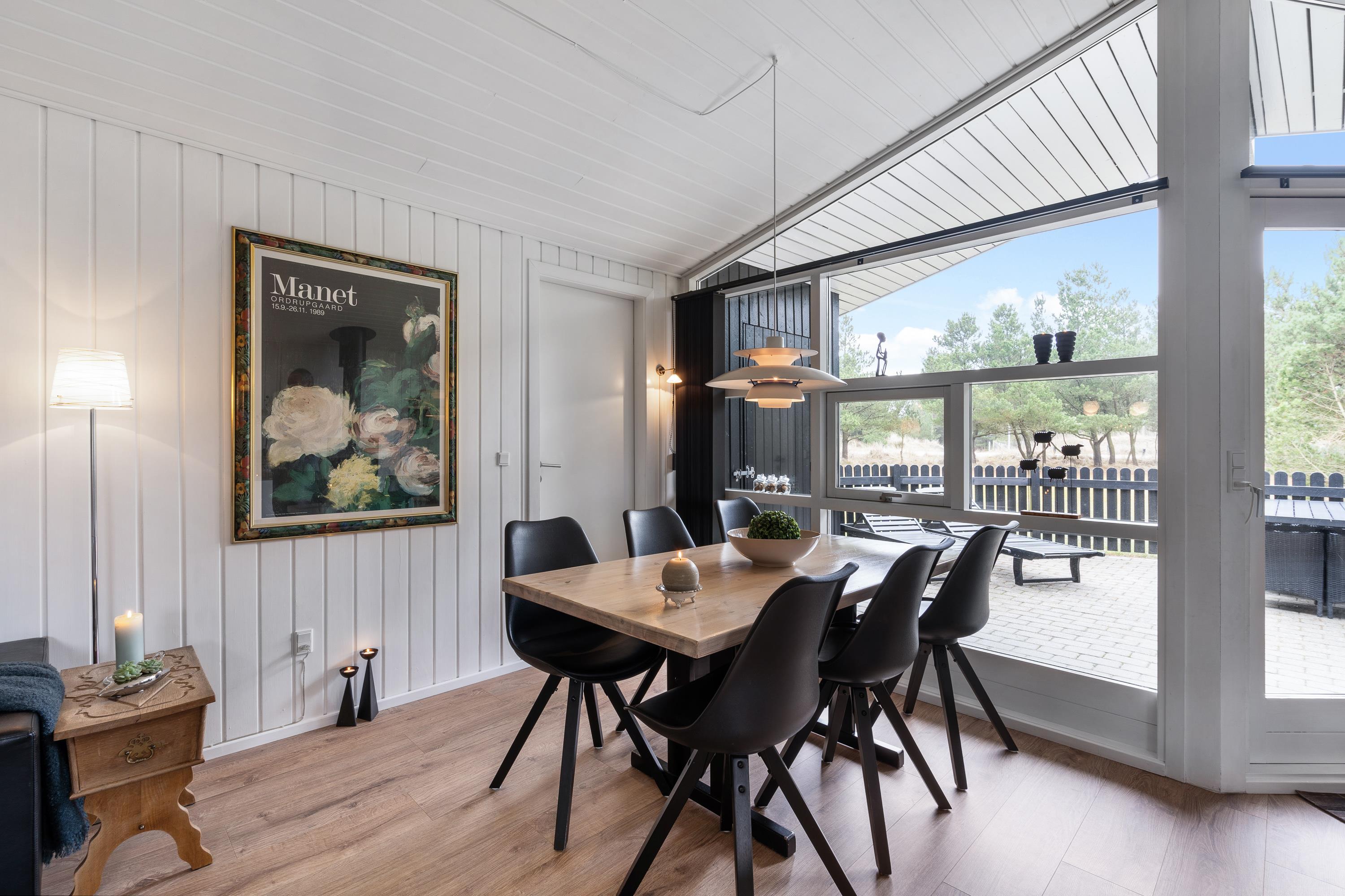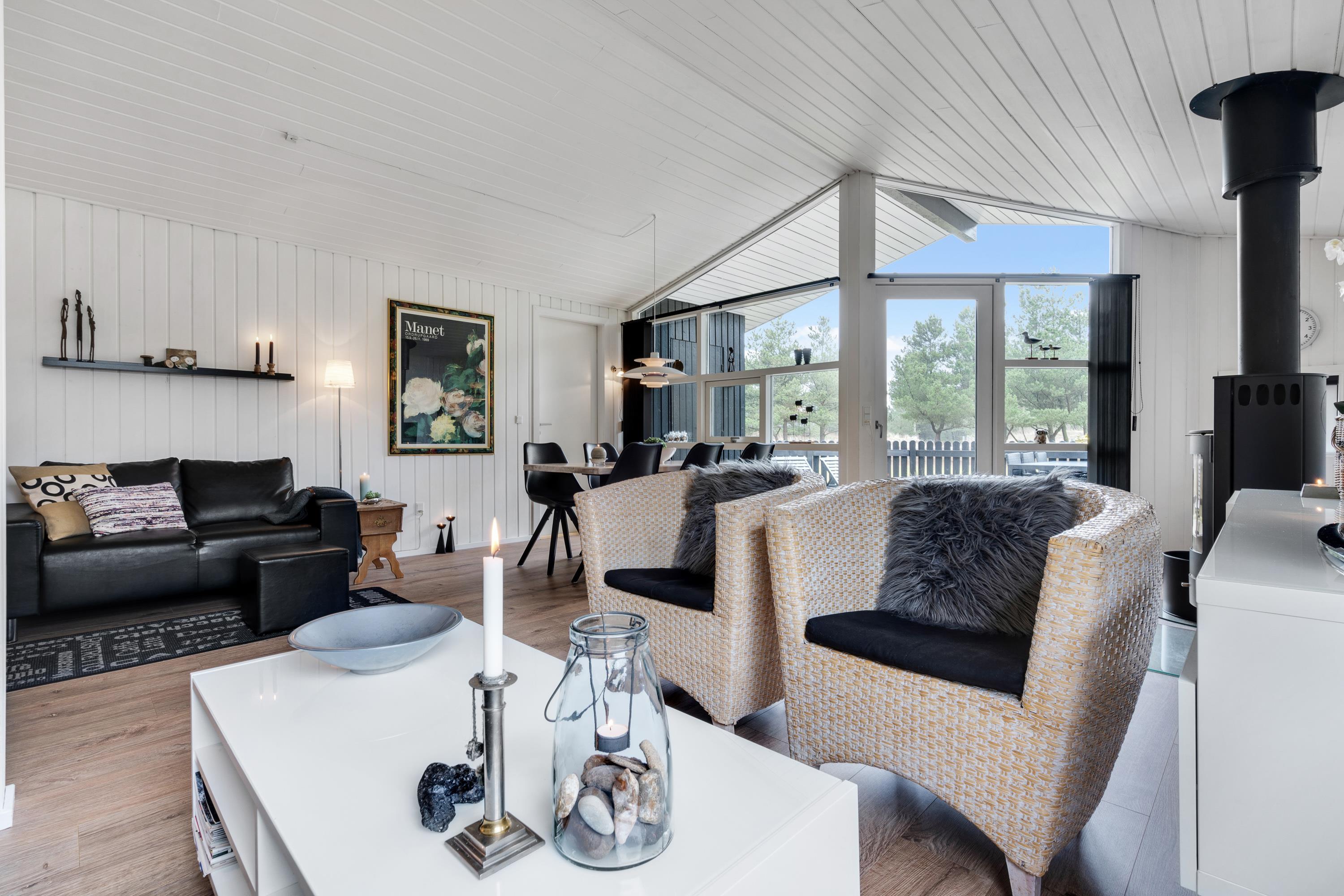 Det klassiske træhus sætter de helt rigtige rammer for en hyggelig sommerhusferie langt væk fra hverdagens tumult. Når I træder ind ad hoveddøren, vil I blive mødt af en lys og venlig indretning med brændeovn og fine pyntedetaljer. De store vinduespartier i opholdsrummet inviterer solens stråler og Blåvands grønne natur indenfor, og derudover byder stueafdelingen på en hyggelig alkove, hvor I kan trække jer tilbage med en god bog eller snuppe en middagslur. Her er der gjort meget for, at I skal føle jer hjemme fra første ferieøjeblik.