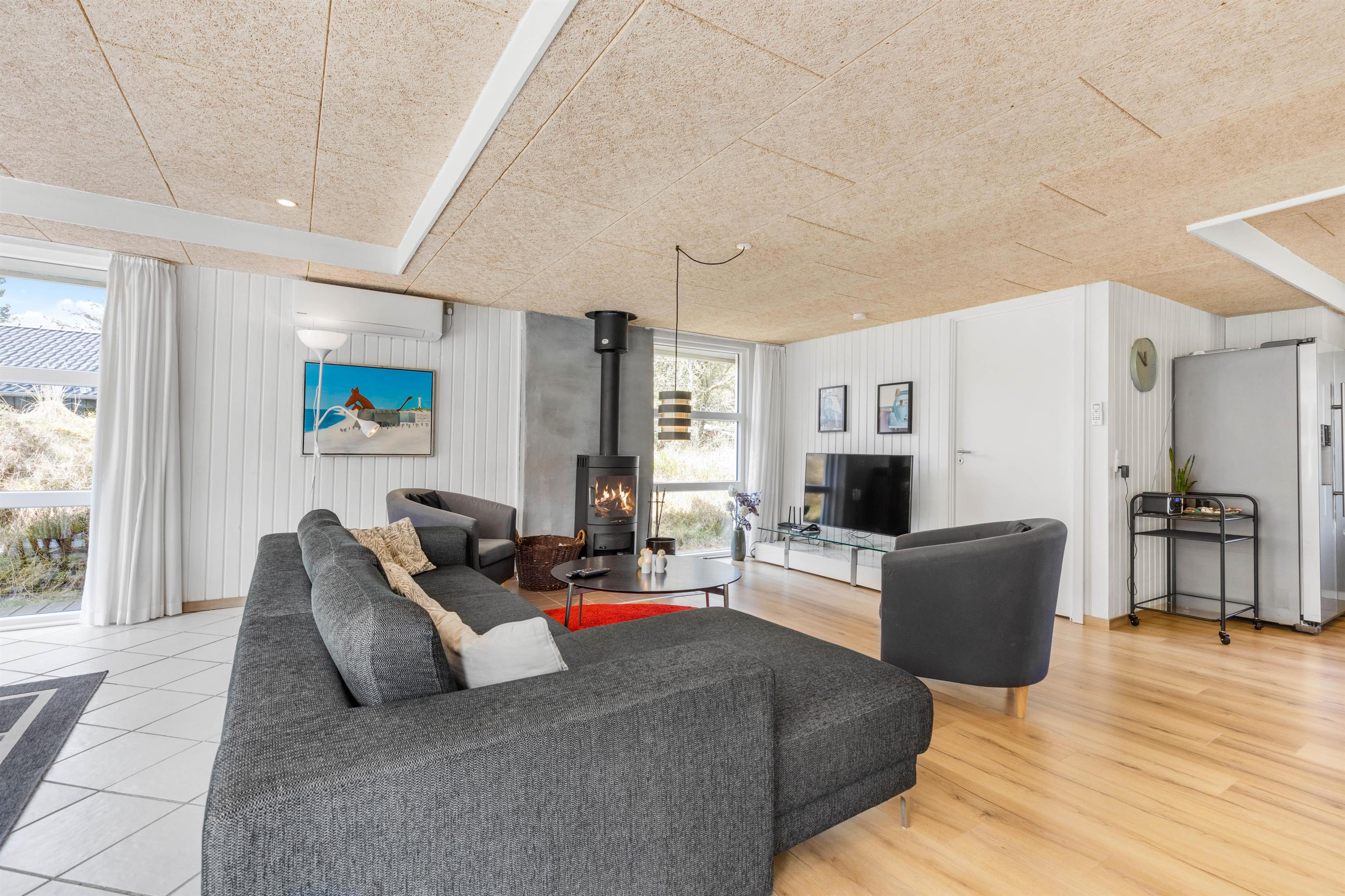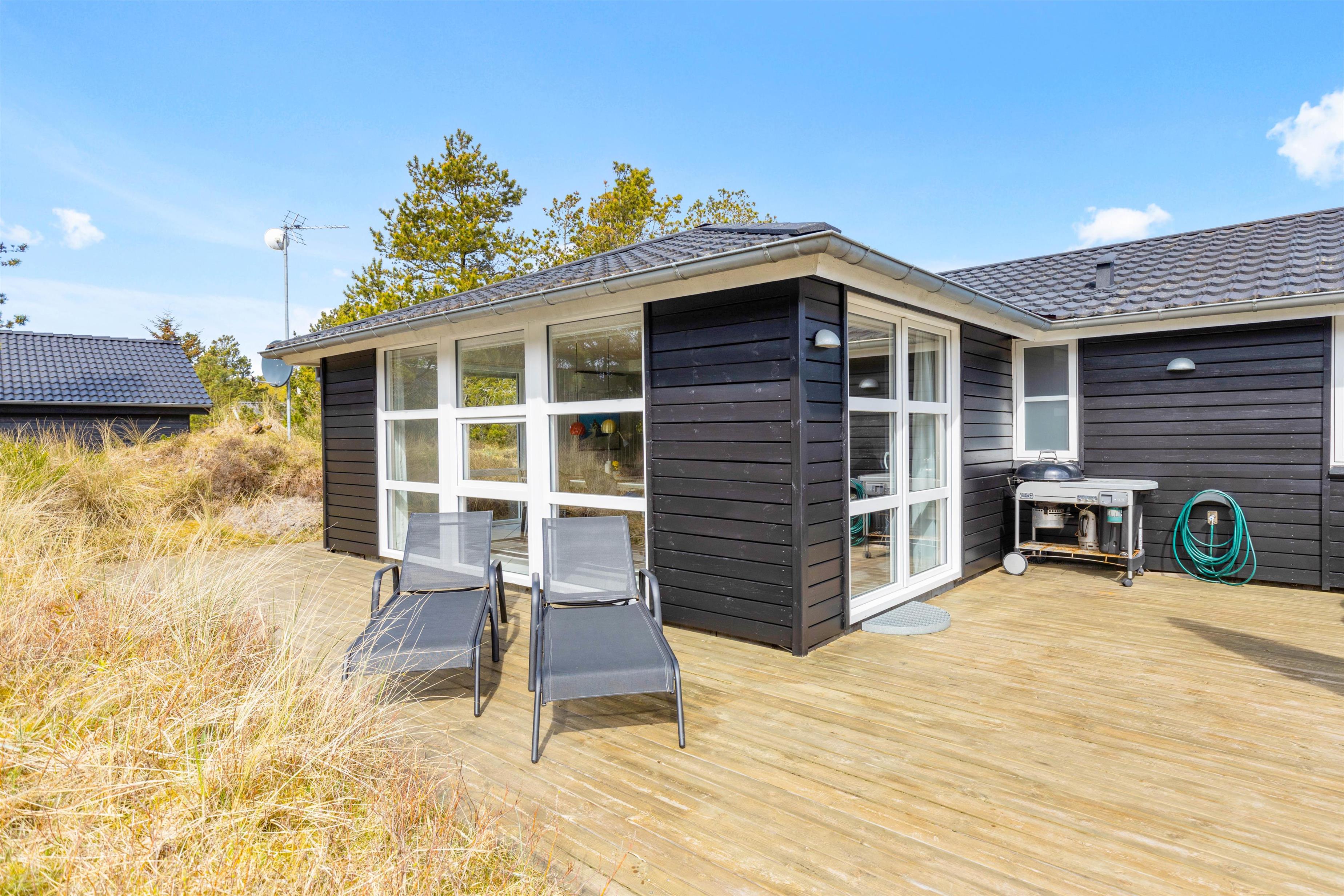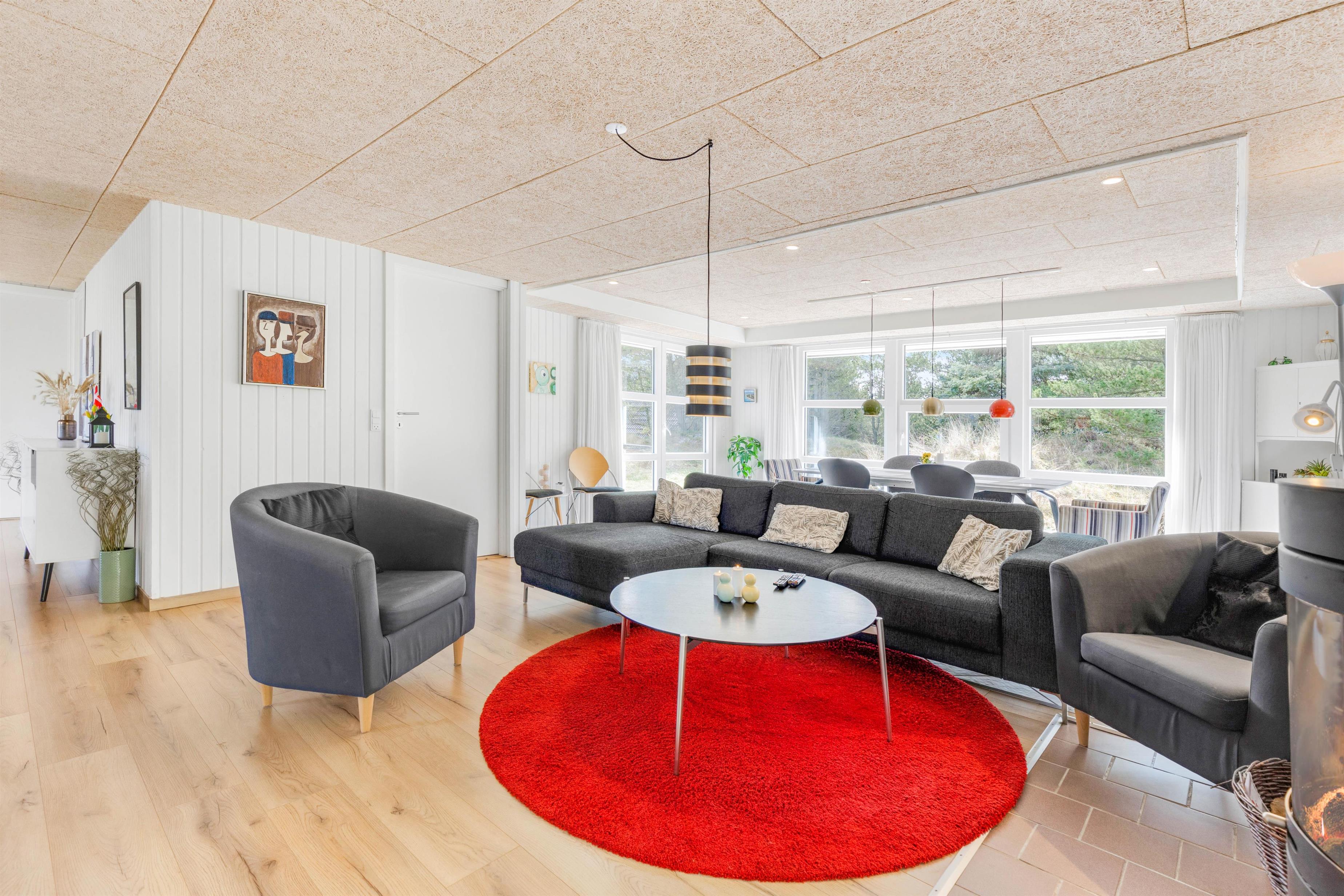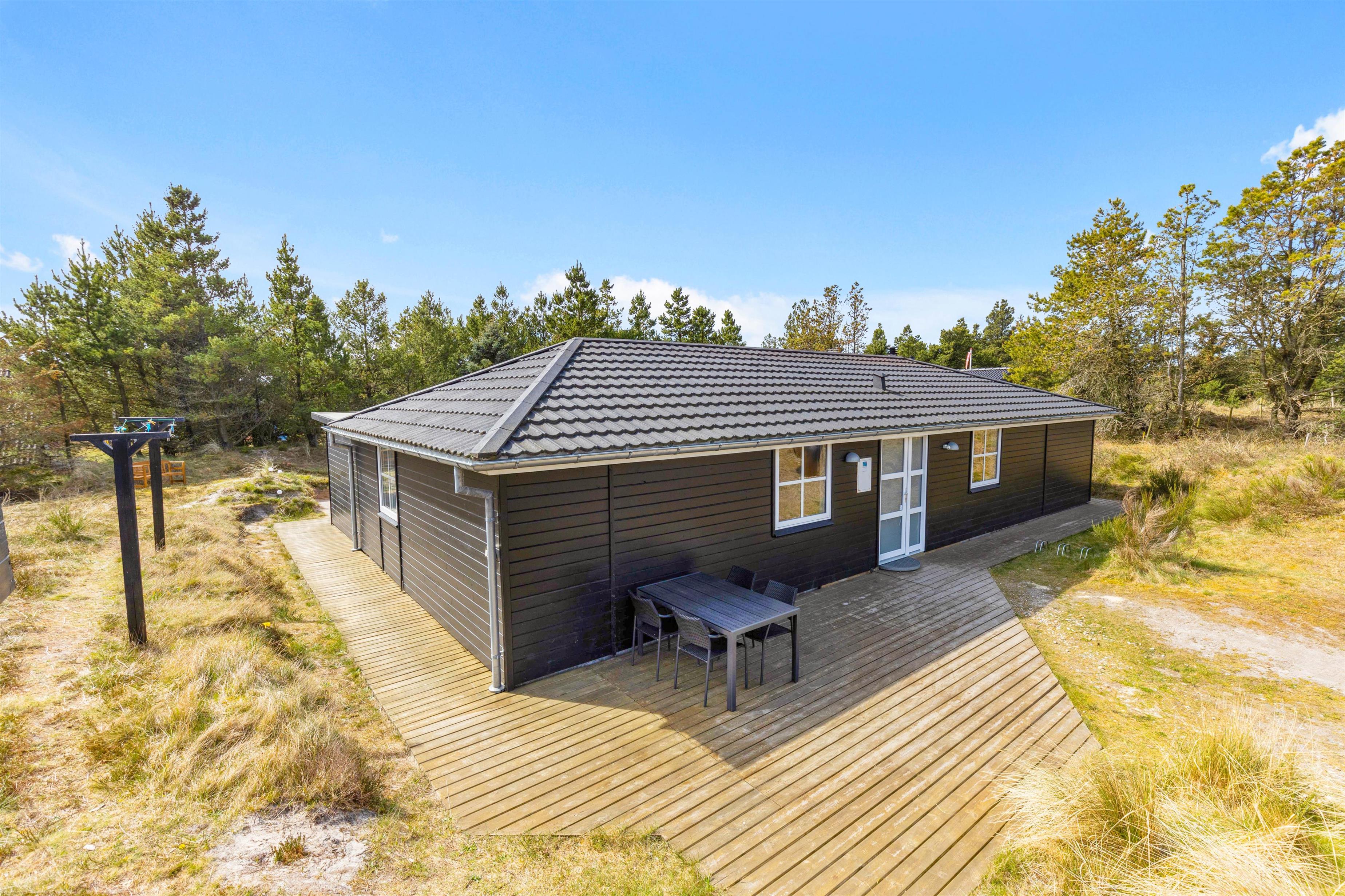 På Blåvandvej 46 på en rolig sidevej rejser dette flotte feriehus sig mellem de grønne fyrretræer. De hele 130 m² udstråler stil og kvalitet, og det er nemt at se, at huset i 2017 har fået en komplet renovering.