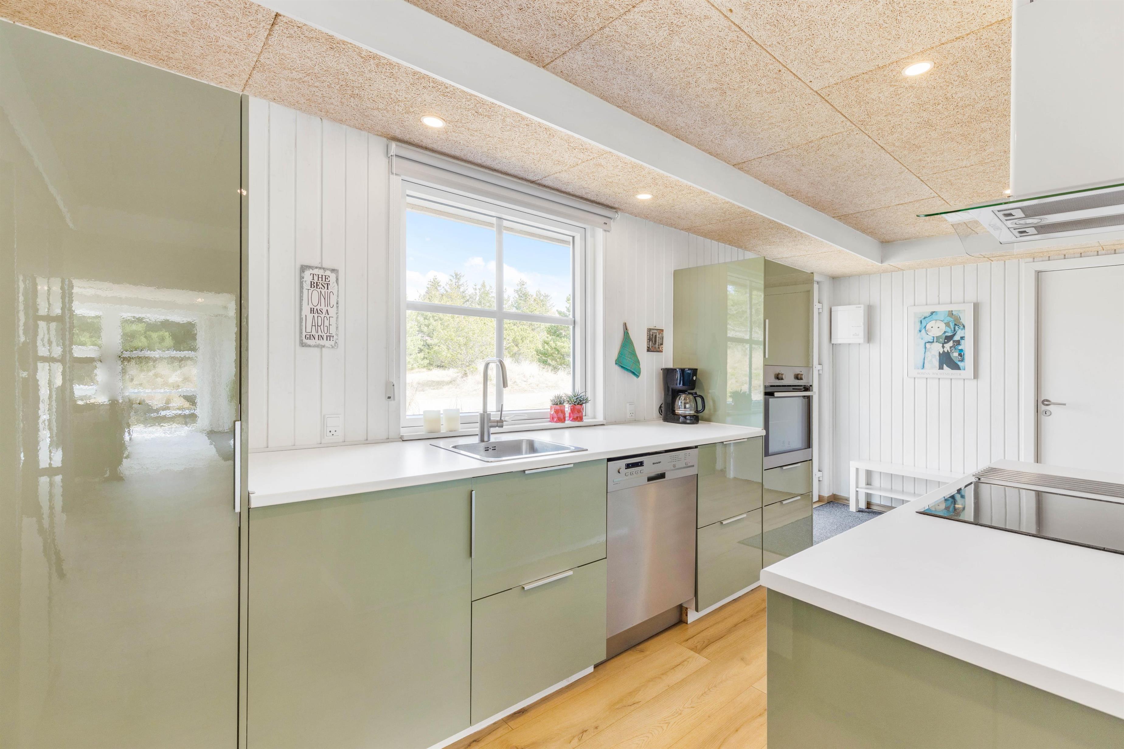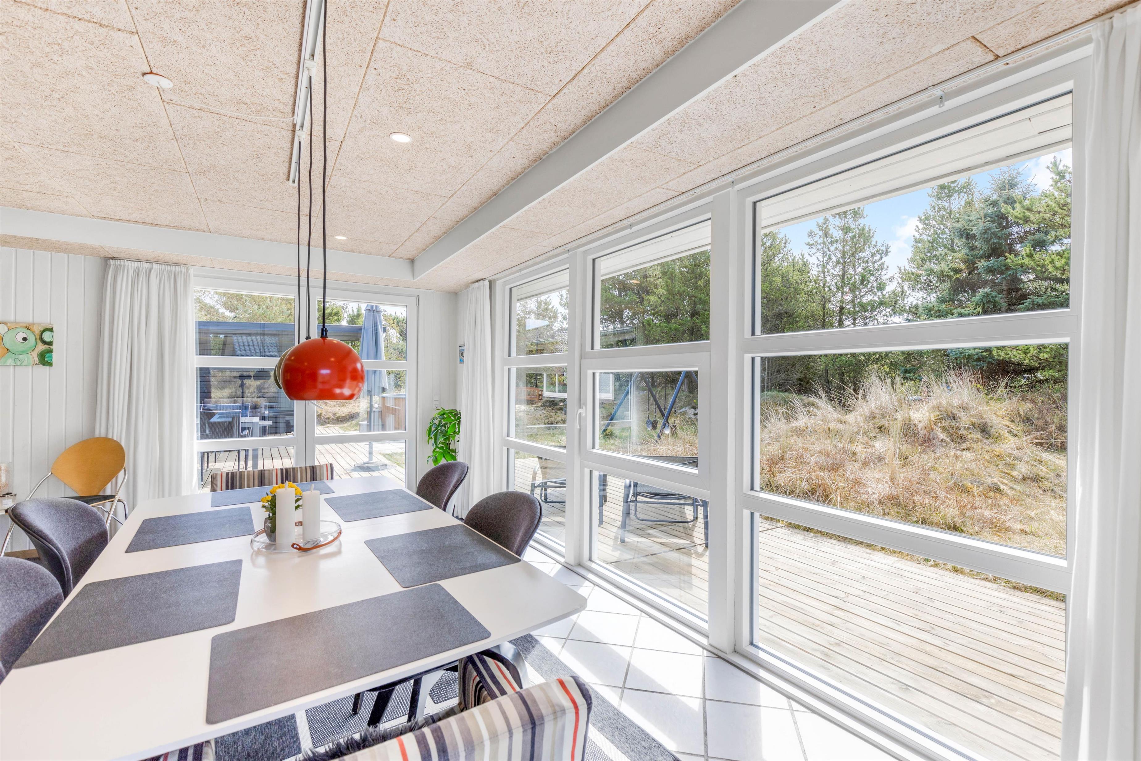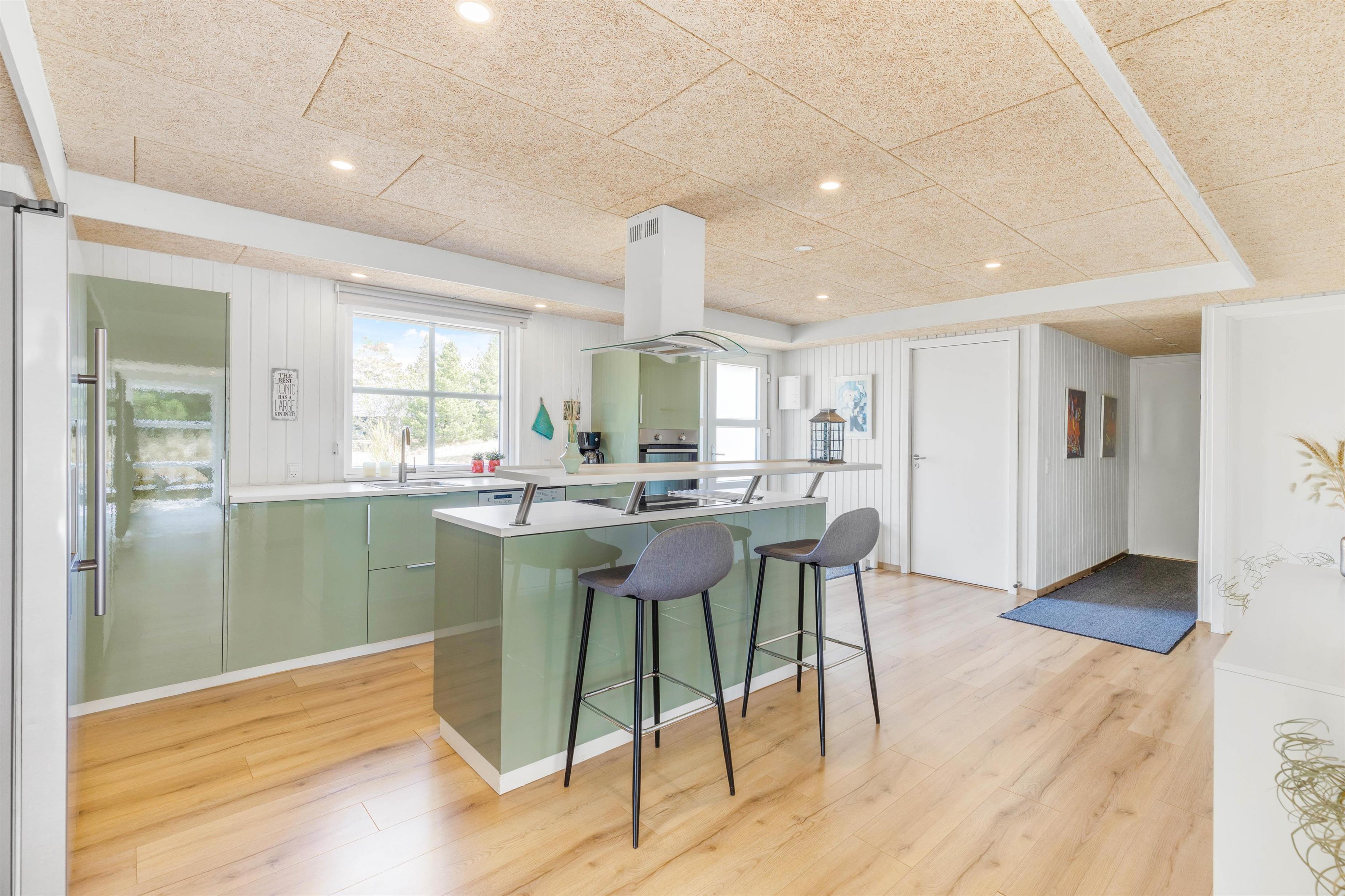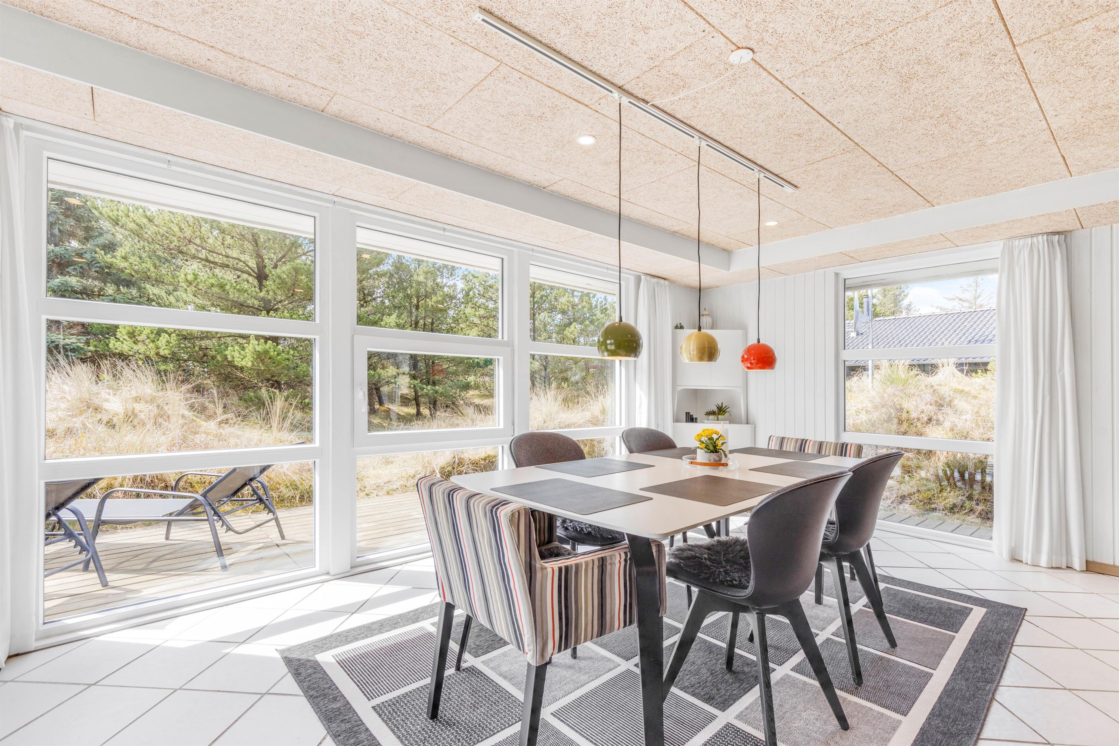 På Blåvandvej 46 på en rolig sidevej rejser dette flotte feriehus sig mellem de grønne fyrretræer. De hele 130 m² udstråler stil og kvalitet, og det er nemt at se, at huset i 2017 har fået en komplet renovering.
