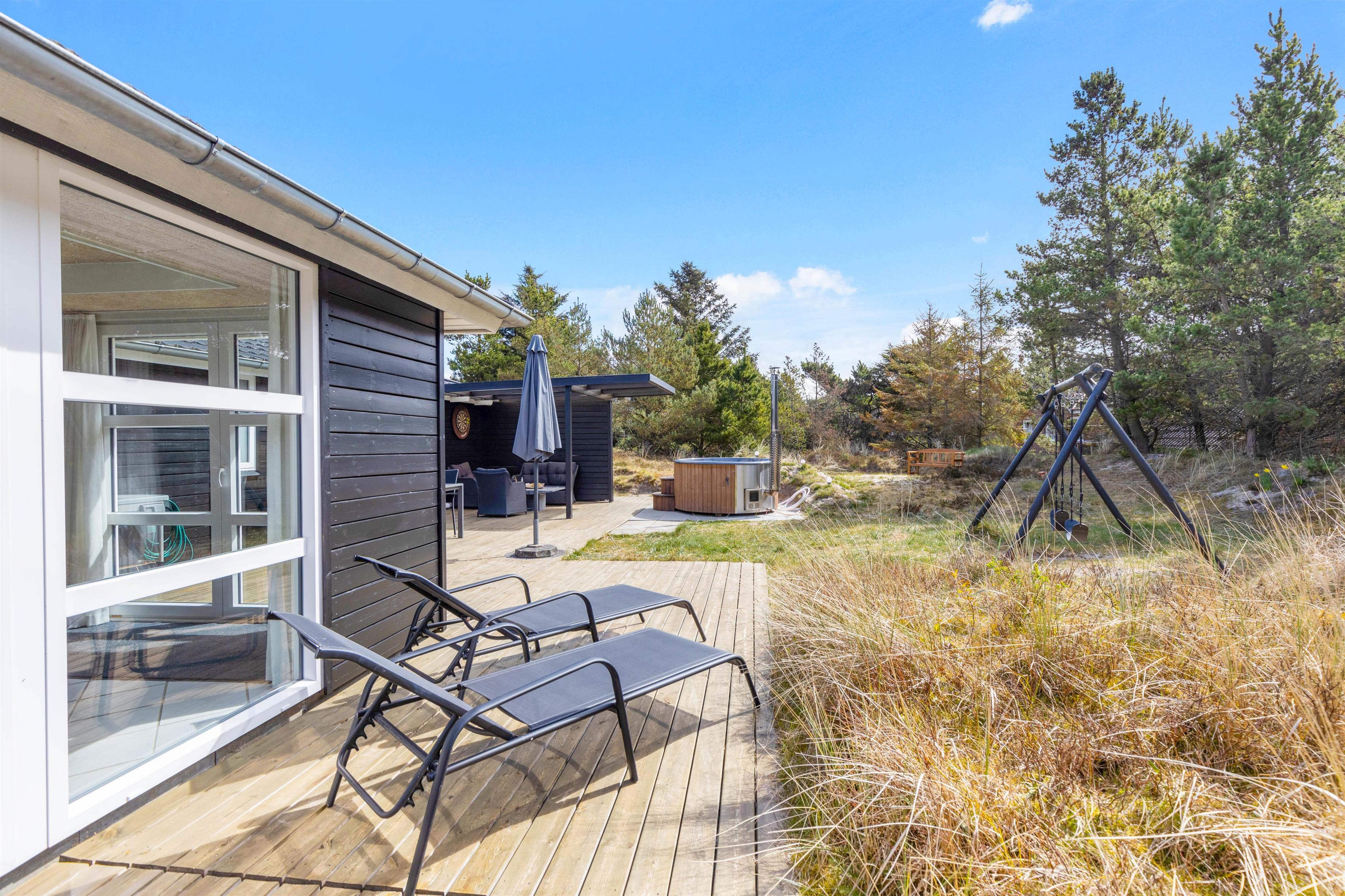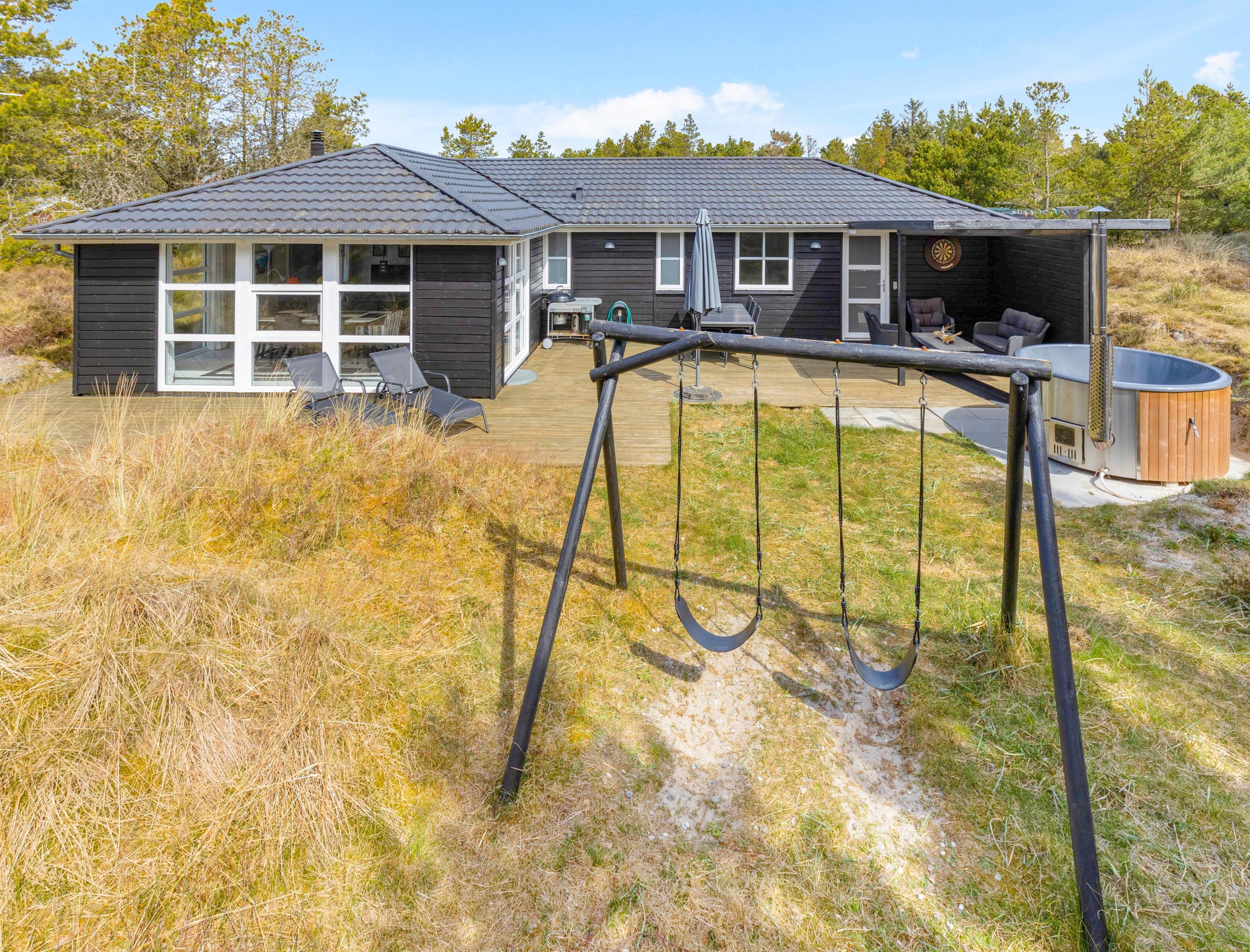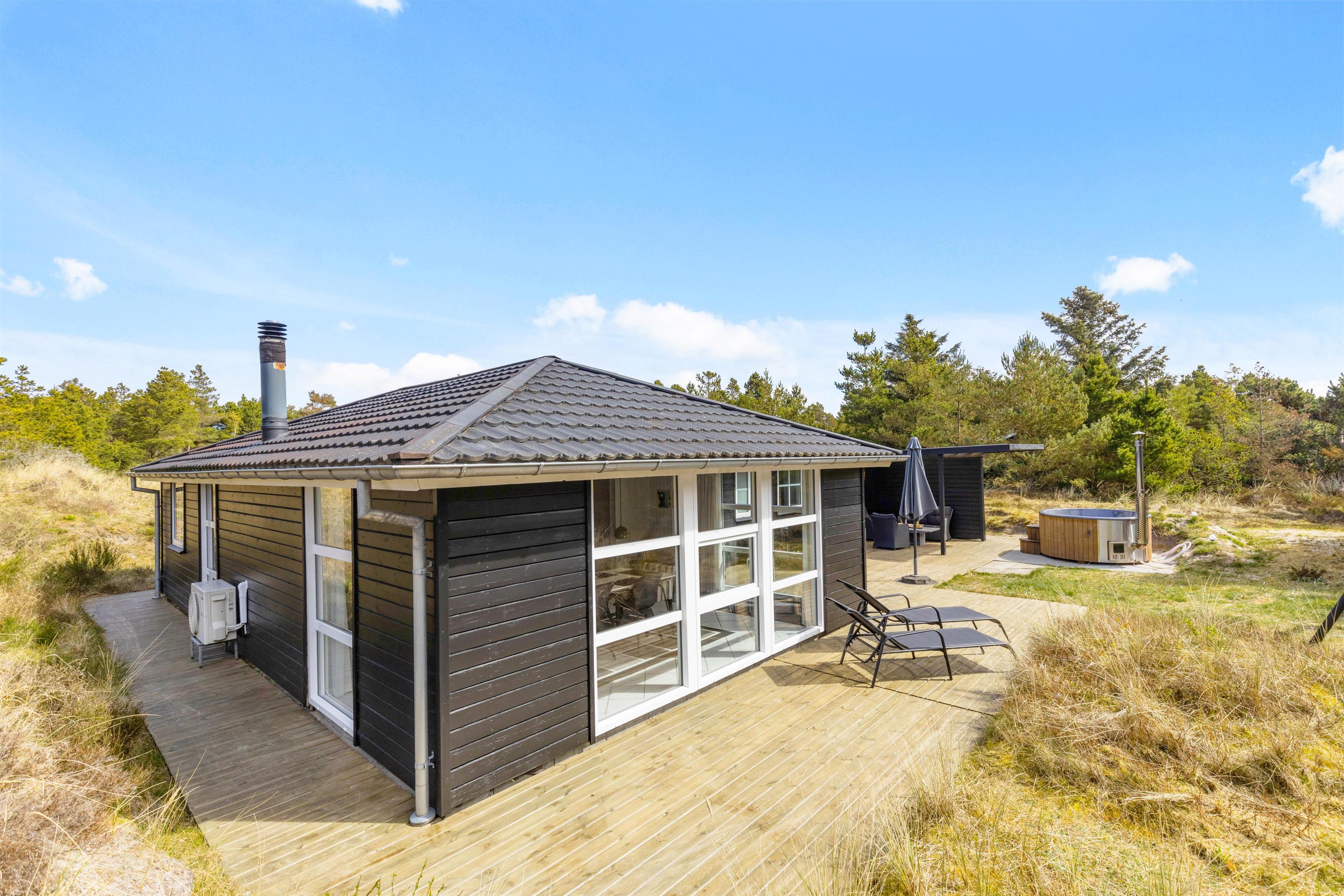 I Blåvands smukke natur, blandt lyng, hede og fyrretræer, ligger dette flotte, komplet renoverede feriehus - klar til at give jer en dejlig ferieoplevelse. Huset er moderne og lækkert indrettet med masser af lys og en sans for stil og kvalitet, og de skønne terrasser udenfor giver jer mulighed for at nyde den omkringliggende natur i al slags vejr. Aktivitetsrummet og det skønne vildmarksbad bliver et sikkert hit blandt børnene!