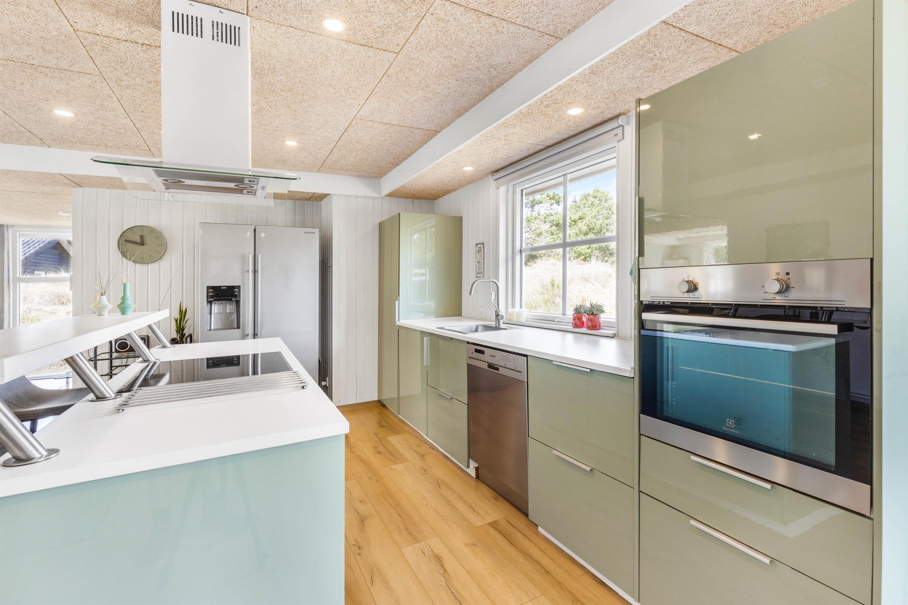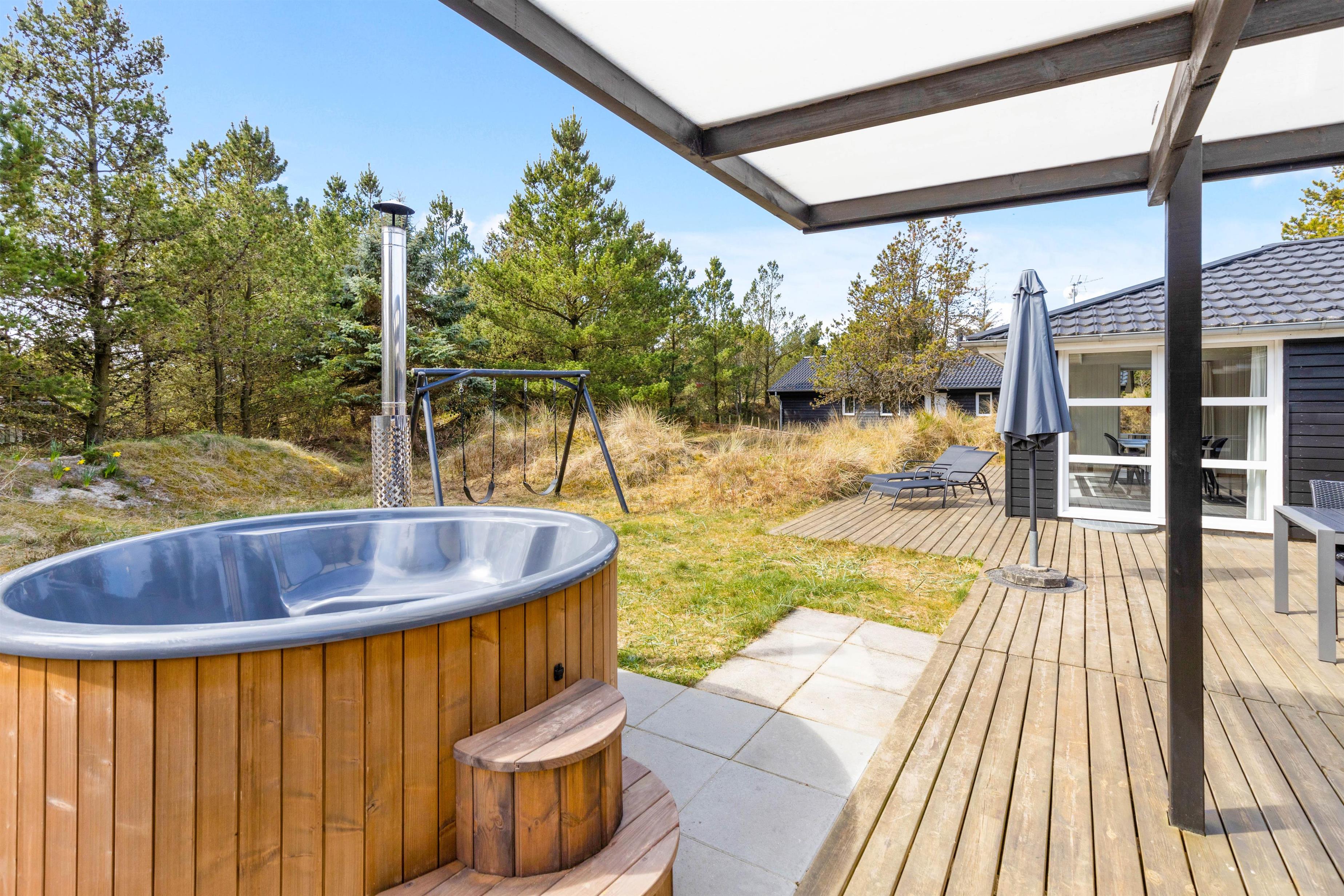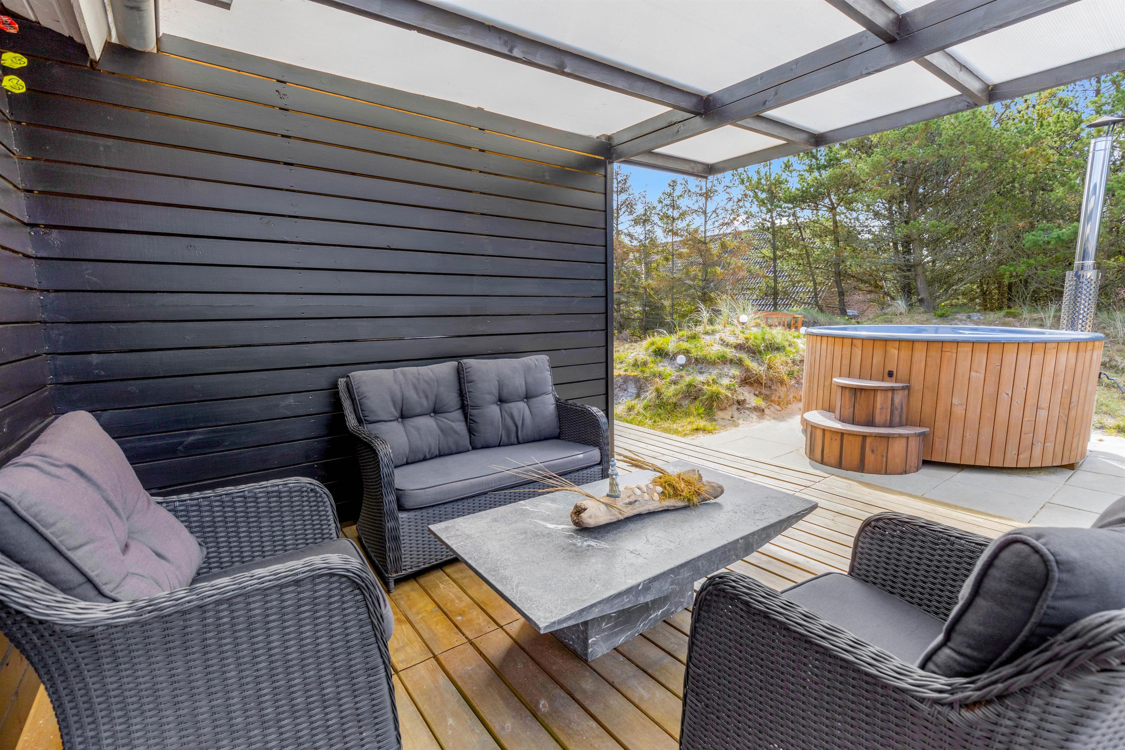 I Blåvands smukke natur, blandt lyng, hede og fyrretræer, ligger dette flotte, komplet renoverede feriehus - klar til at give jer en dejlig ferieoplevelse. Huset er moderne og lækkert indrettet med masser af lys og en sans for stil og kvalitet, og de skønne terrasser udenfor giver jer mulighed for at nyde den omkringliggende natur i al slags vejr. Aktivitetsrummet og det skønne vildmarksbad bliver et sikkert hit blandt børnene!