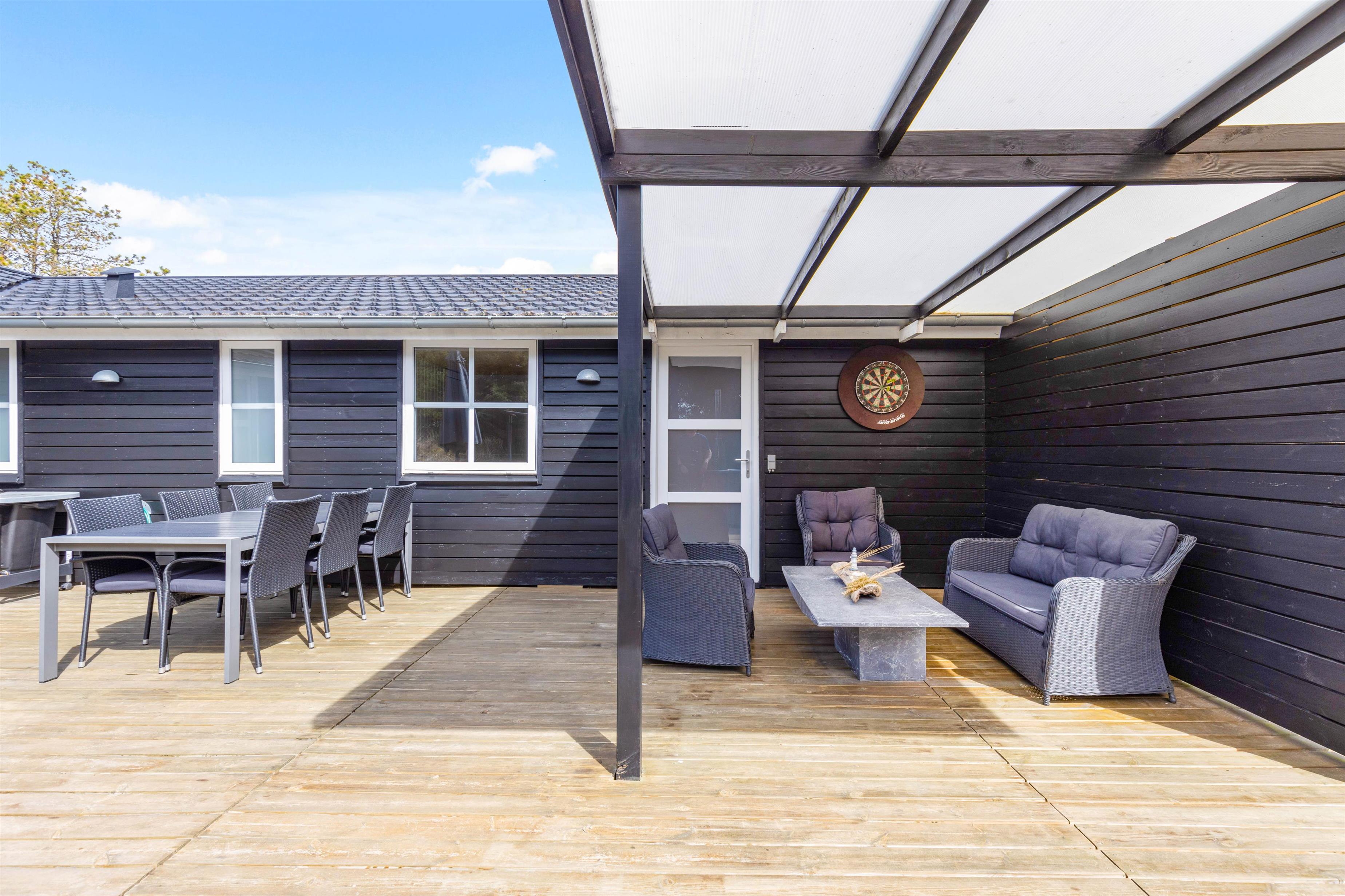 Det nyrenoverede feriehus råder over flere skønne terrasser, og her finder I med sikkerhed alle sammen en god plads i solen. Nyd den dejlige udsigt og den varme sommersol, mens I tanker kræfter i liggestolene - eller tag et tæppe og en varm kop kaffe med udenfor i efterårsvejret under den overdækkede terrasse. Prikket over i´et er et dejligt vilmarksbad til at forkæle jer uanset hvad vejret byder på.