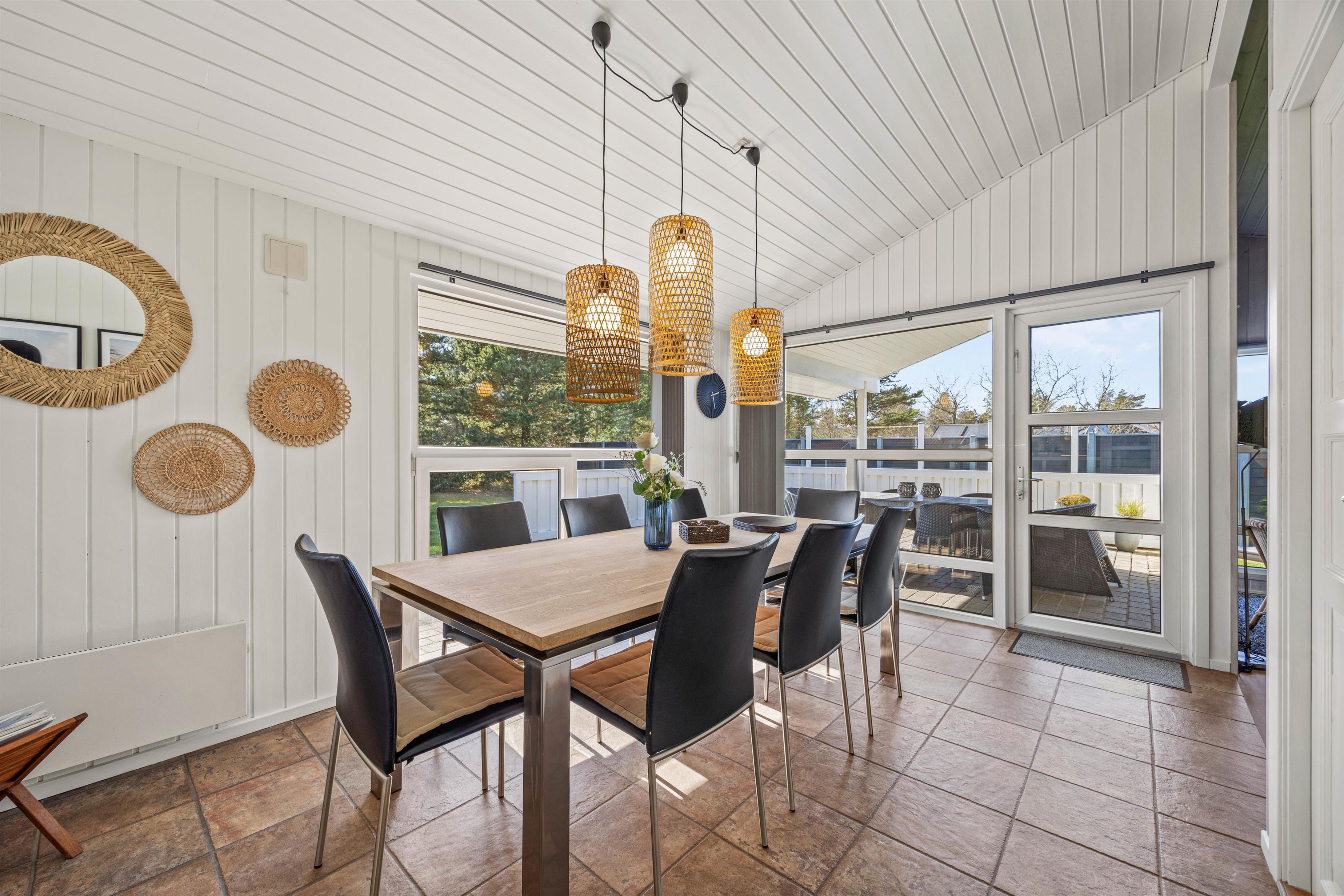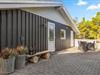 Sommerhusets flotte vestvendte og overdækkede terrasse bliver utvivlsomt stedet, hvor I kommer til at grille og nyde et godt aftensmåltid i aftensolen. Terrassen strækker sig syd om huset helt om til østsiden, så det hele dagen er muligt at finde en solstråle på en af feriehusets liggestole.