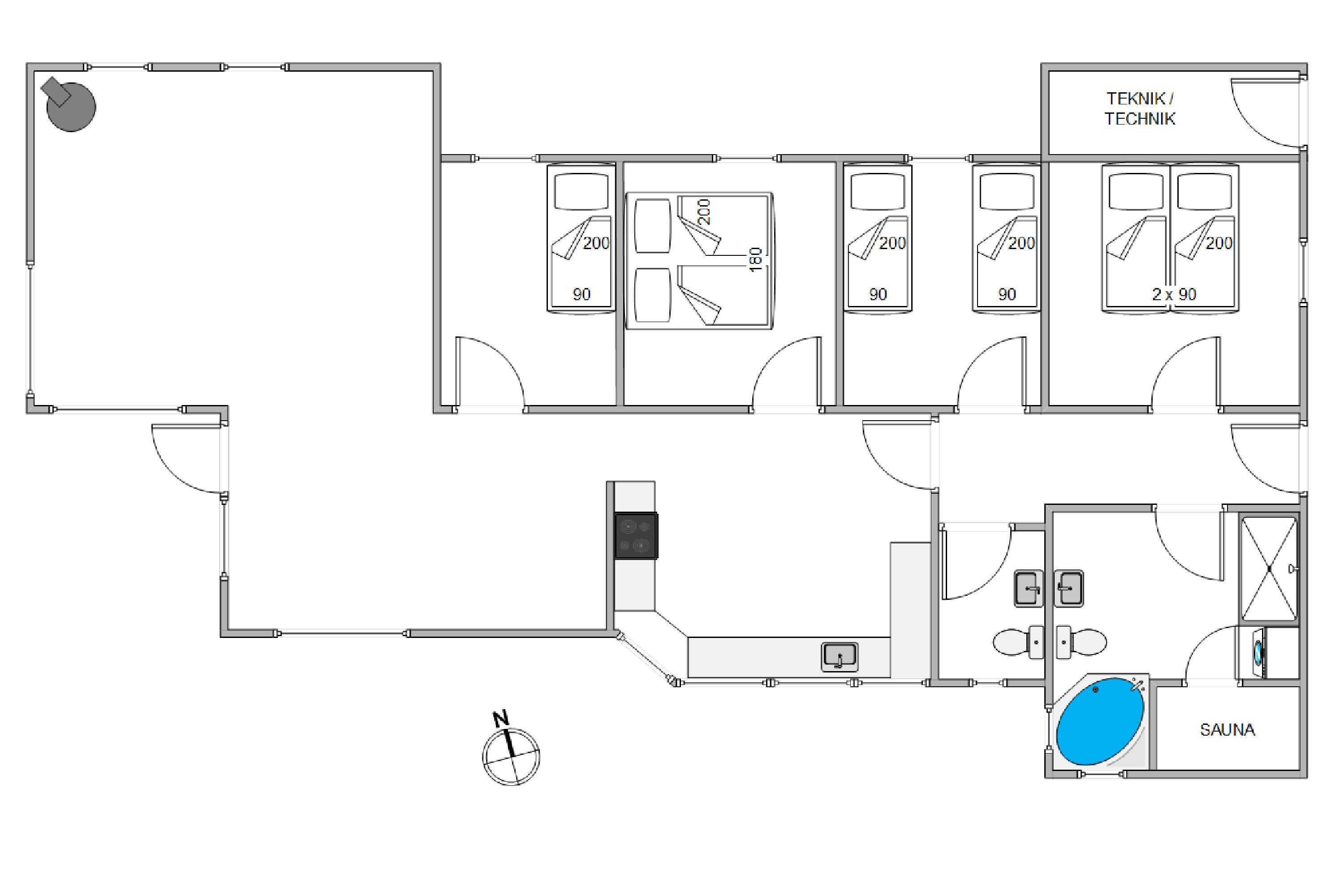I det hyggelige sommerhus på Solsiden 16 i Blåvand med plads til 8 personer kan hele familien nyde en skøn ferie sammen. I vil under ferien få rig mulighed for afslapning i feriehusets skønne spabad og sauna. Hvis I hen ad eftermiddagen skal nyde den friske luft, er feriehuset udstyret med en skøn overdækket terrasse og en fin græsplæne med plads til leg og sjov.