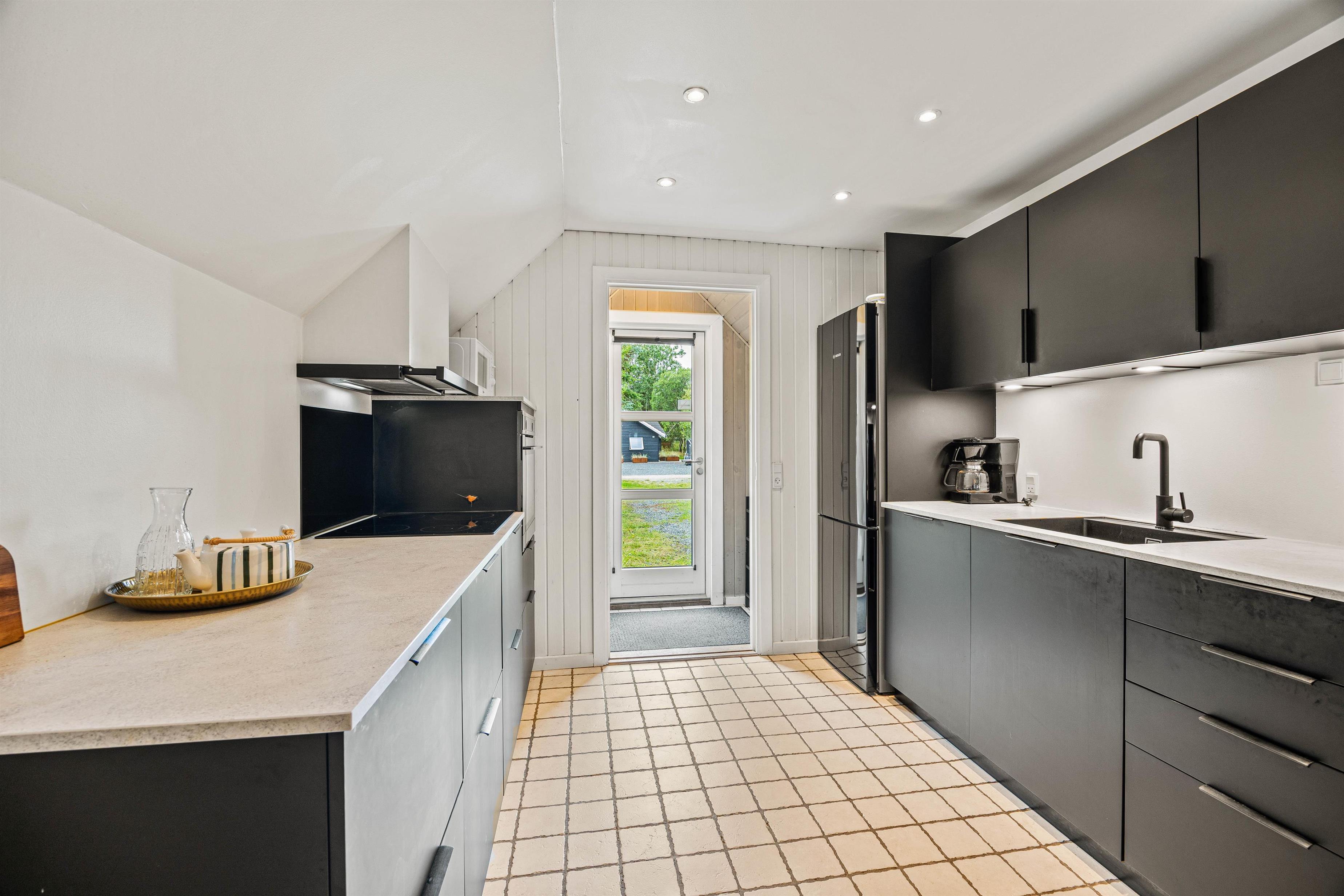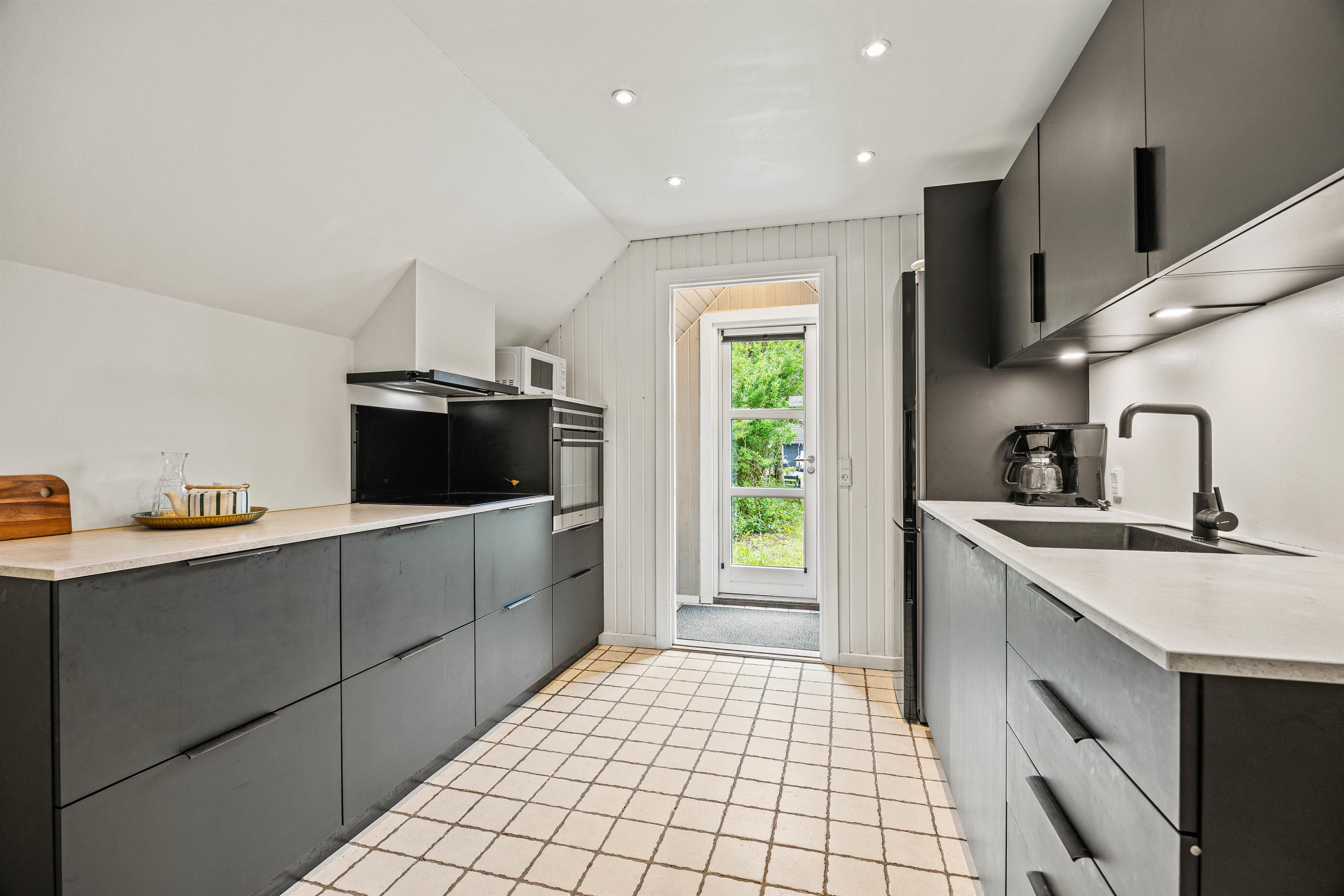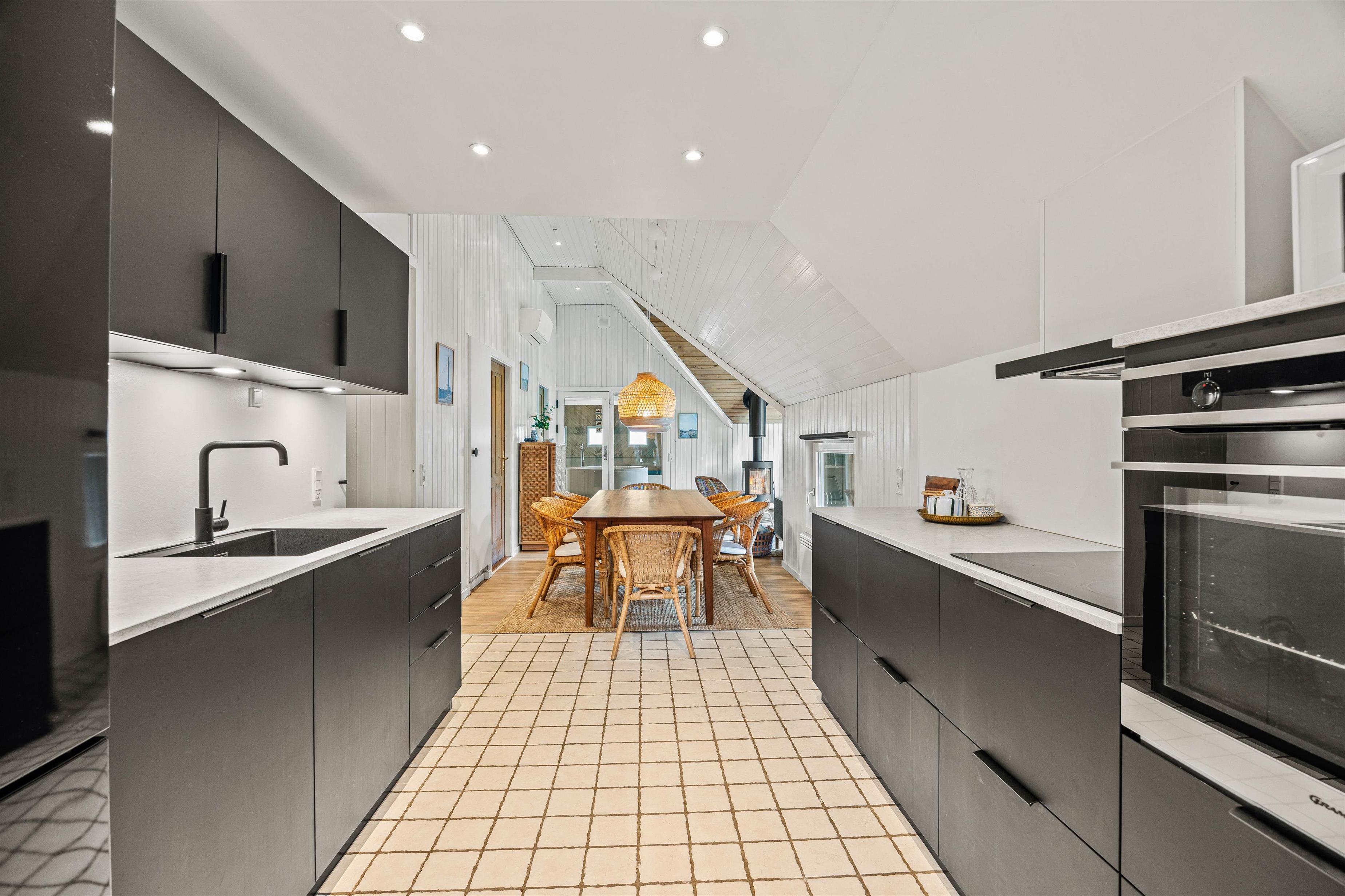 Poolhuset er blevet renoveret i 2020 og råder over hele 140 kvadratmeter, indrettet i en hyggelig og smagfuld stil. Det moderne køkken er udstyret med opvaskemaskine og alt, hvad feriekokken behøver.