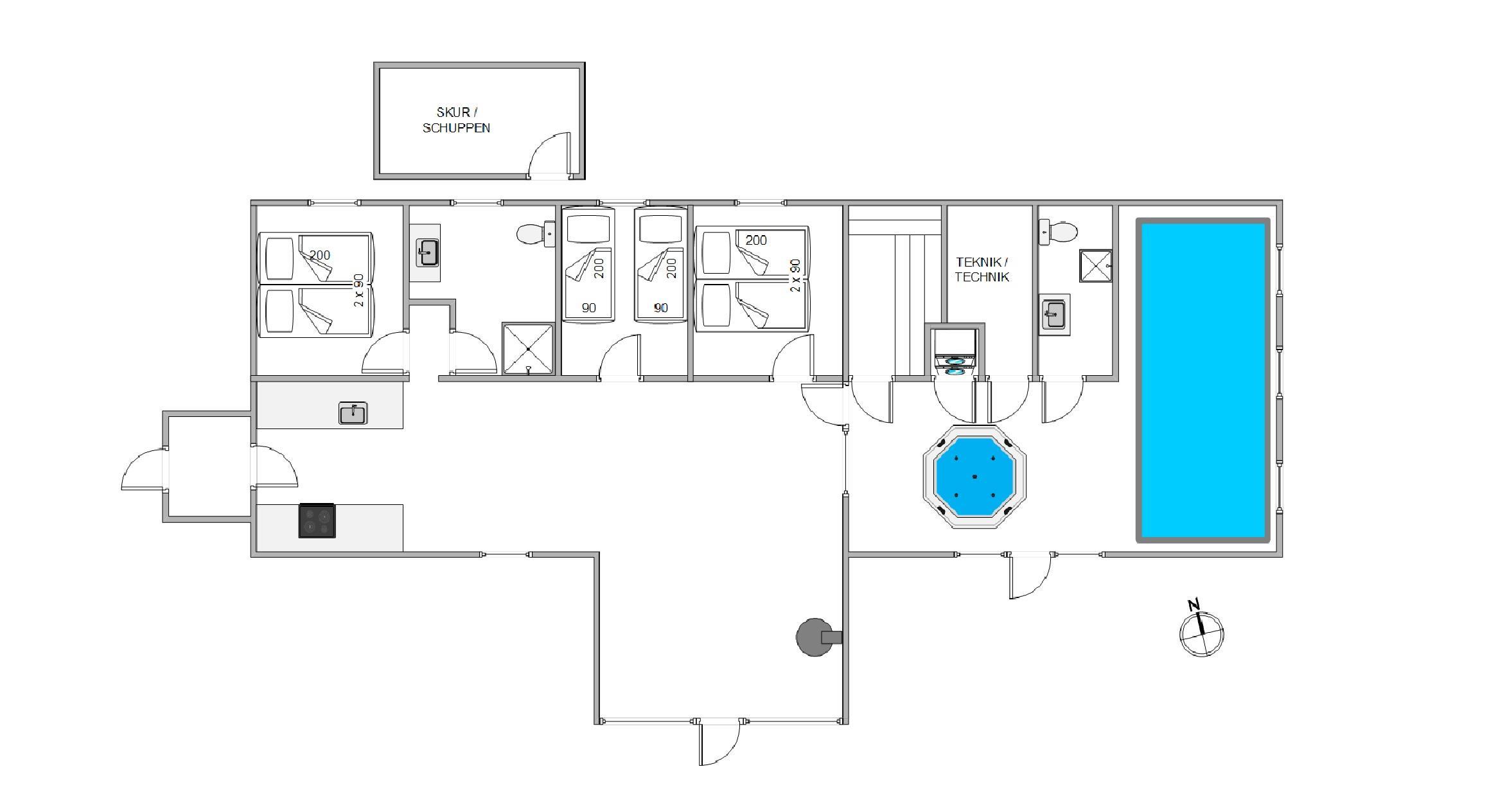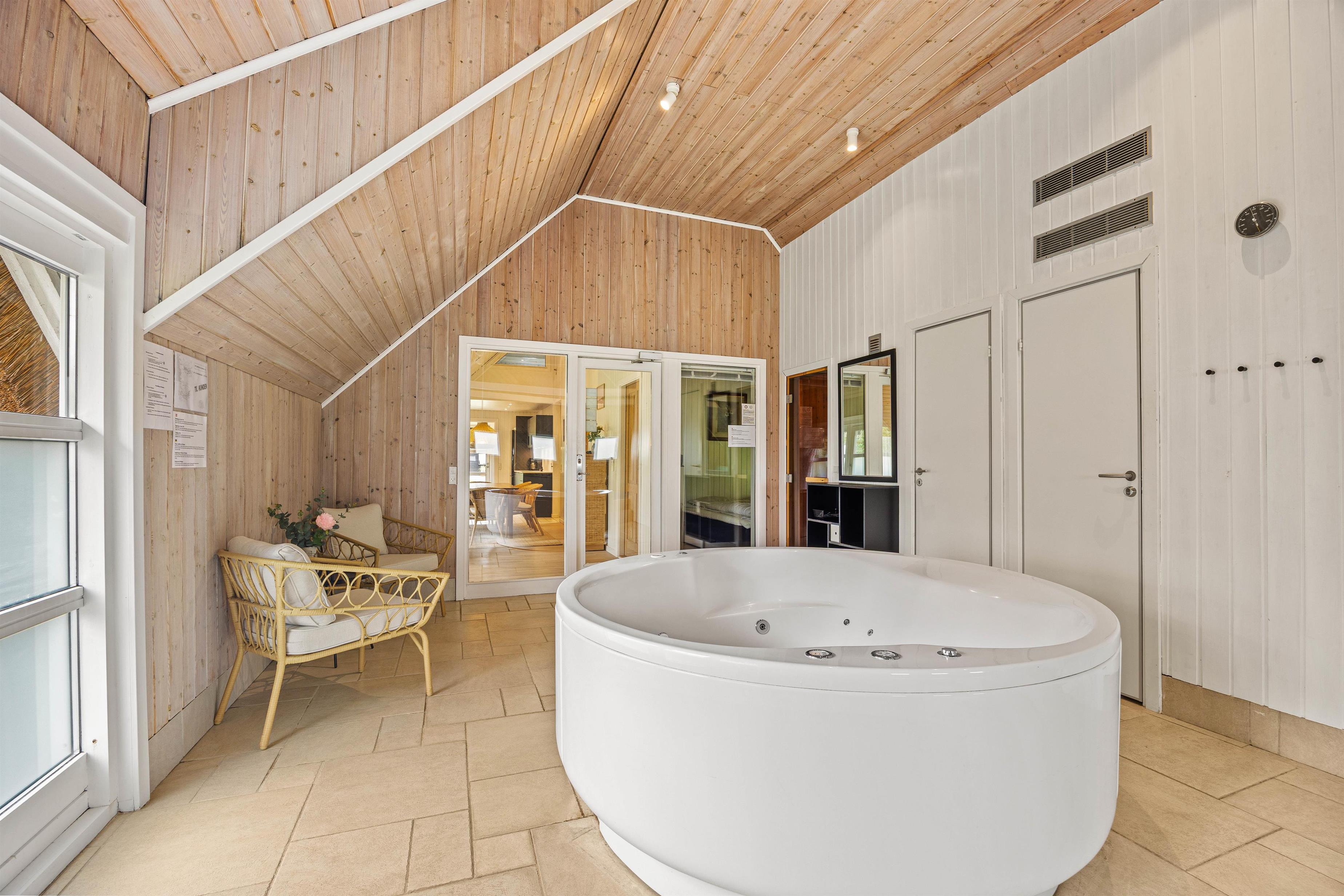 Det stråtækte sommerhus i Blåvand er et godt valg til en aktiv ferie. Ferieboligen er nemlig blandt andet indrettet med en poolafdeling med indendørs swimmingpool – her kan vandhundene rigtig få lov til, at boltre sig. I poolafdelingen er der desuden spabad og sauna.