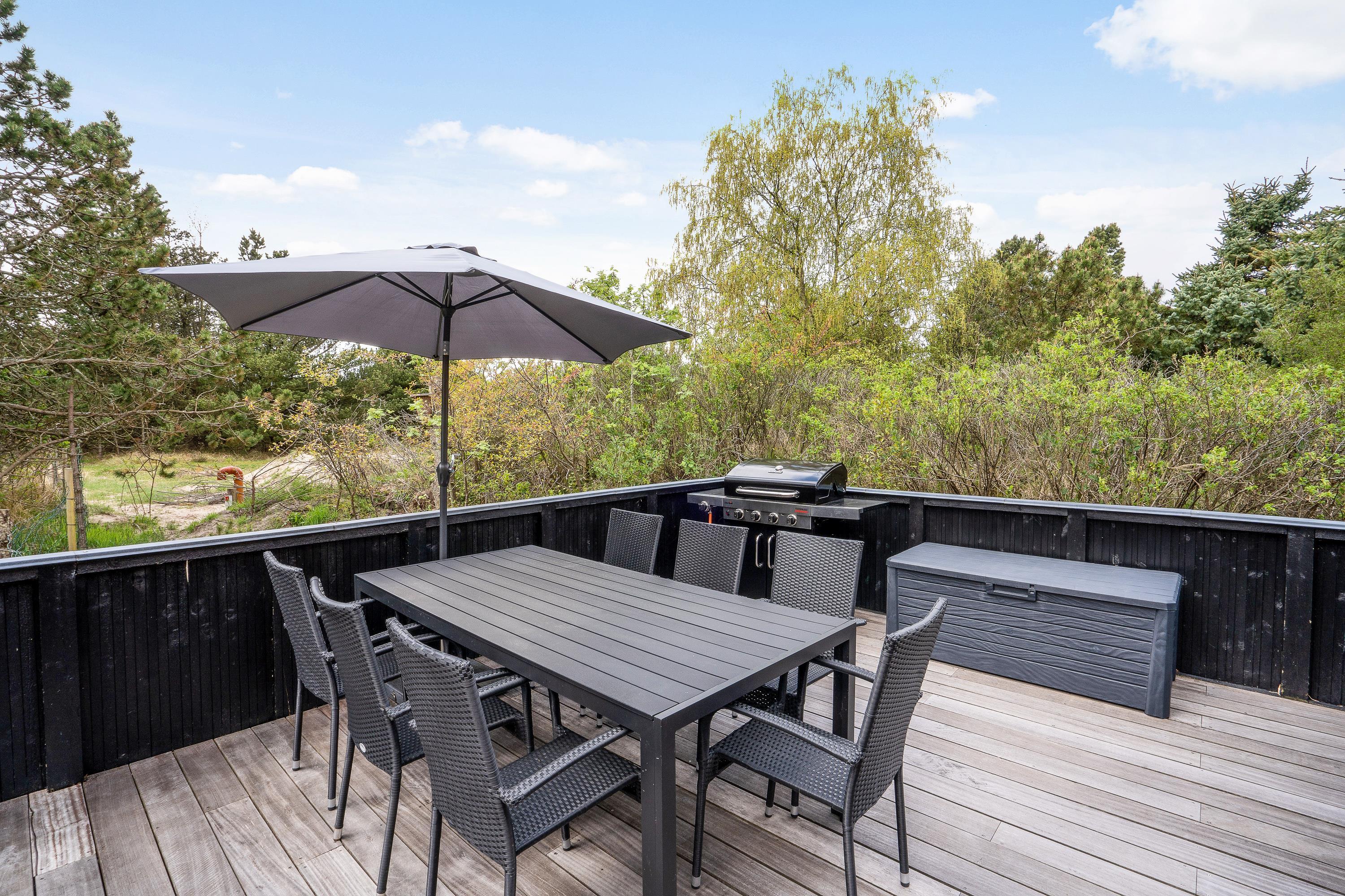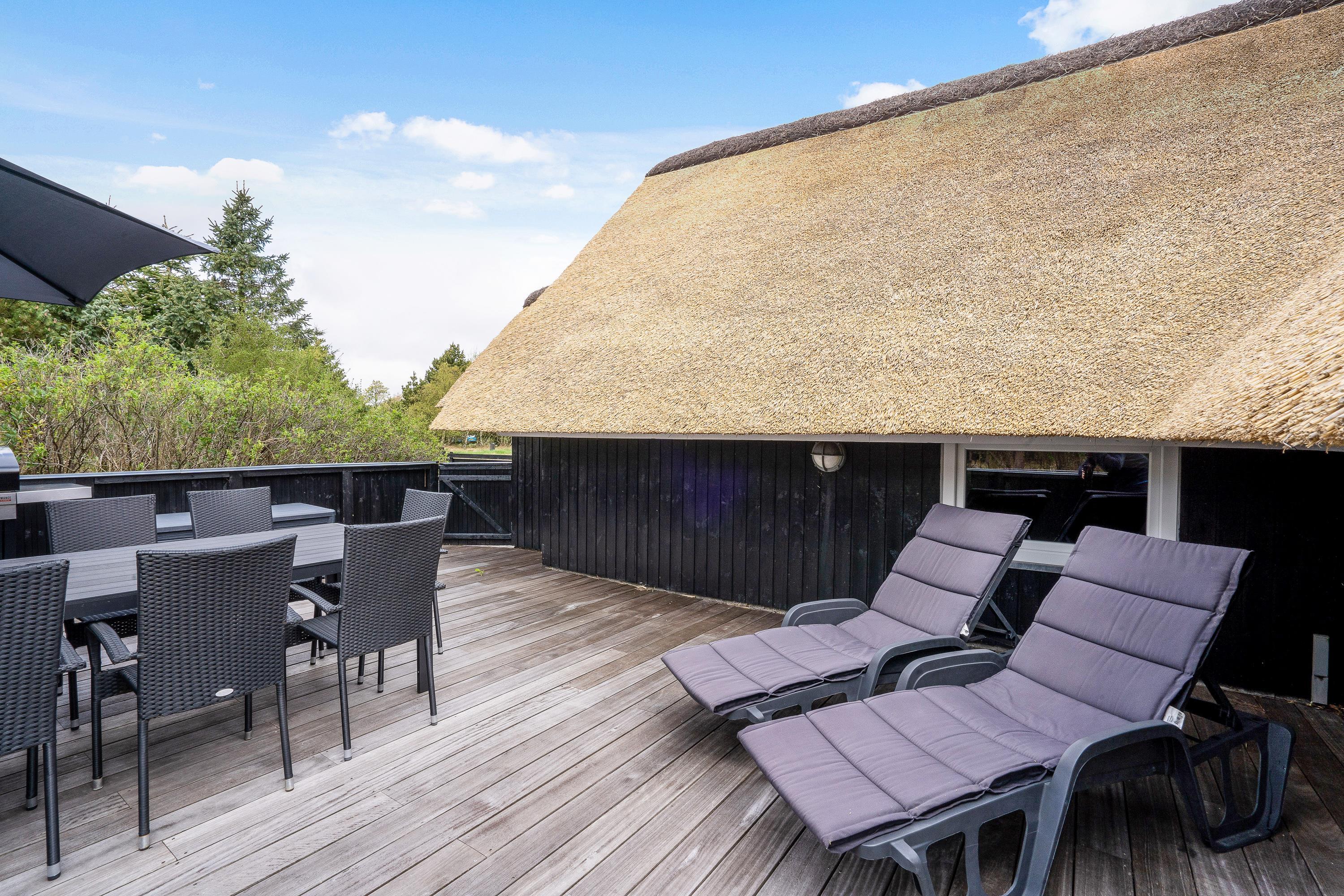 Mod syd er der en skøn, stor terrasse med flere hyggelige kroge, hvor I kan sætte jer med en kop nybrygget kaffe eller en god bog. Der er også liggestole, parasol og en praktisk gasgrill på terrassen, så I nemt og hurtigt kan tilberede en middag på grillen.