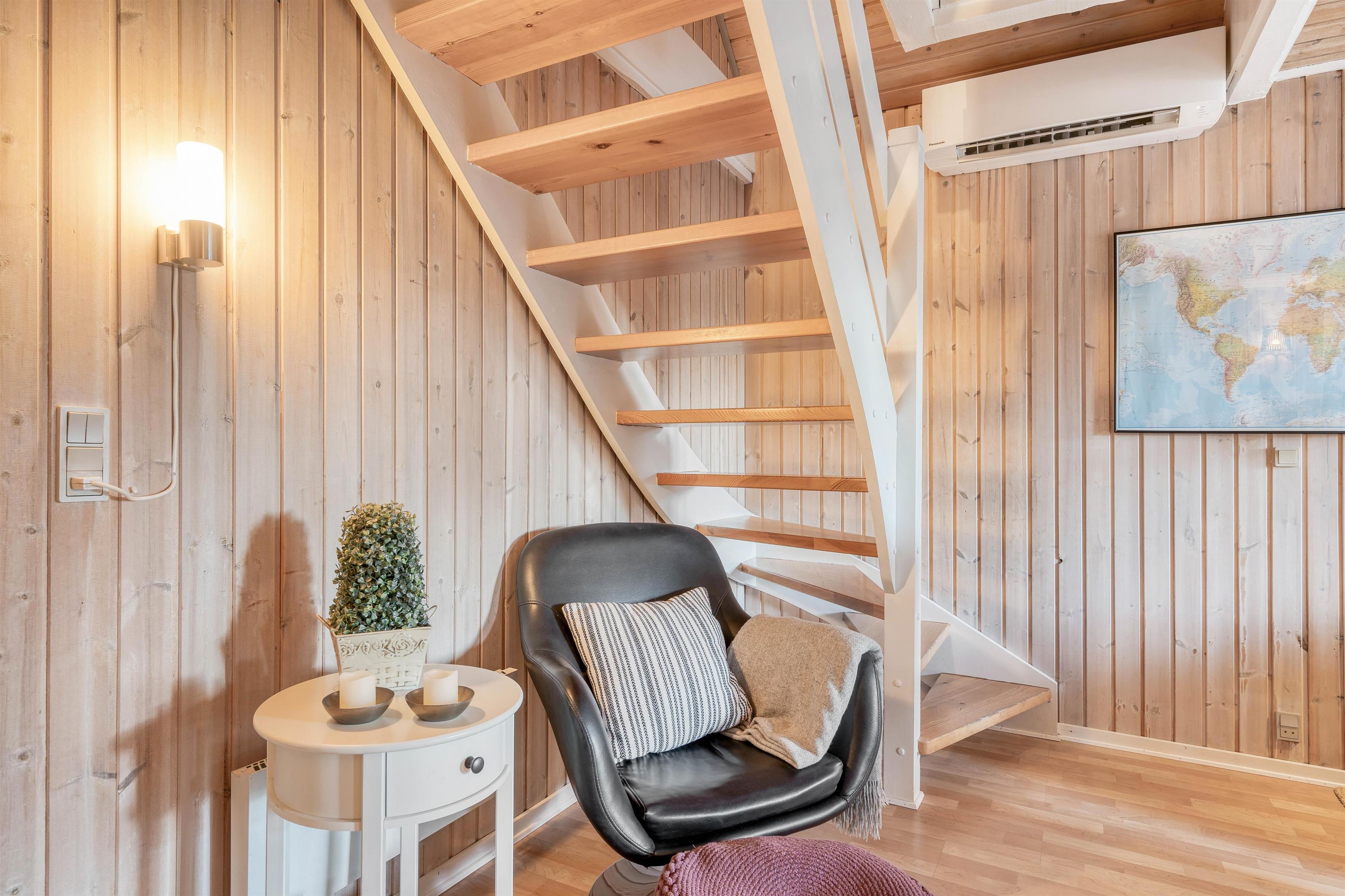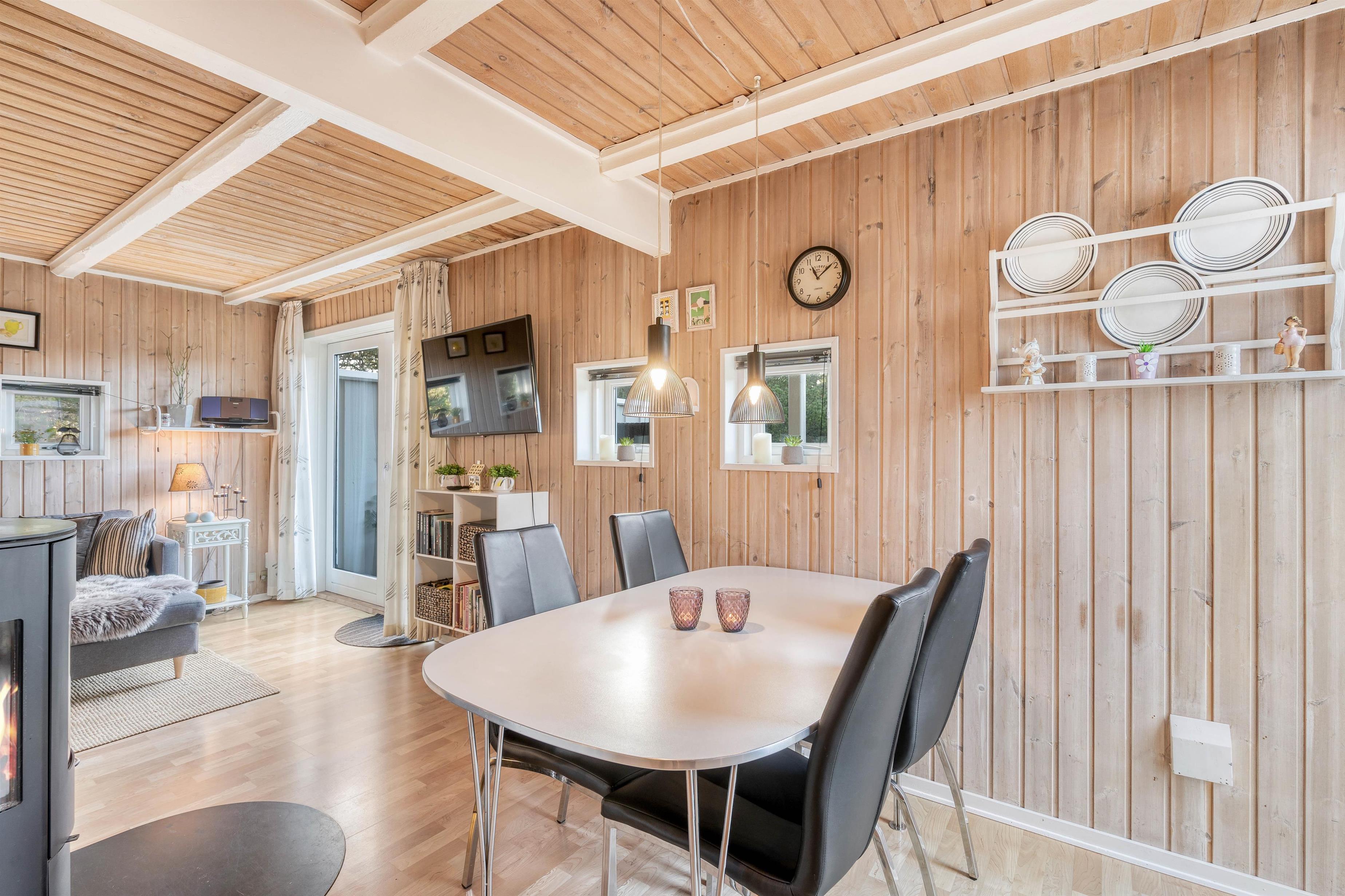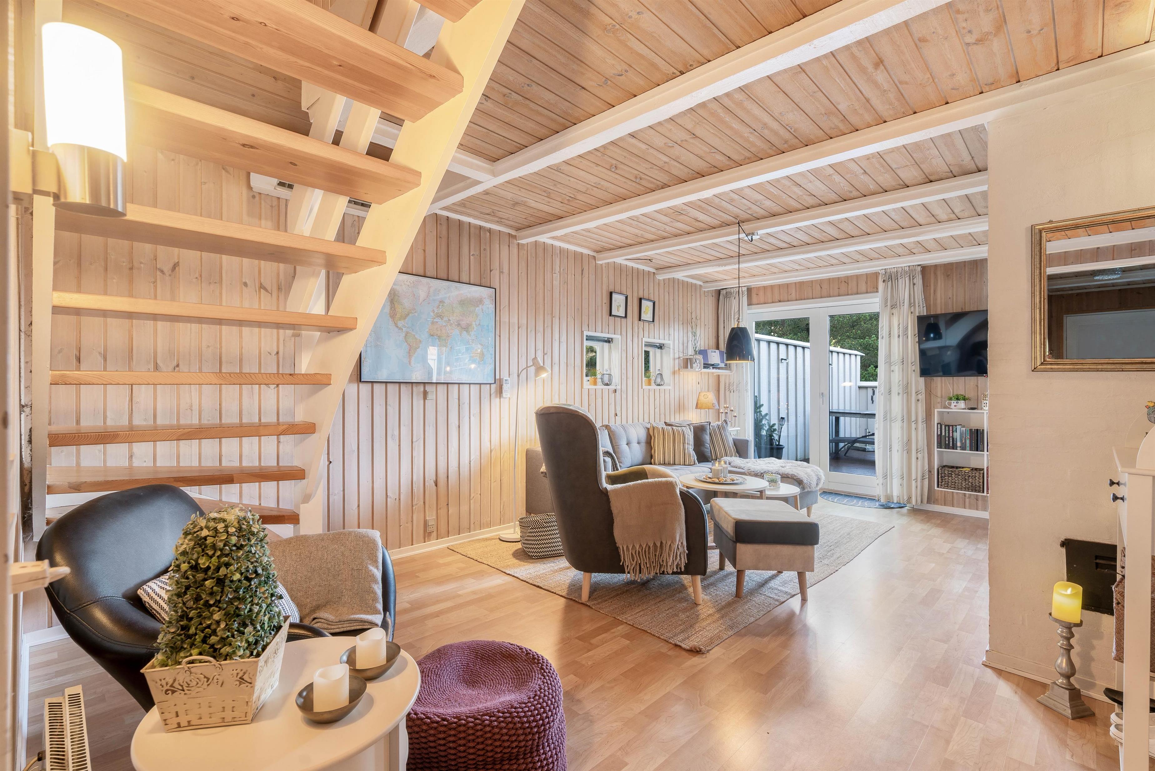 Sommerhuset er indrettet i 2 plan. I stueetagen er alrummet, hvor køkken, stue og spiseafdeling ligger i åben forbindelse. Her kommer I uden tvivl til at få mange hyggelige timer til at gå sammen med madlavning, spil og film. Brændeovnens knitren i baggrunden sætter prikken over i’et for feriestemningen.