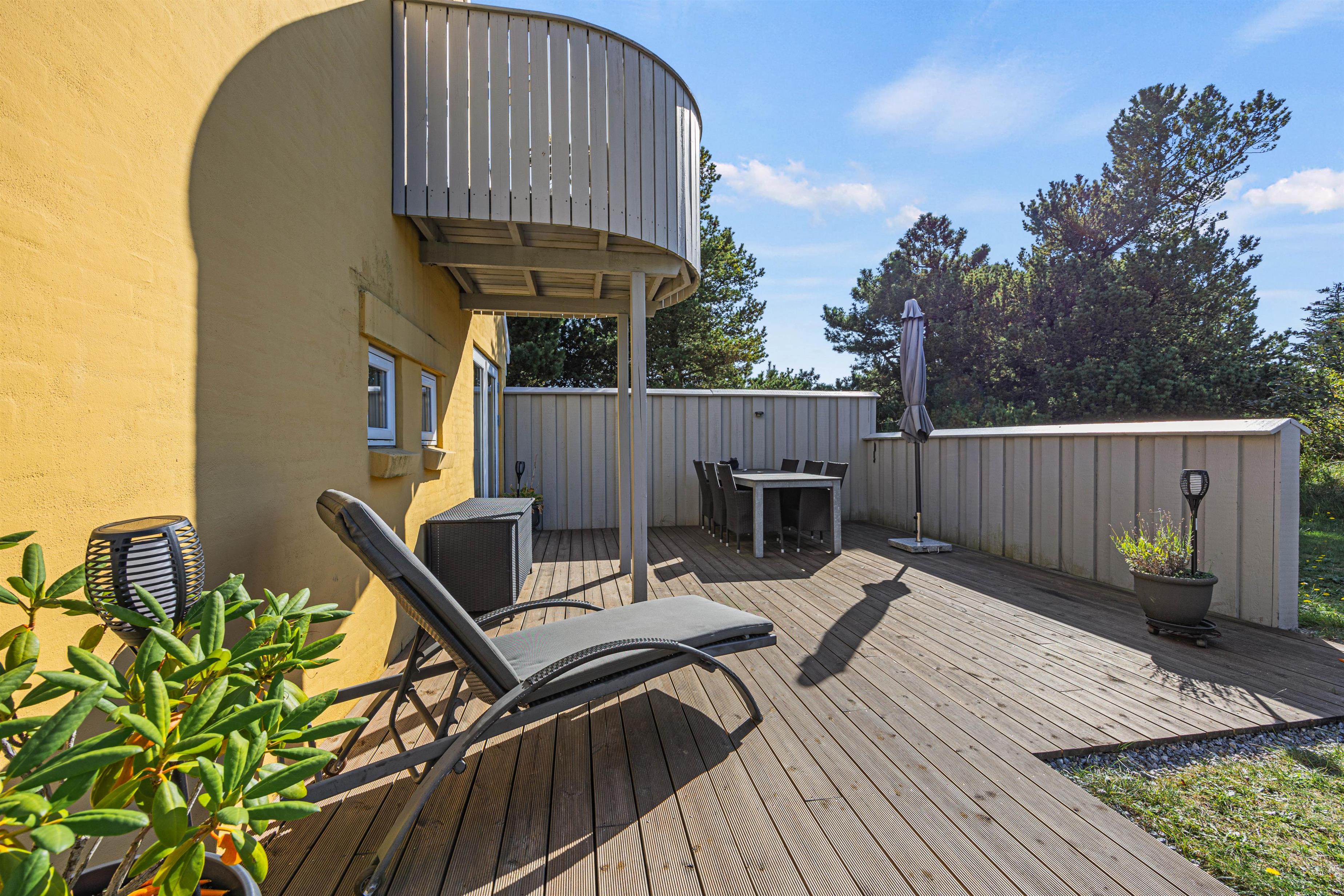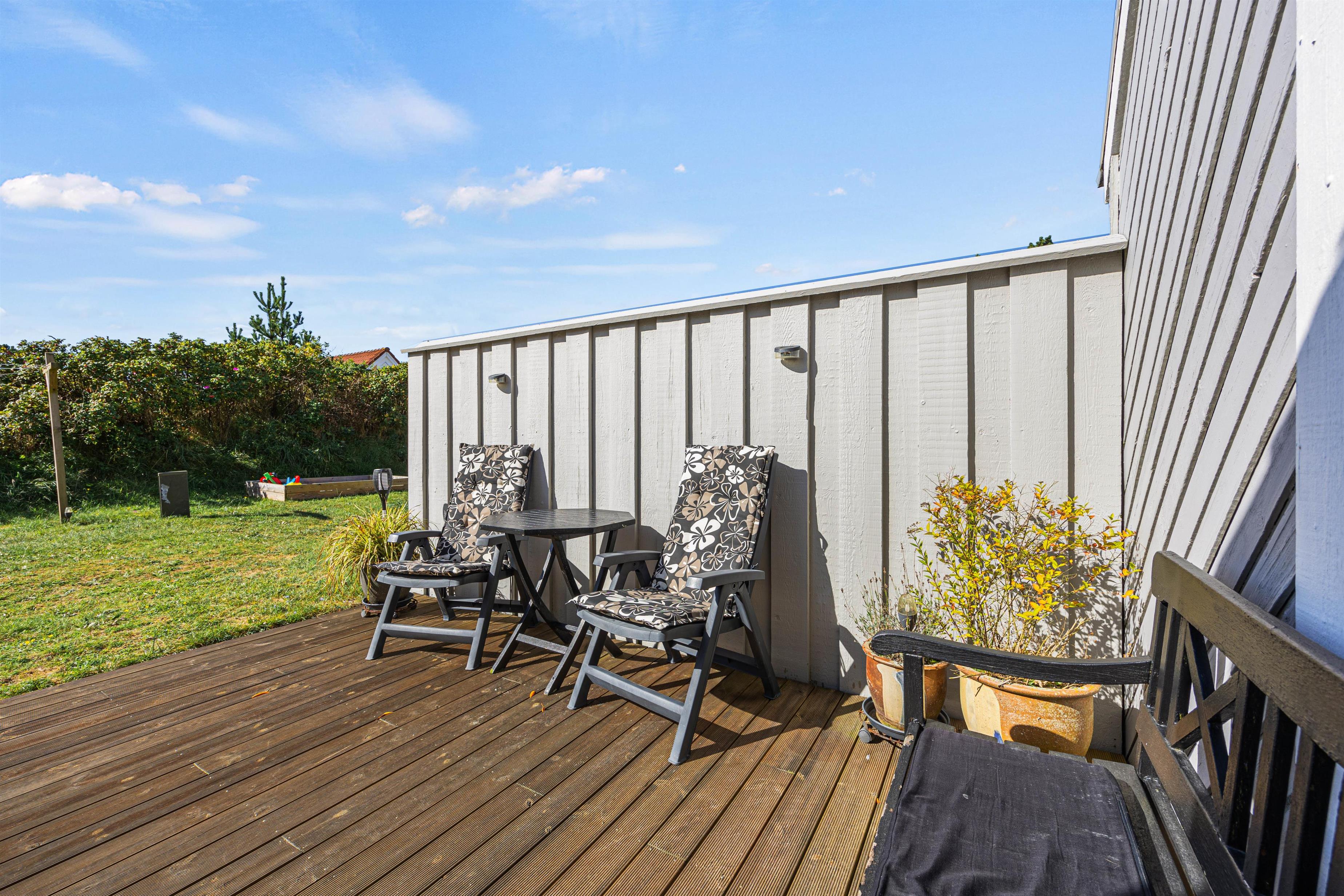 På sommerhusets sydside har I en skøn afskærmet terrasse, som er det oplagte sted at tilbringe feriens solrige dage. Find jer en god plads i solen, hvor I kan sætte jer til rette i havemøbler og liggestole med en god bog og noget koldt at drikke.