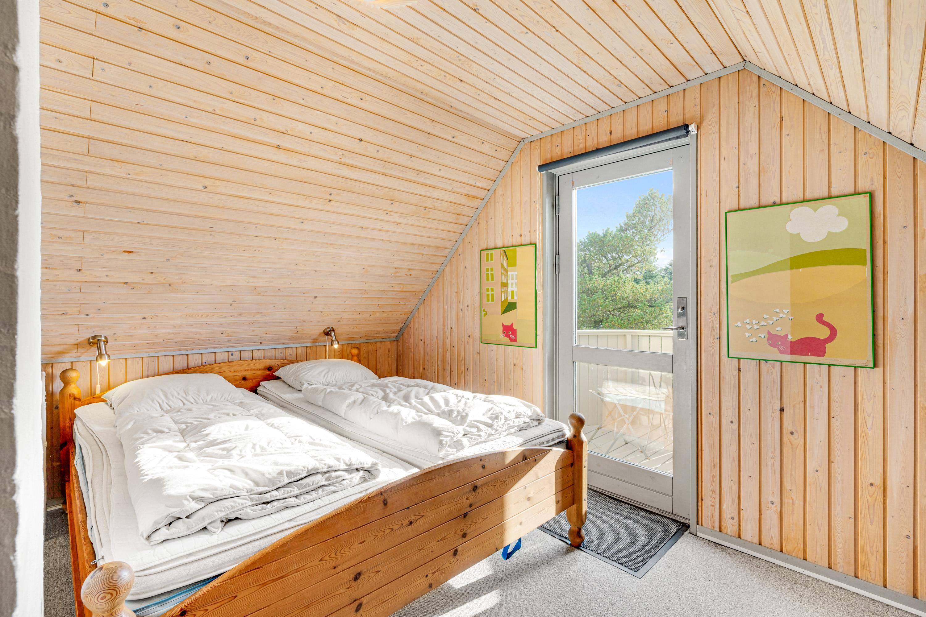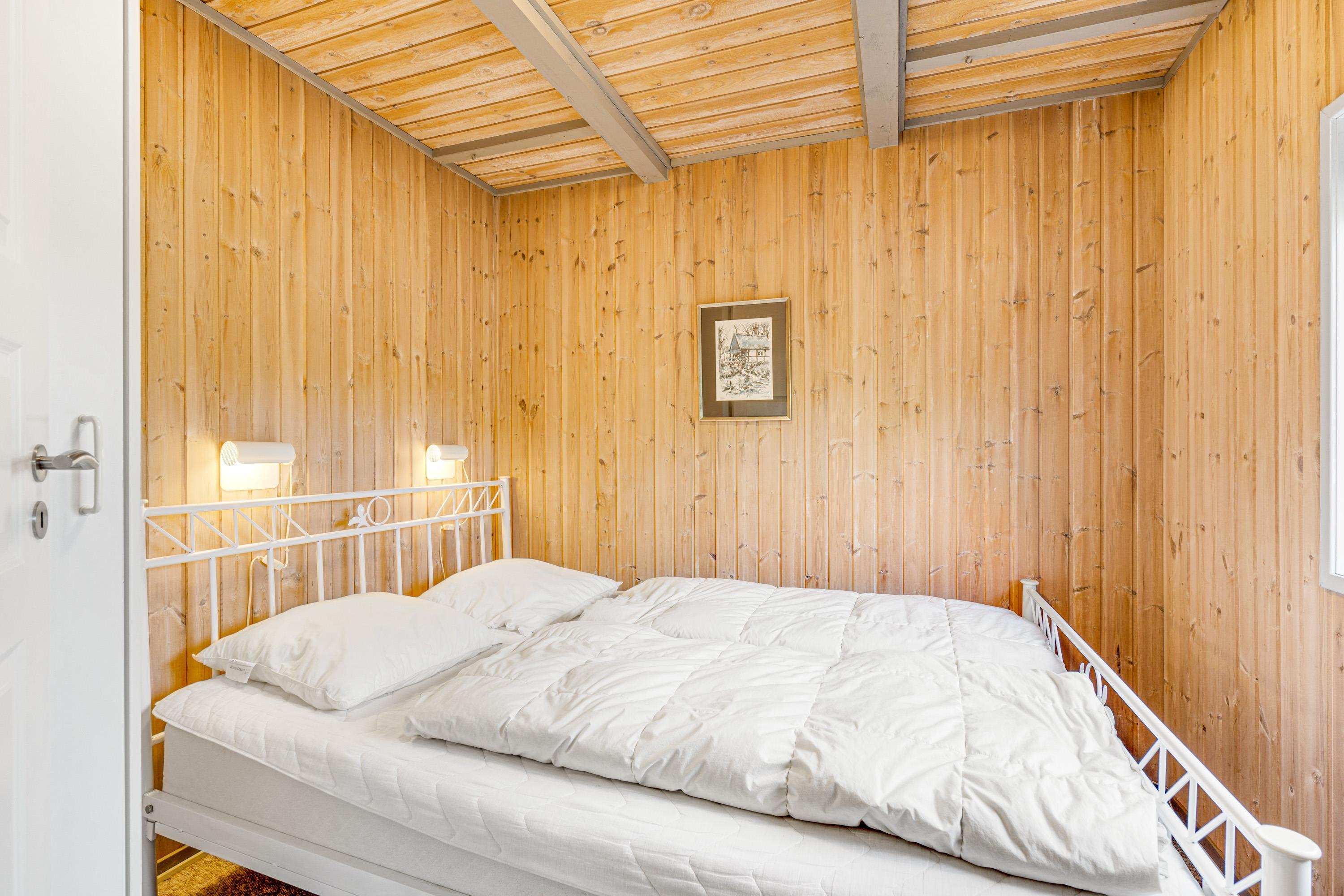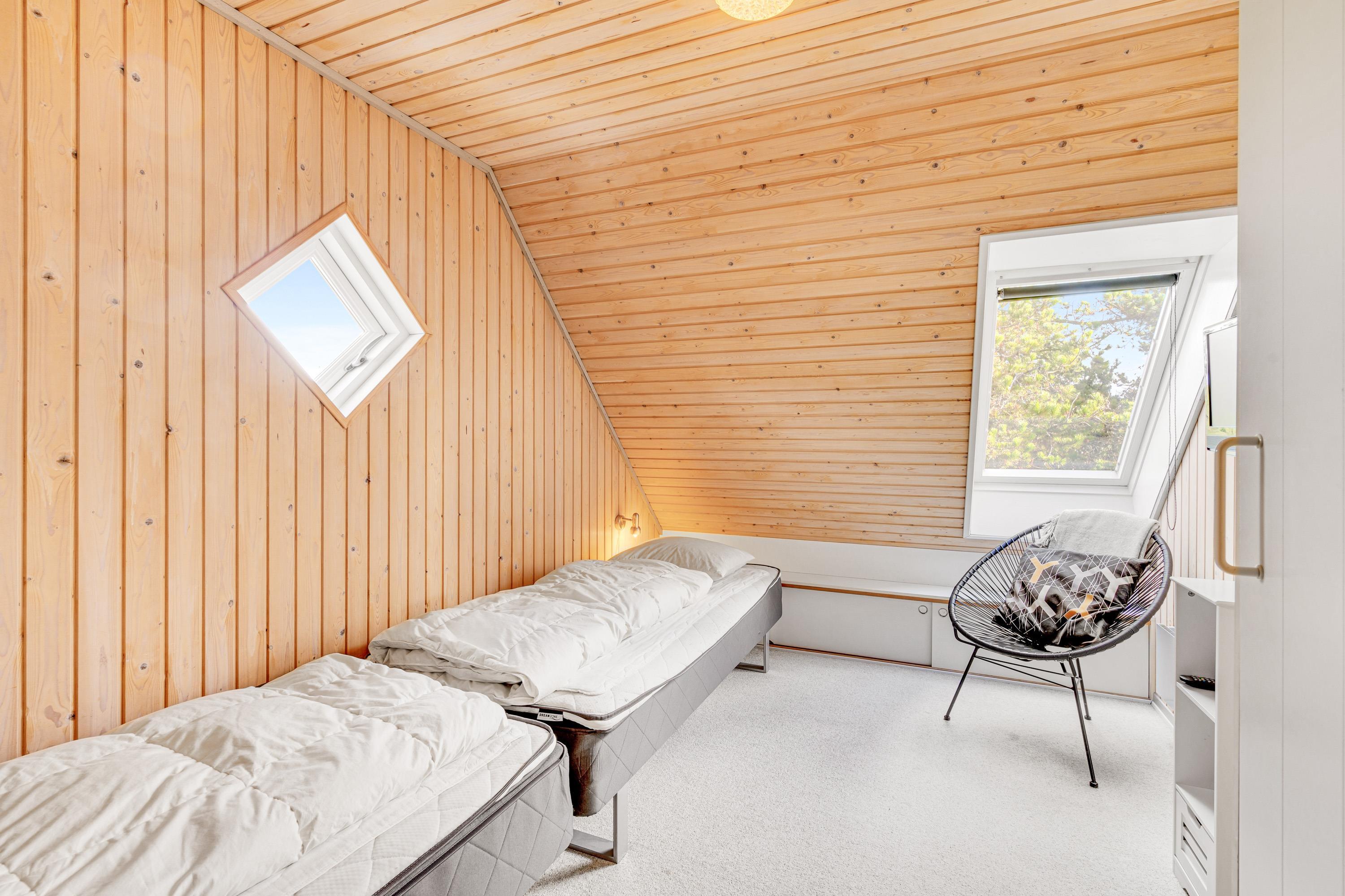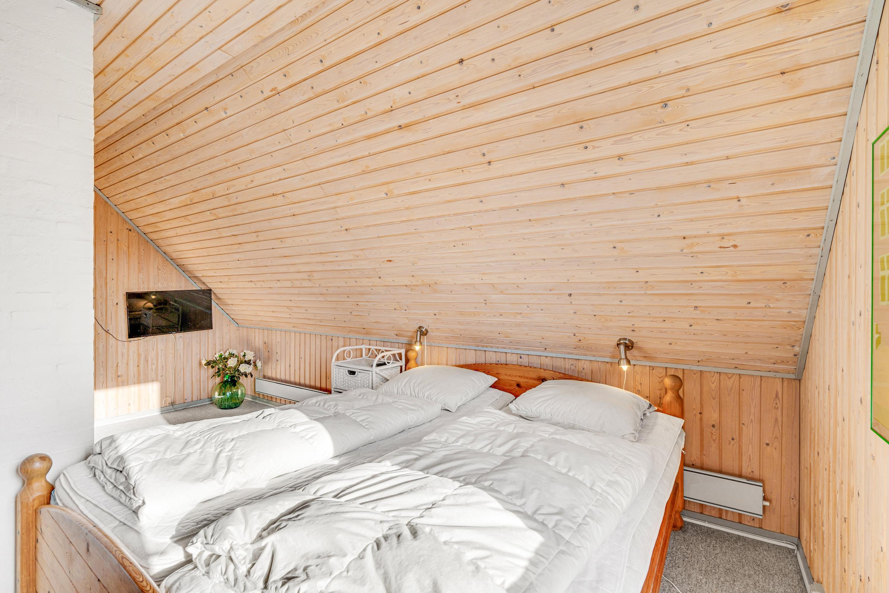 I stueetagen finder I desuden badeværelset og det ene soveværelse. De 2 resterende soveværelser finder I på sommerhusets førstesal. 2 af soveværelserne er indrettet med dobbeltseng, mens det tredje soveværelse er indrettet med 2 enkeltsenge.