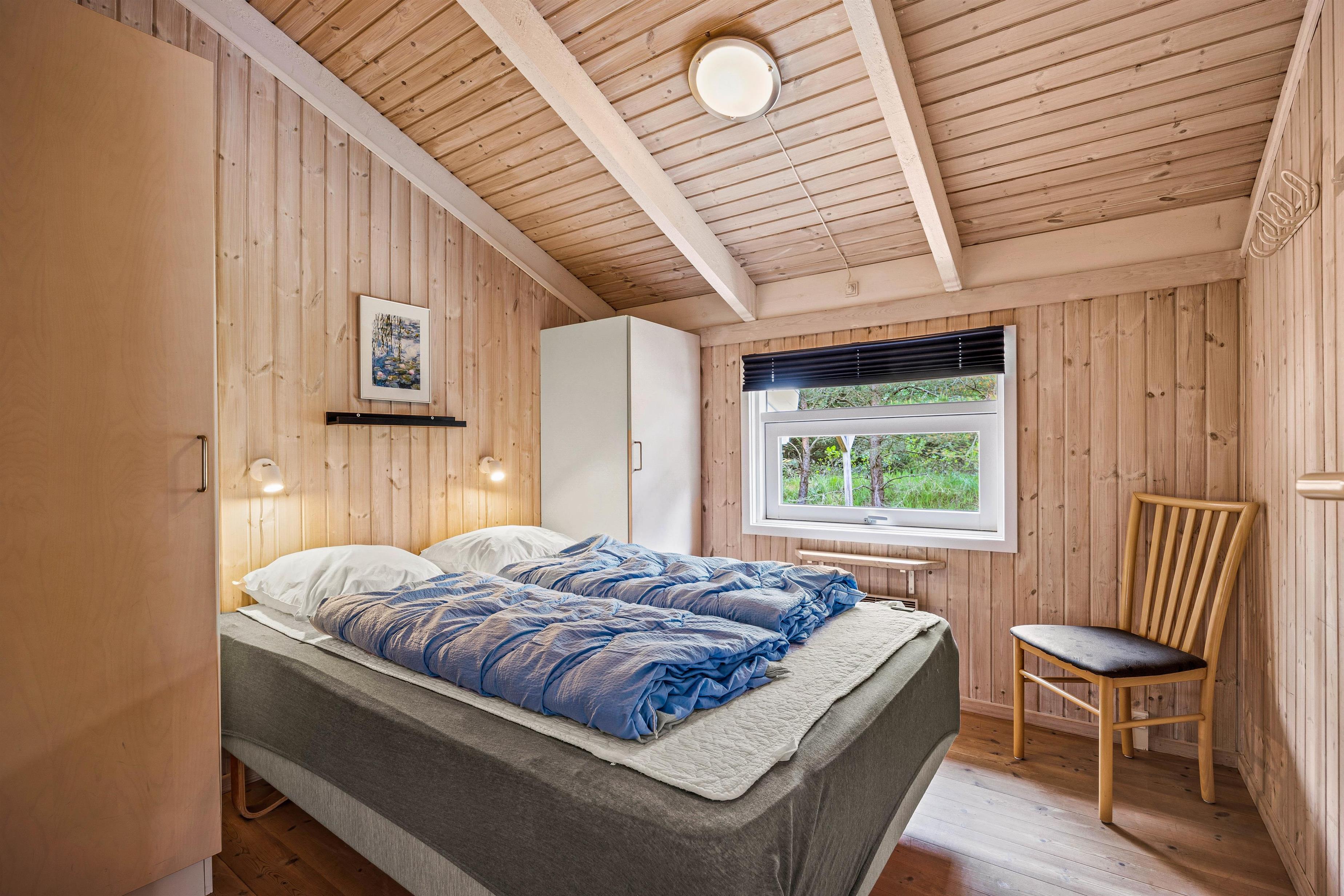 Fra alrummet kan I bevæge jer op på hemsen, hvor I finder en soveplads. Ellers er sovepladserne at finde på sommerhusets 4 soveværelser, der i alt er indrettet med 3 dobbeltsenge og 2 enkeltsenge, som I kan få jeres skønhedssøvn i. Der er et par små trin ned til to af soverummene. Om morgenen slipper I for kø, da der er 2 badeværelser i sommerhuset.