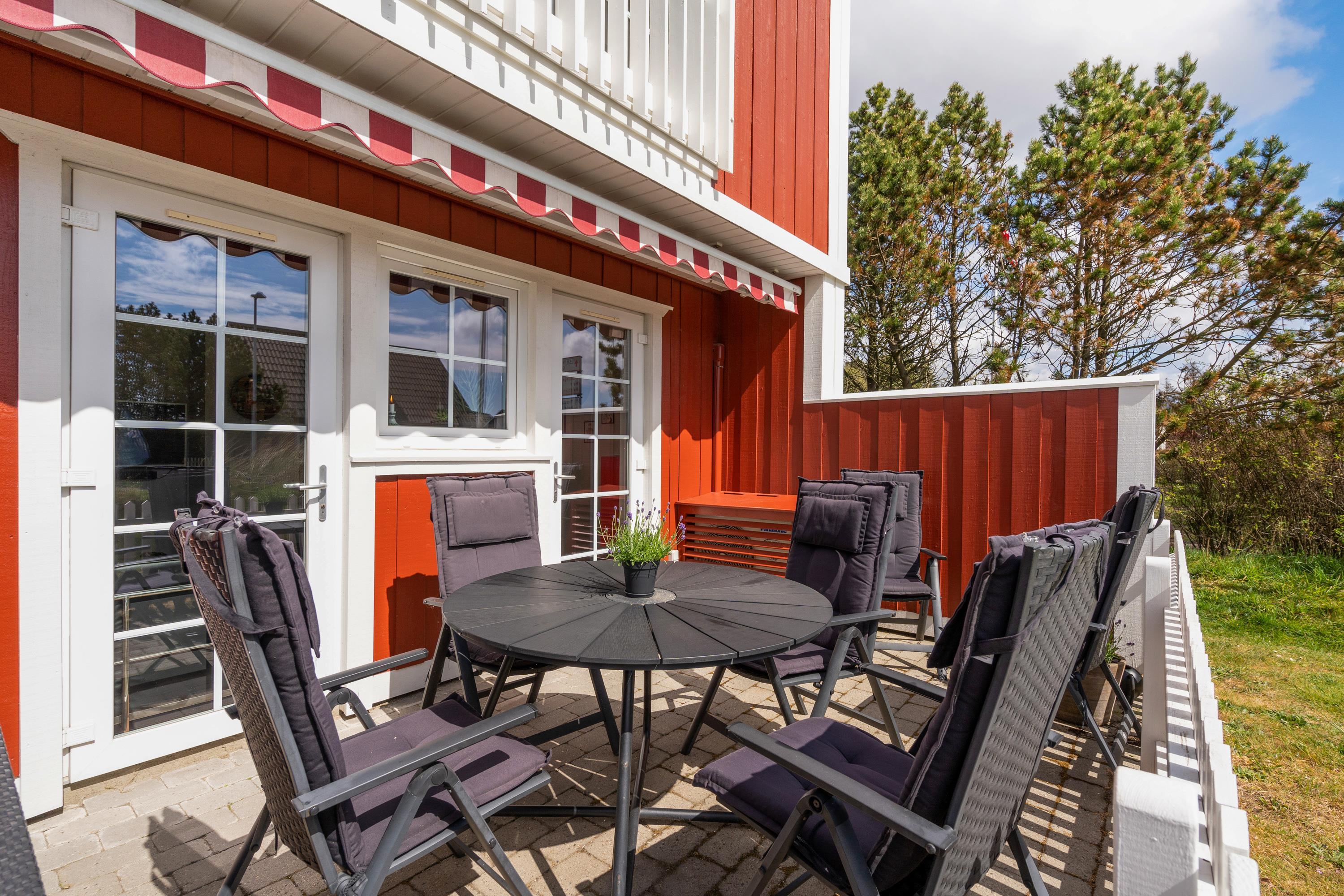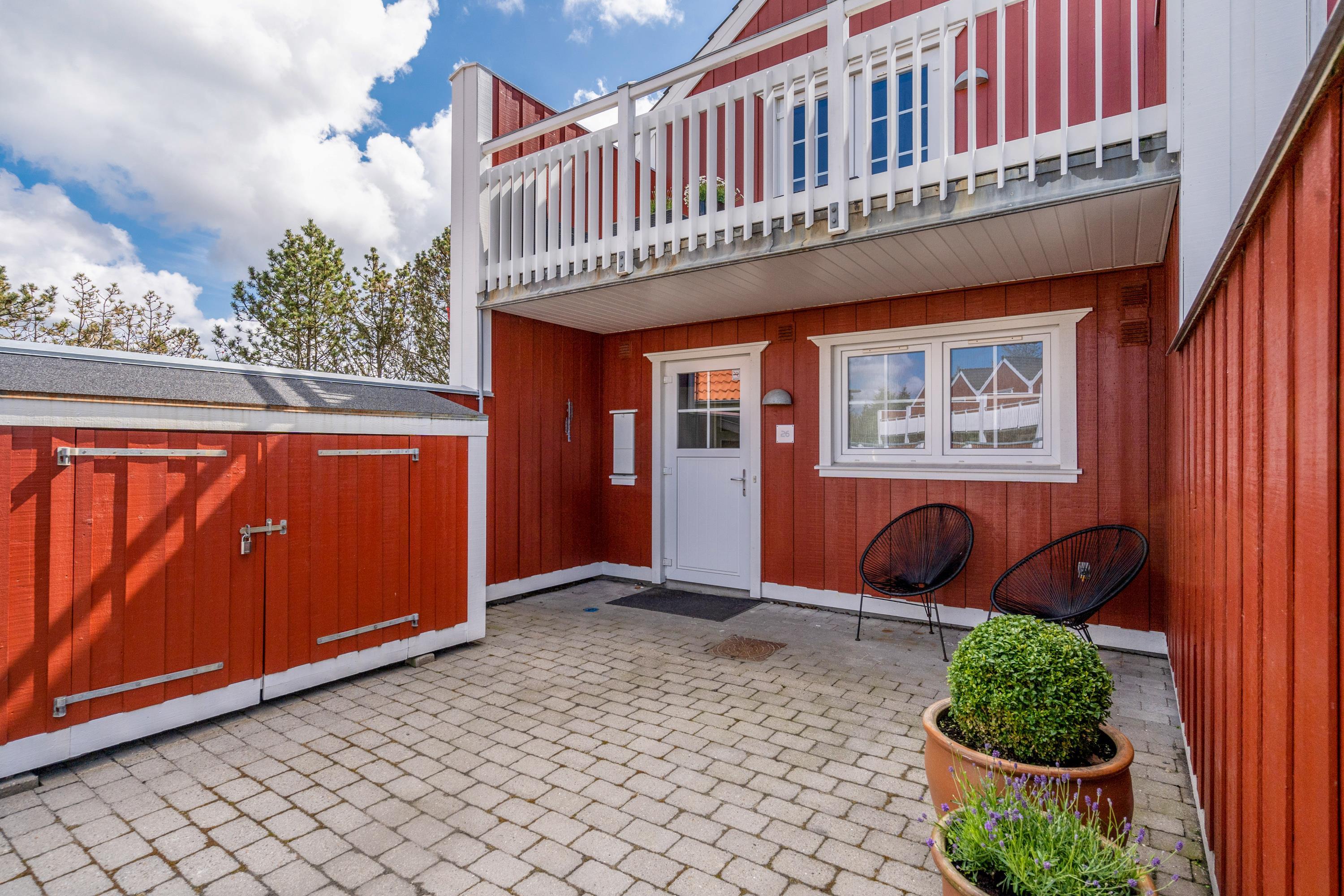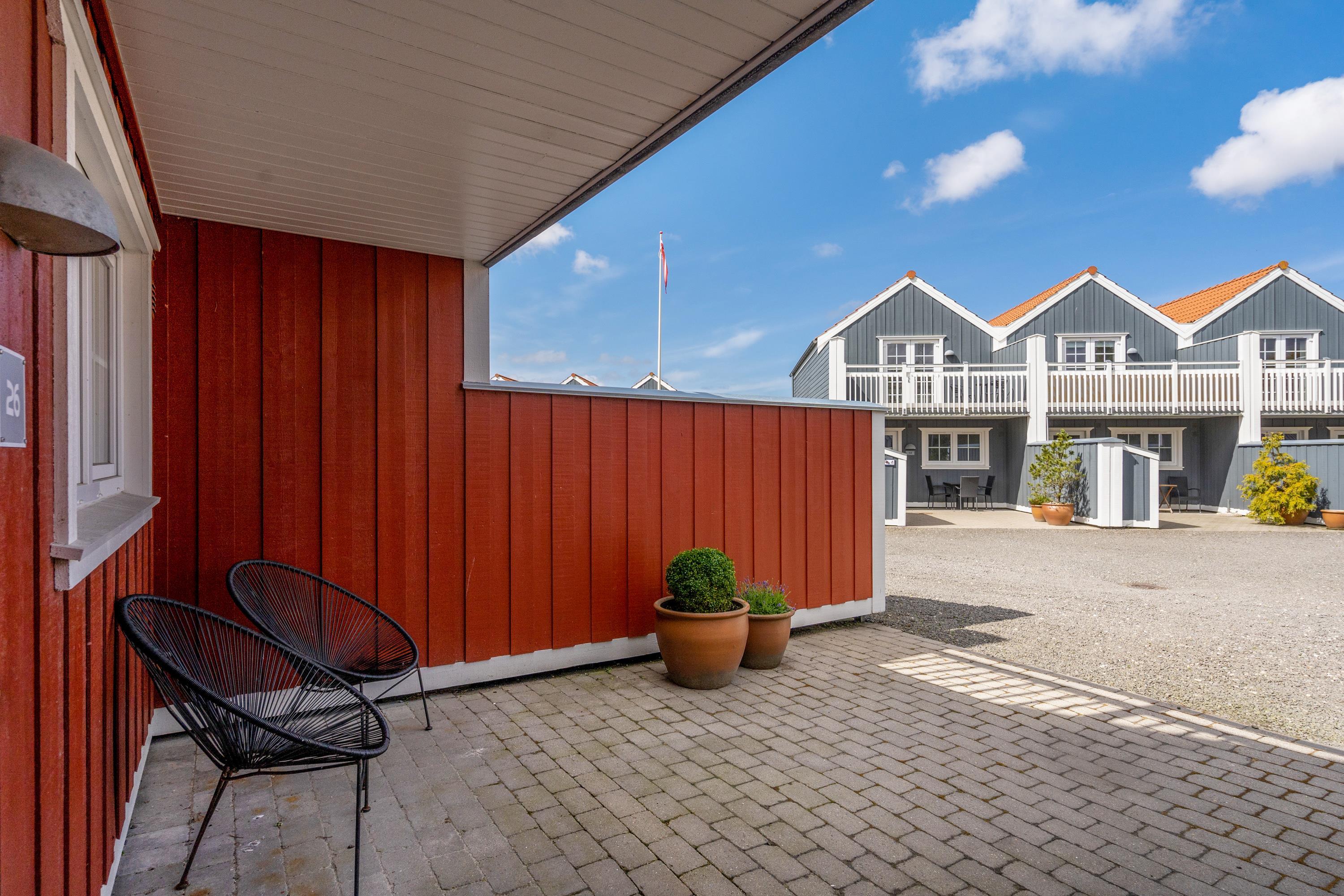 På den delvist overdækkede terrasse kan I nyde den friske luft med feriebyens summen i baggrunden. Med egen gasgrill kan I hurtigt få tilberedt maden på en lun sommeraften og samles om havebordet til en feriemiddag i verdensklasse.