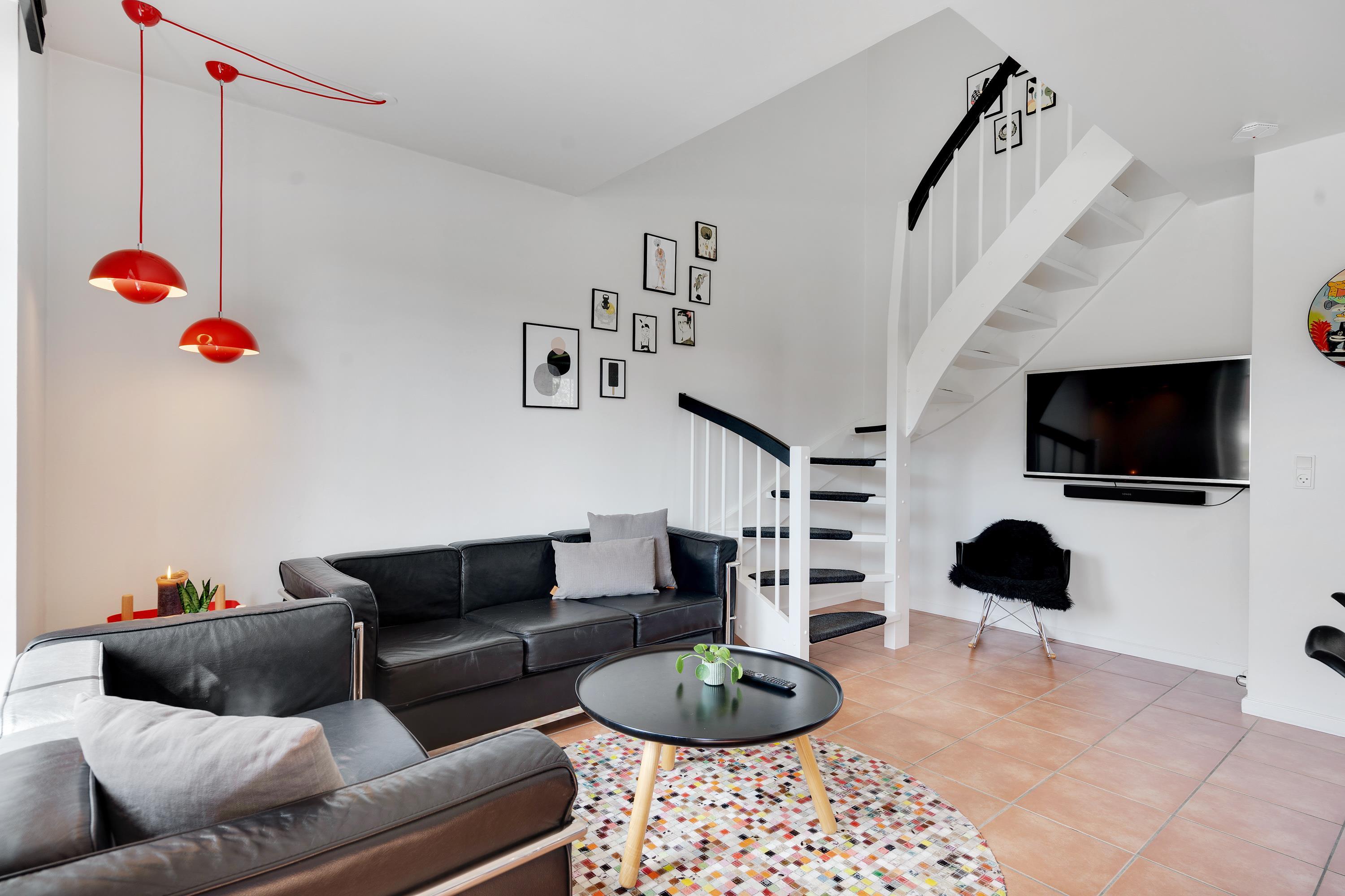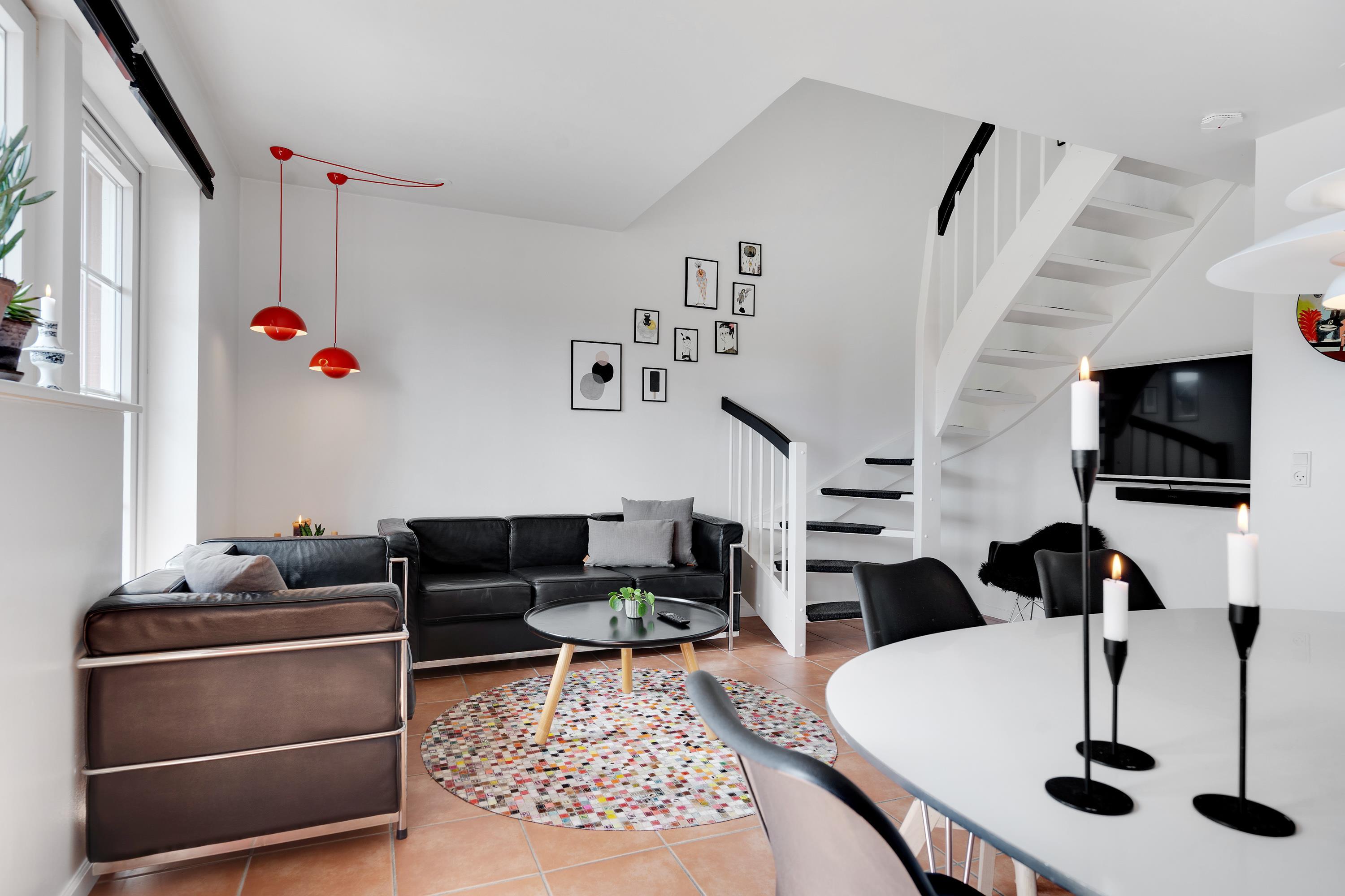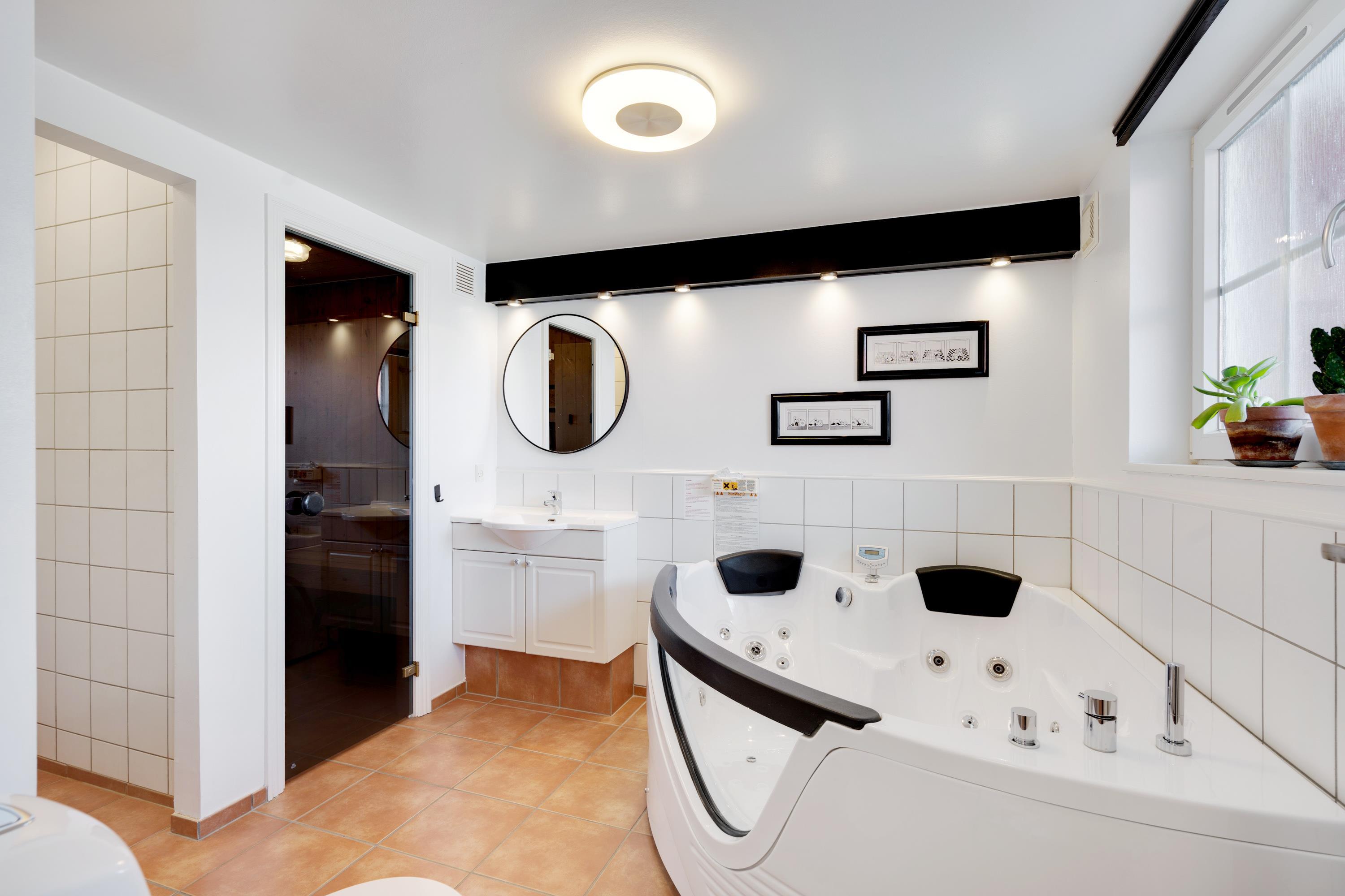 Hyggelig indretning med sauna, spabad og 2 badeværelser