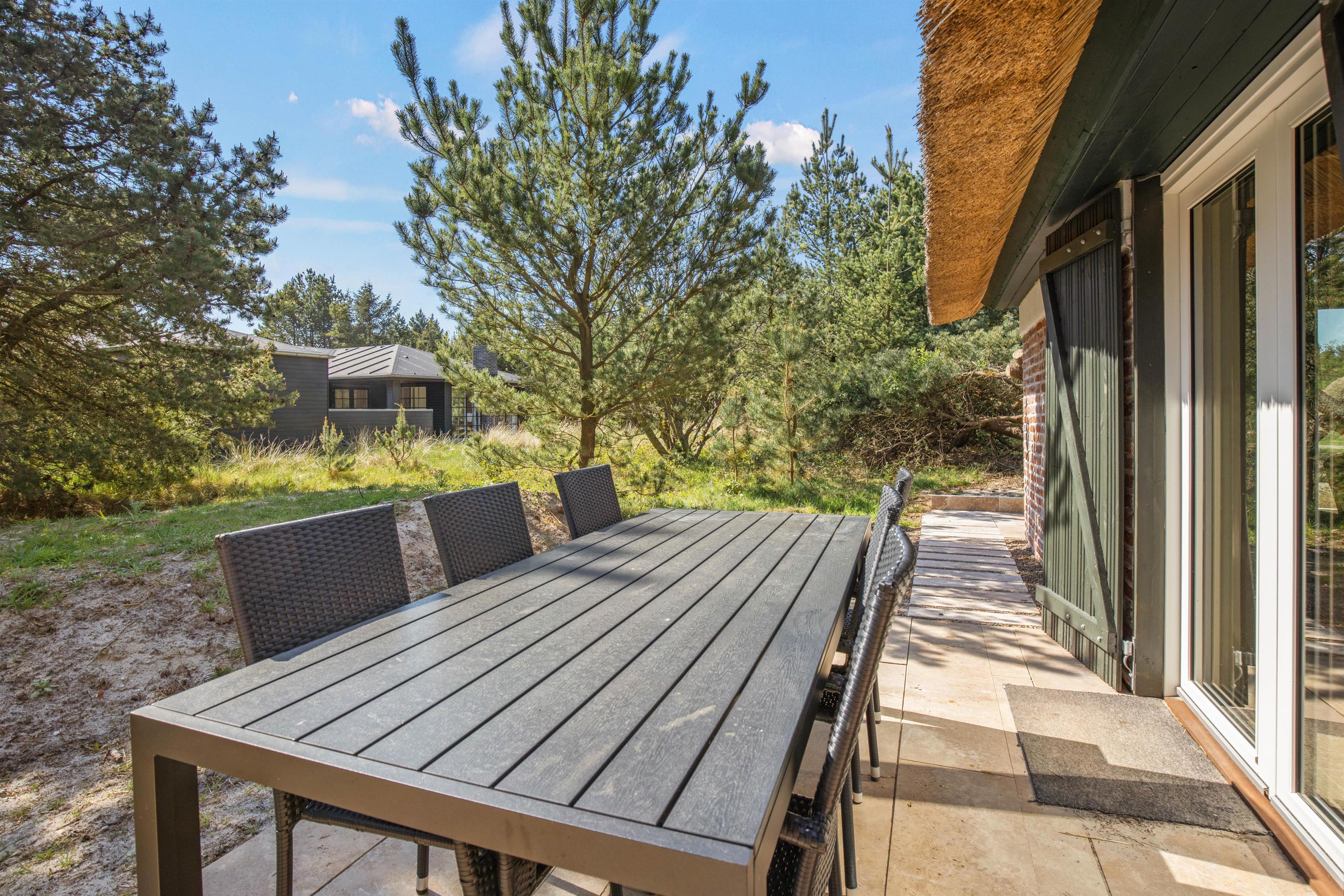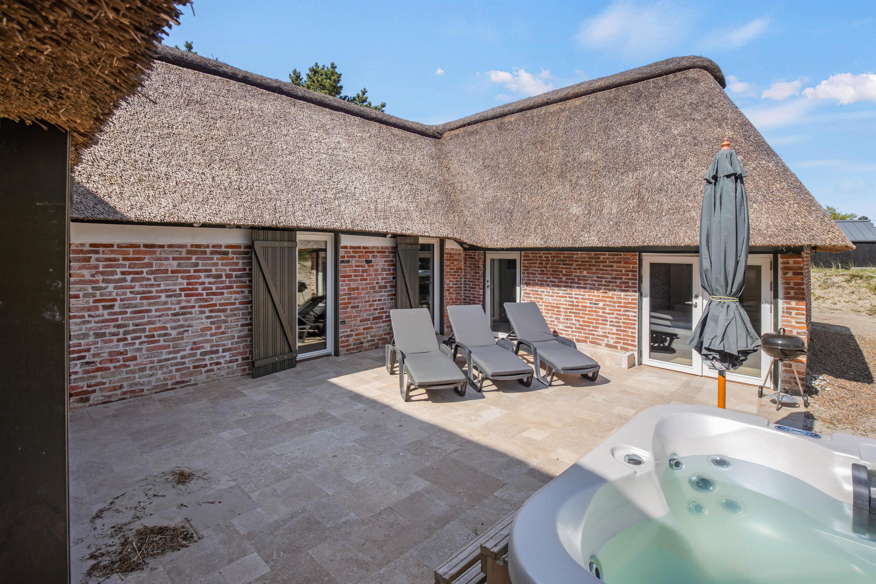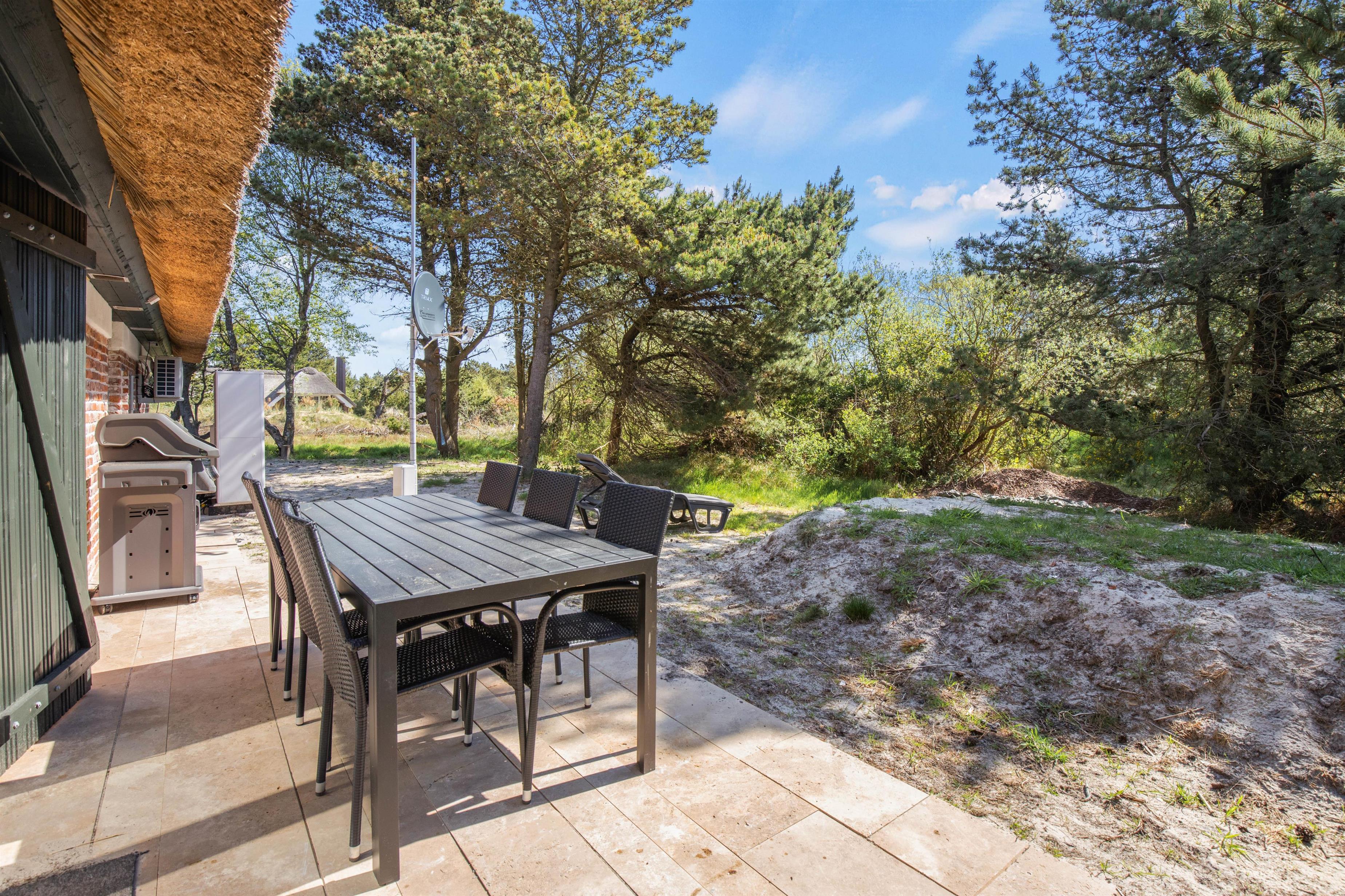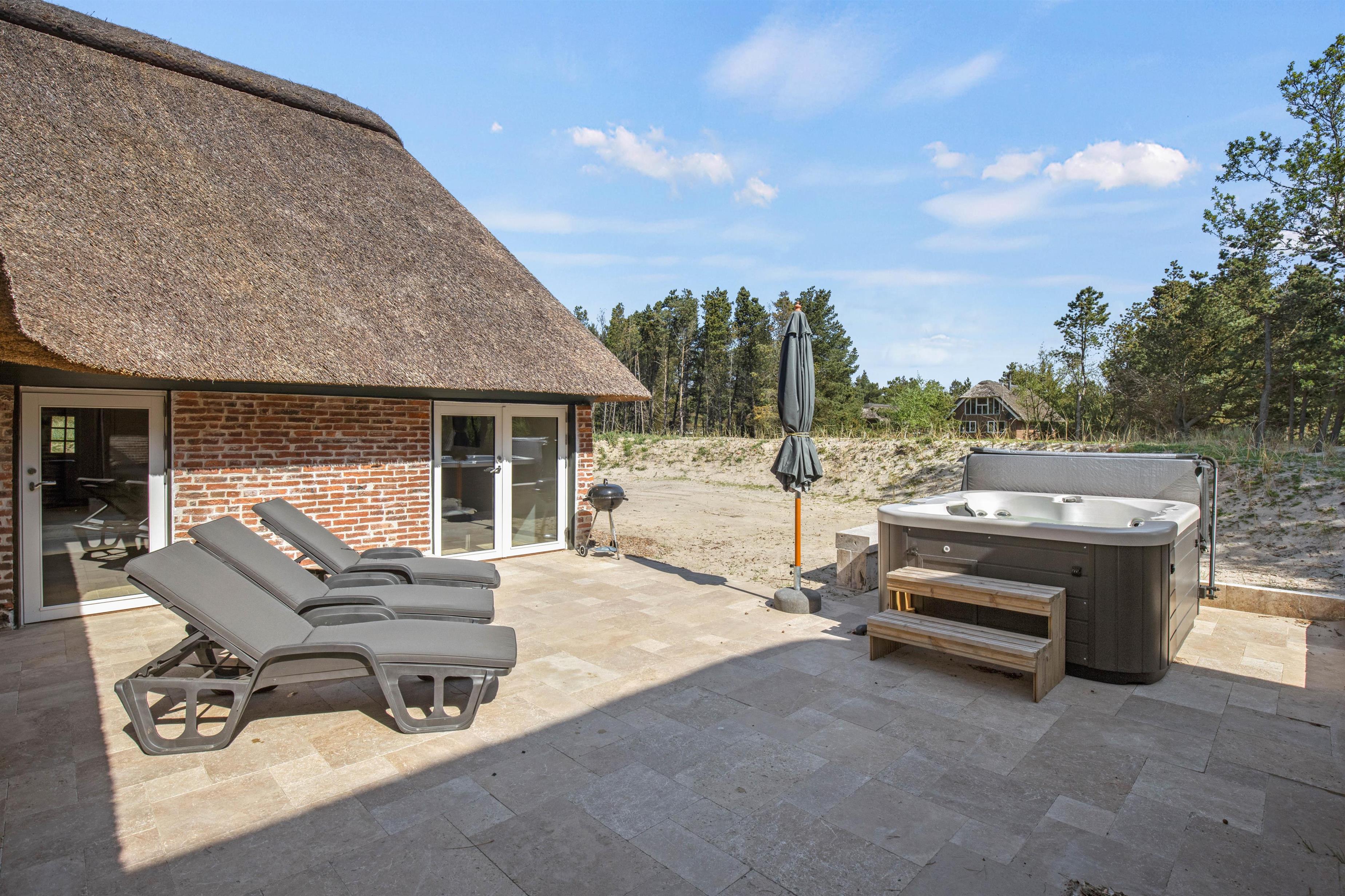 Udendørs venter jer et af sommerhusets absolutte højdepunkter; udespaen. Her kan I sætte jer godt til rette i det varme, boblende vand og nyde masser af afslapning under åben himmel. Udover udespa venter jer også en skøn, åben terrasse, hvor I har både havemøbler, liggestole og en grill til rådighed. Find jer en god plads i solen og læn jer tilbage, mens I nyder ferien, varmen og lyden af fuglefløjt i baggrunden. Om aftenen kan I tænde op i grillen og tilberede en lækker grillmiddag.