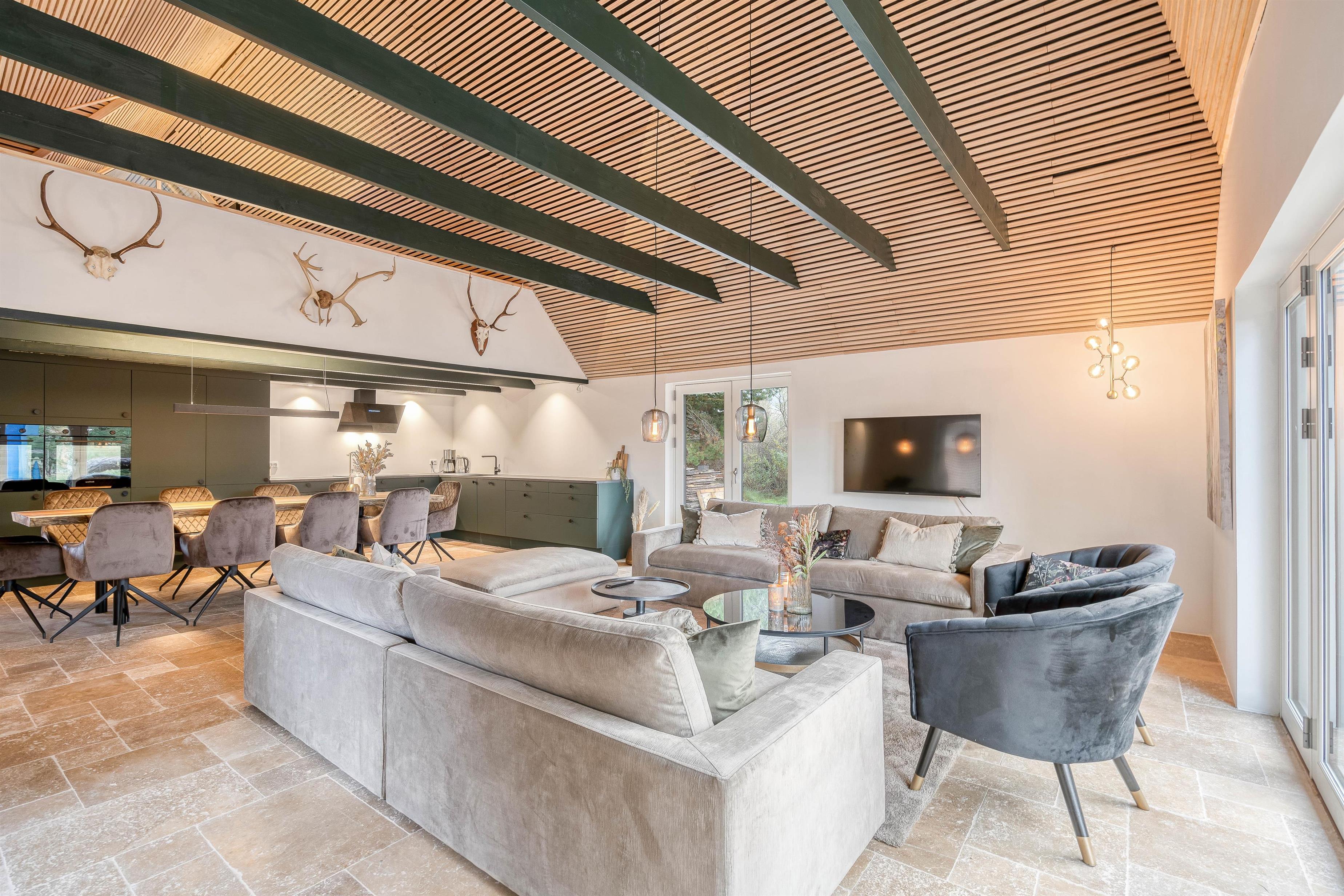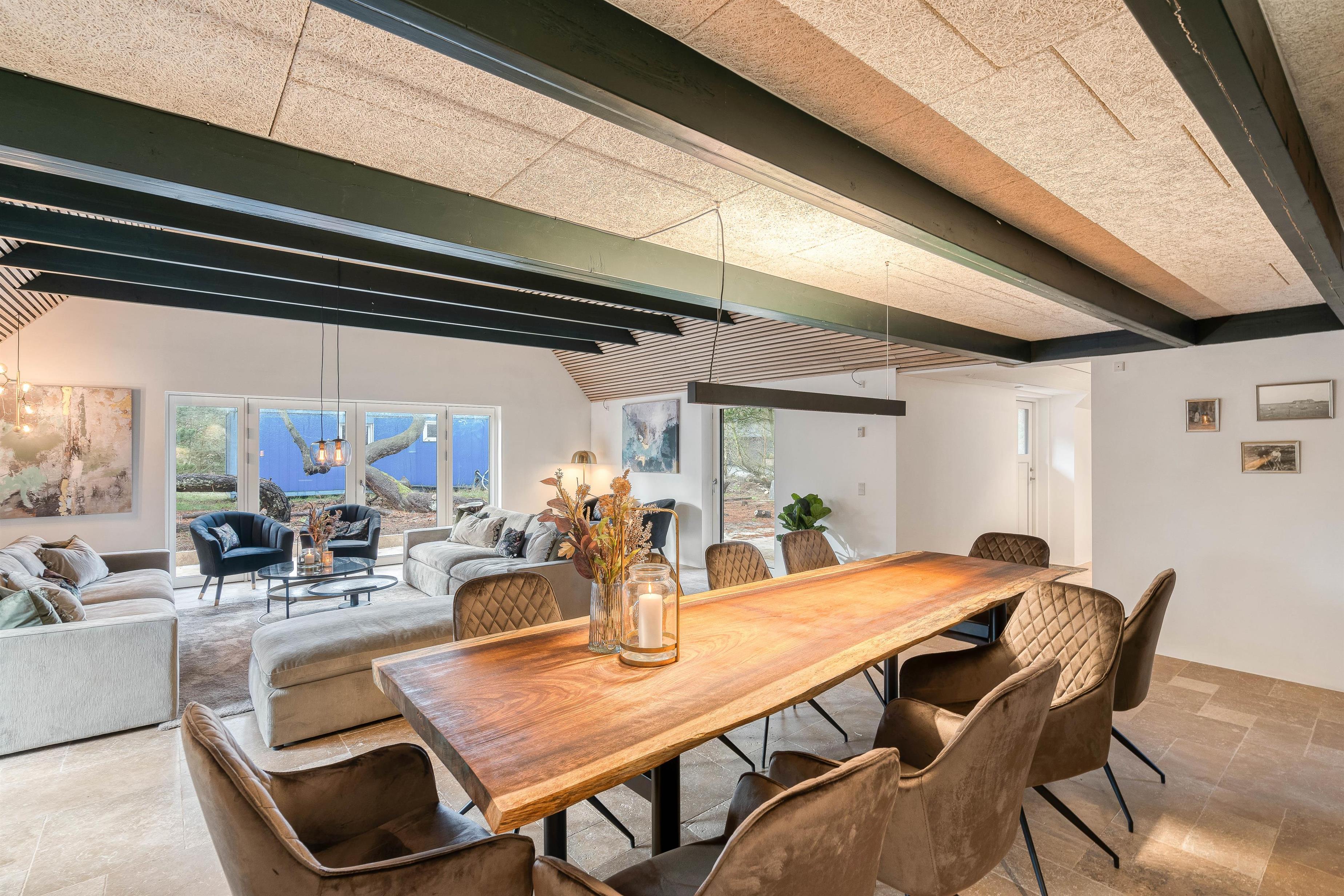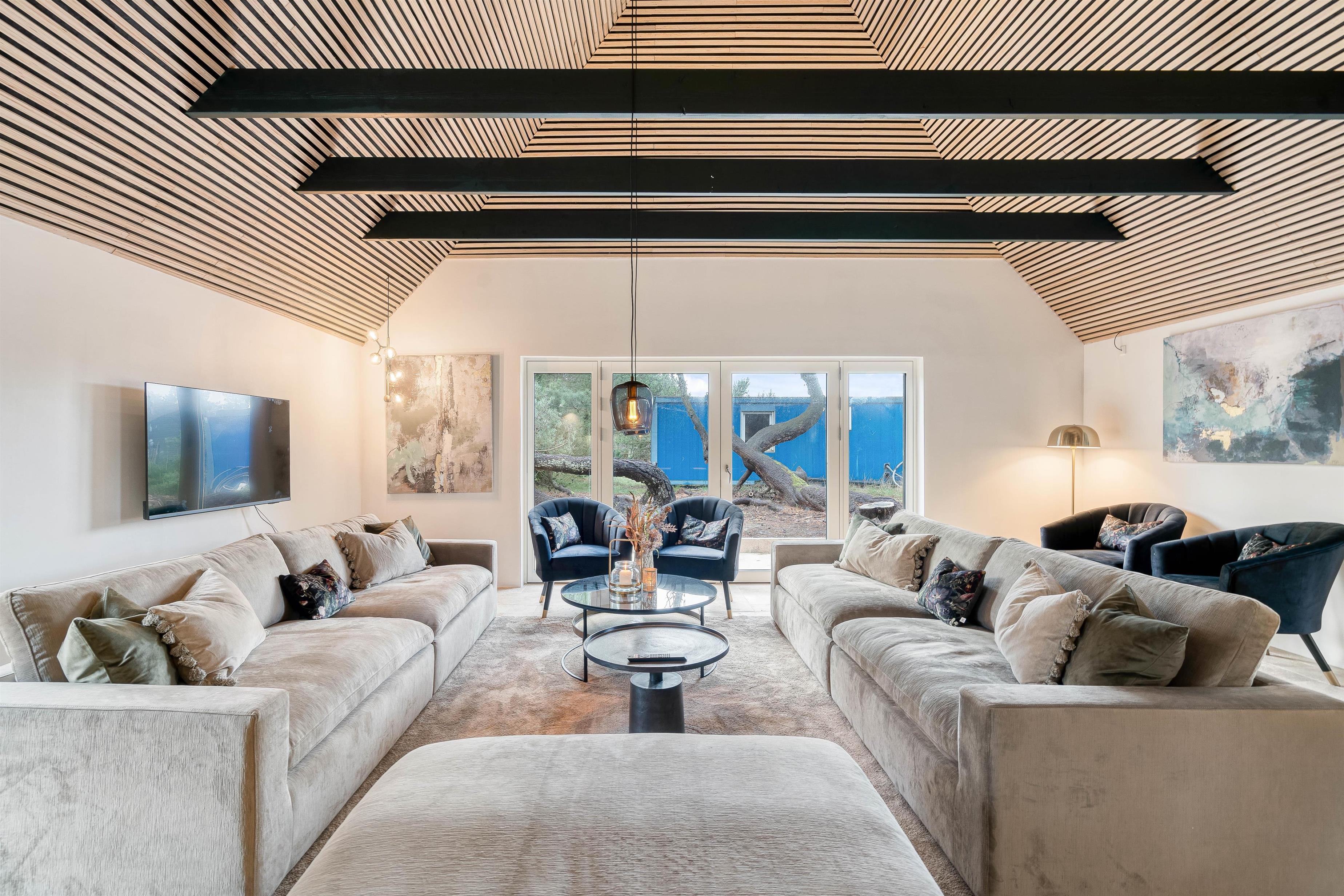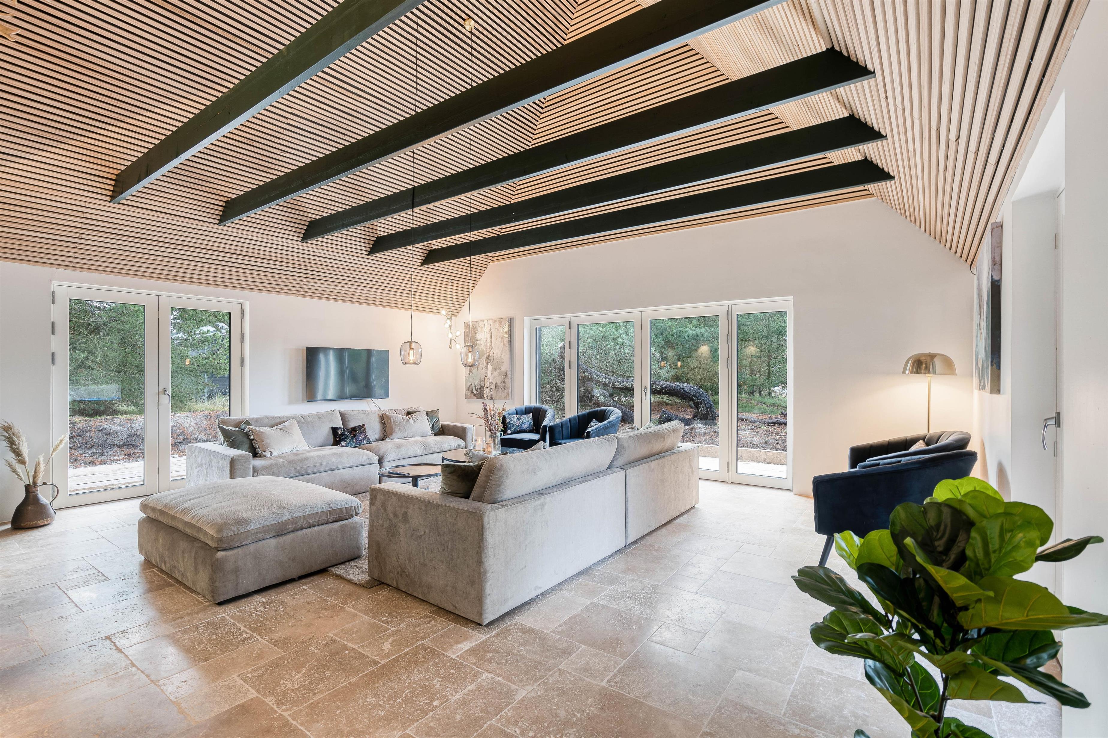 På sommerhusets 207 kvadratmeter finder I desuden 5 soveværelser, der er indrettet med en dobbeltseng hver. Derudover er der hele 6 badeværelser, så I slipper for at stå i kø fra morgenstunden. I hele feriehuset er der gulvvarme, så I undgår kolde fødder.