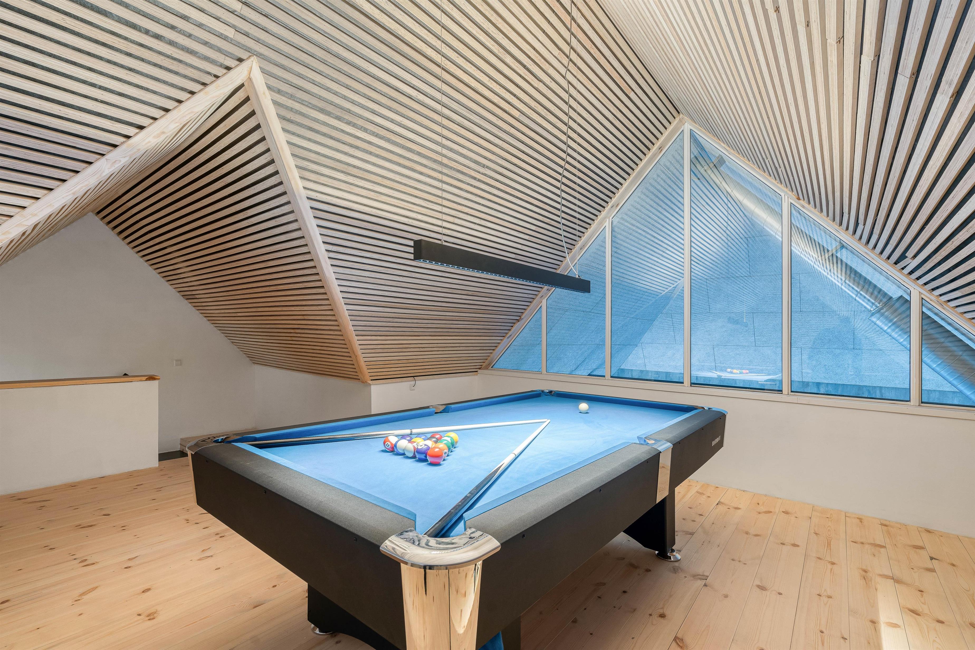 Udover swimmingpoolen er der også et aktivitetsrum i sommerhuset. Aktivitetsrummet er at finde på sommerhusets førstesal, og her har I mulighed for at spille billard. I aktivitetsrummet er der tæppe på gulvet for at dæmpe for støj.
