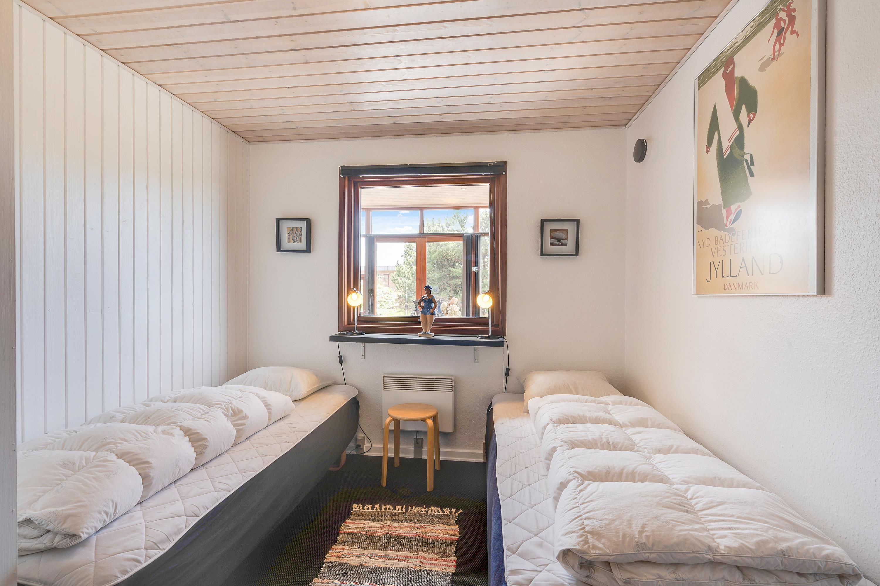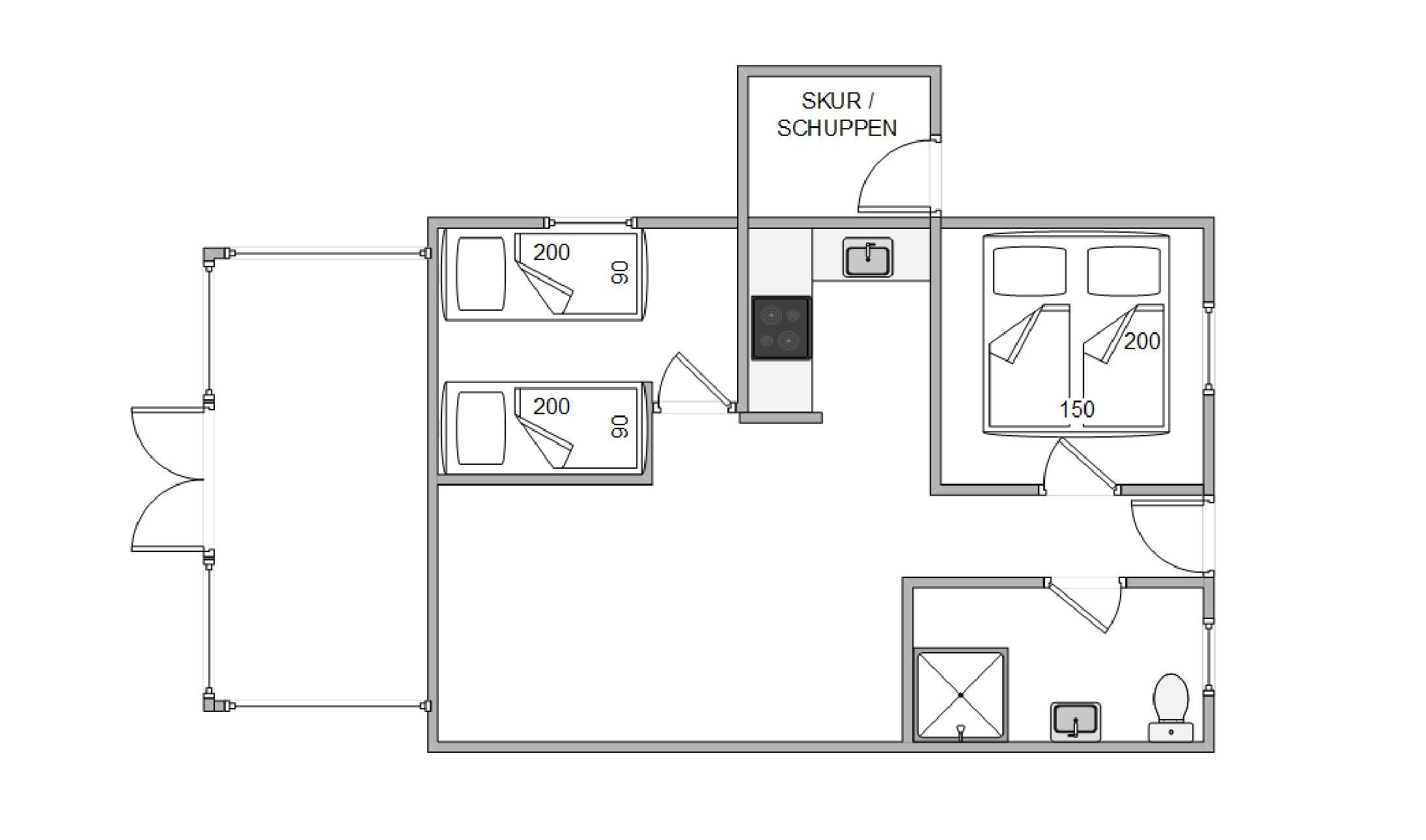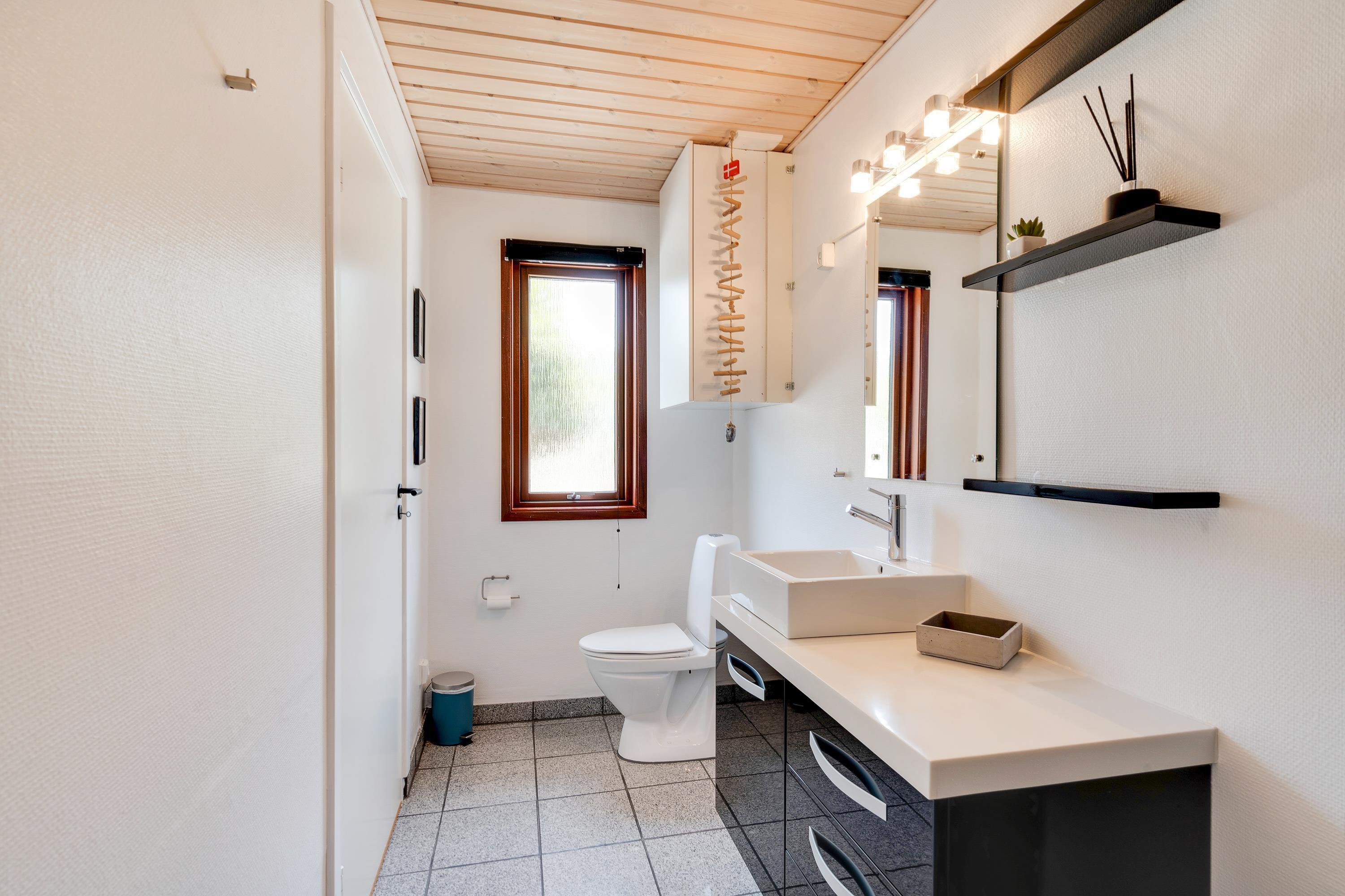 Sommerhuset er indrettet med to soveværelser – et med en dobbeltseng og et med to enkeltsenge – samt et badeværelse, hvor I især vil blive glade for gulvvarmen om morgenen. Sommerhuset er desuden udstyret med både vaskemaskine og tørretumbler, så I hurtigt kan få vasket badehåndklæderne og blive klar til næste strandtur.