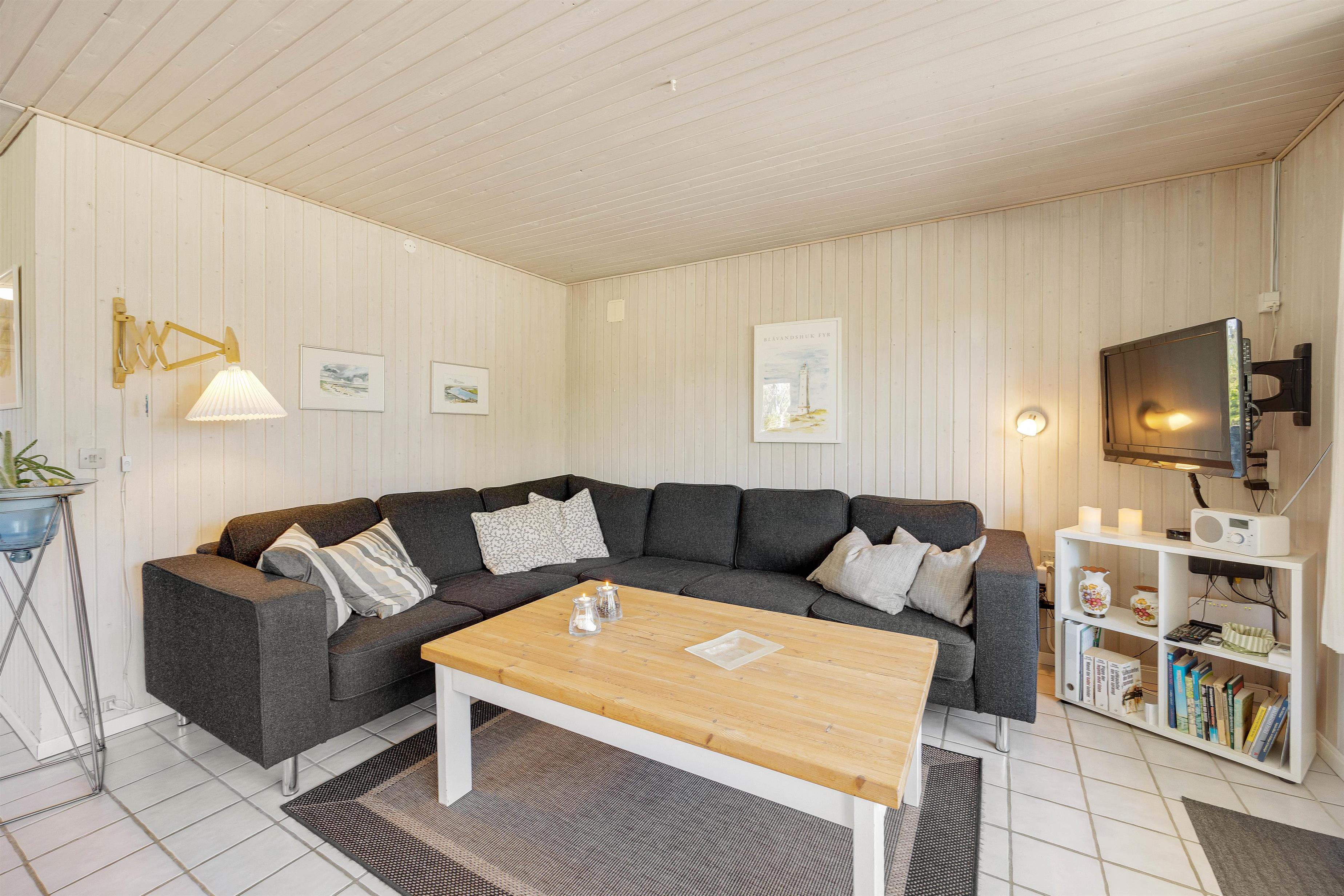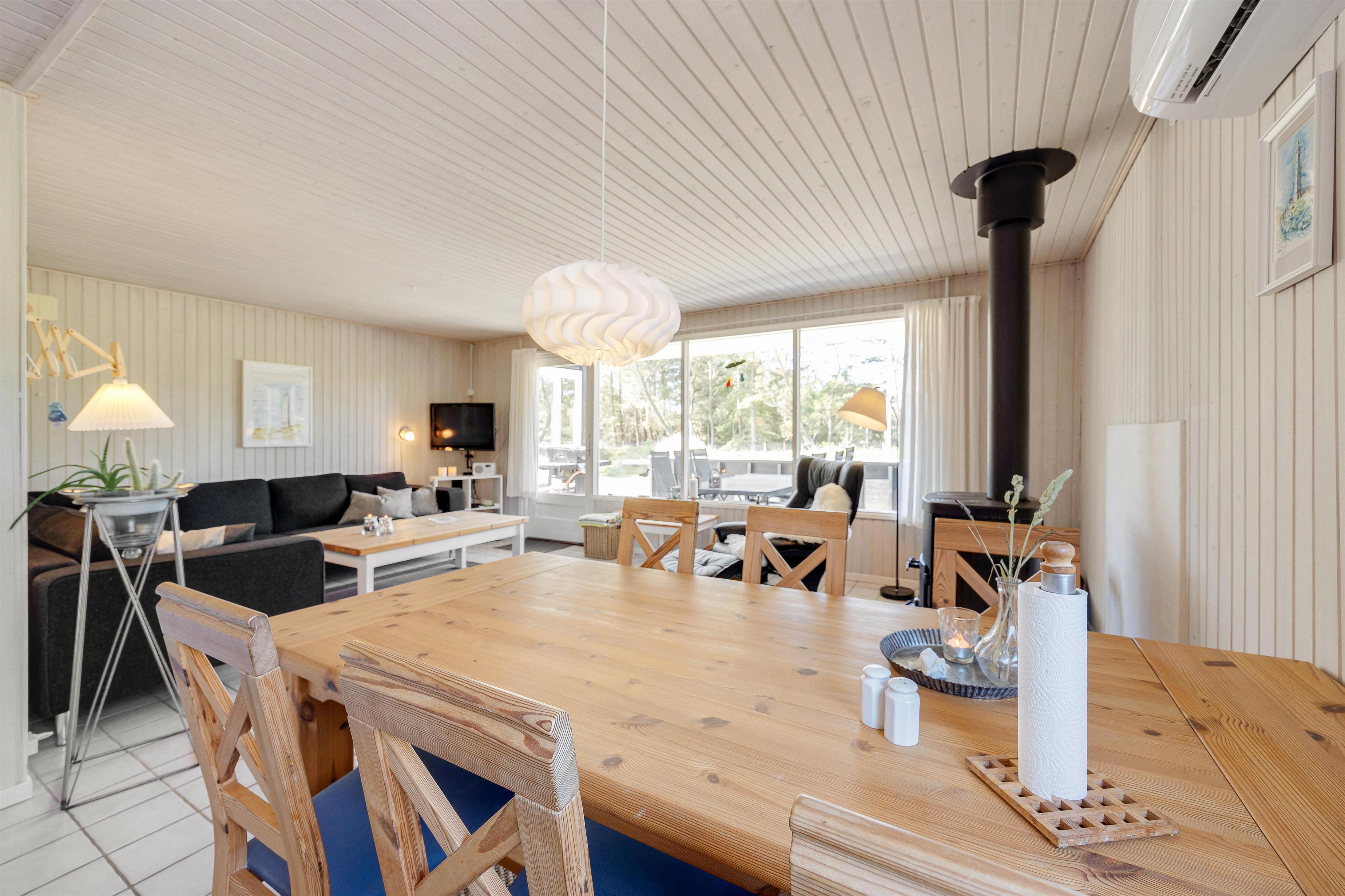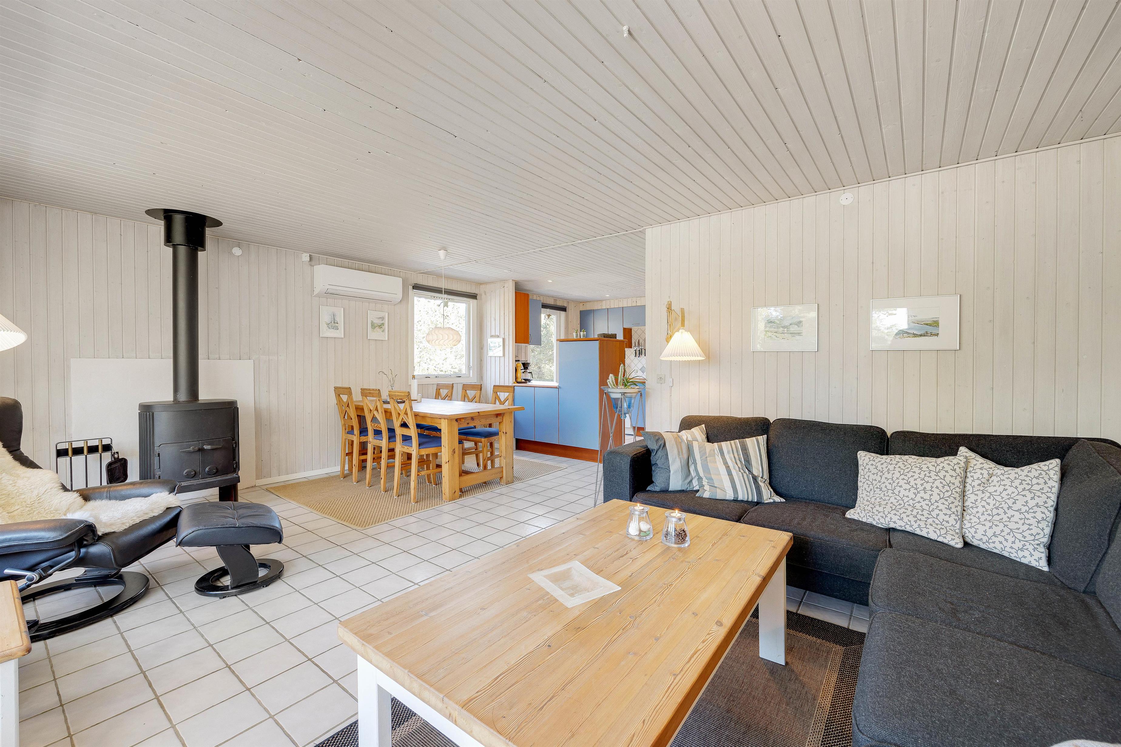 I sommerhusets alrum kan I samle hele ferieflokken til hyggelige feriestunder. Med åben forbindelse mellem køkken, stue og spiseplads kan I også nyde hinandens selskab, selvom nogle laver mad i køkkenet, og andre ser film i tv’et. Brændeovnen sørger for at fuldende feriestemningen med sine knitrende flammer i baggrunden.