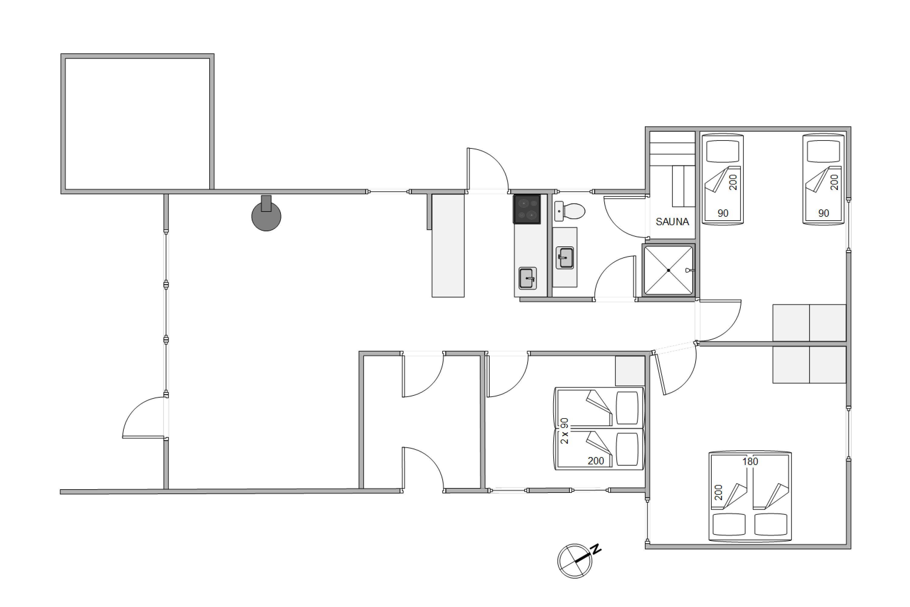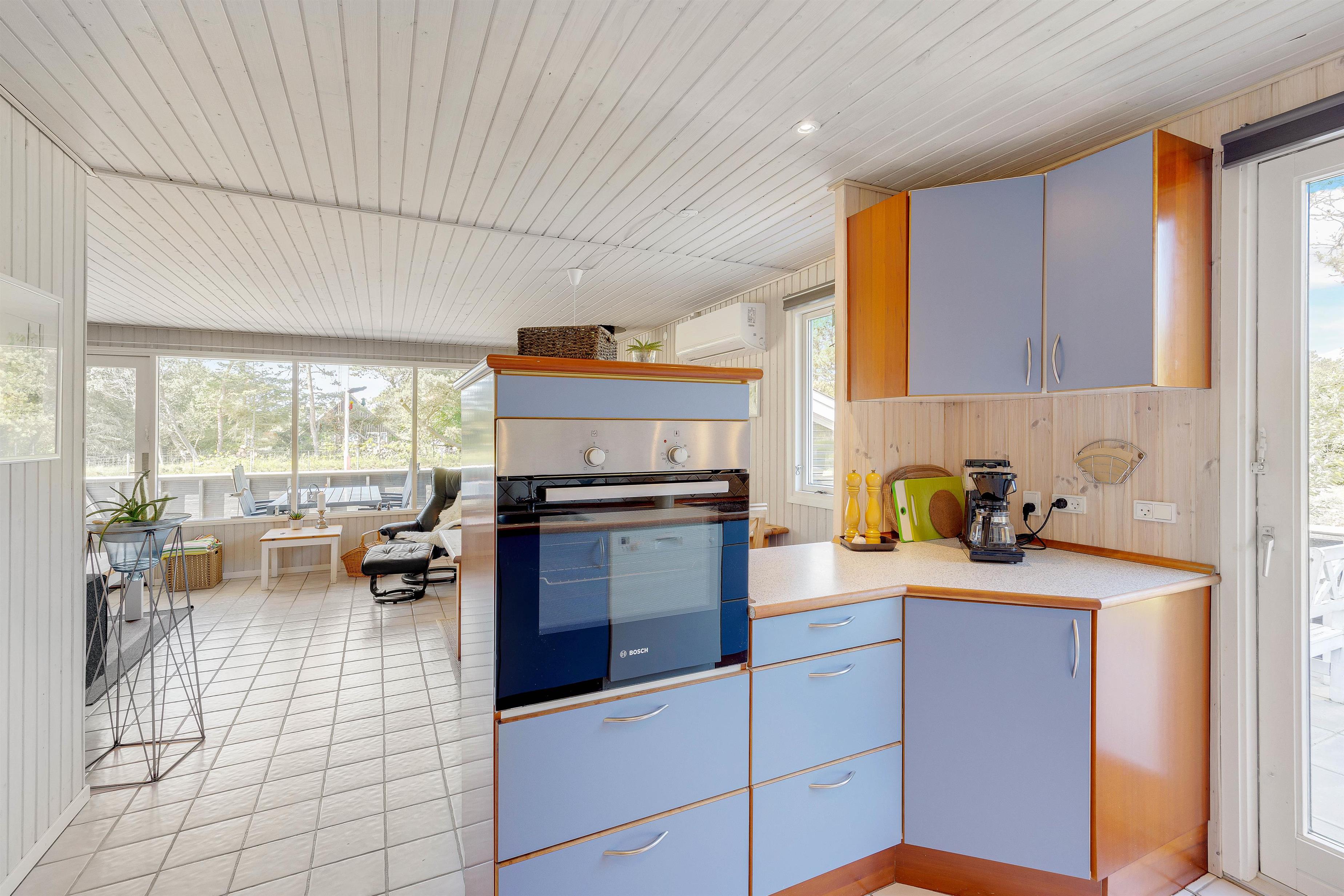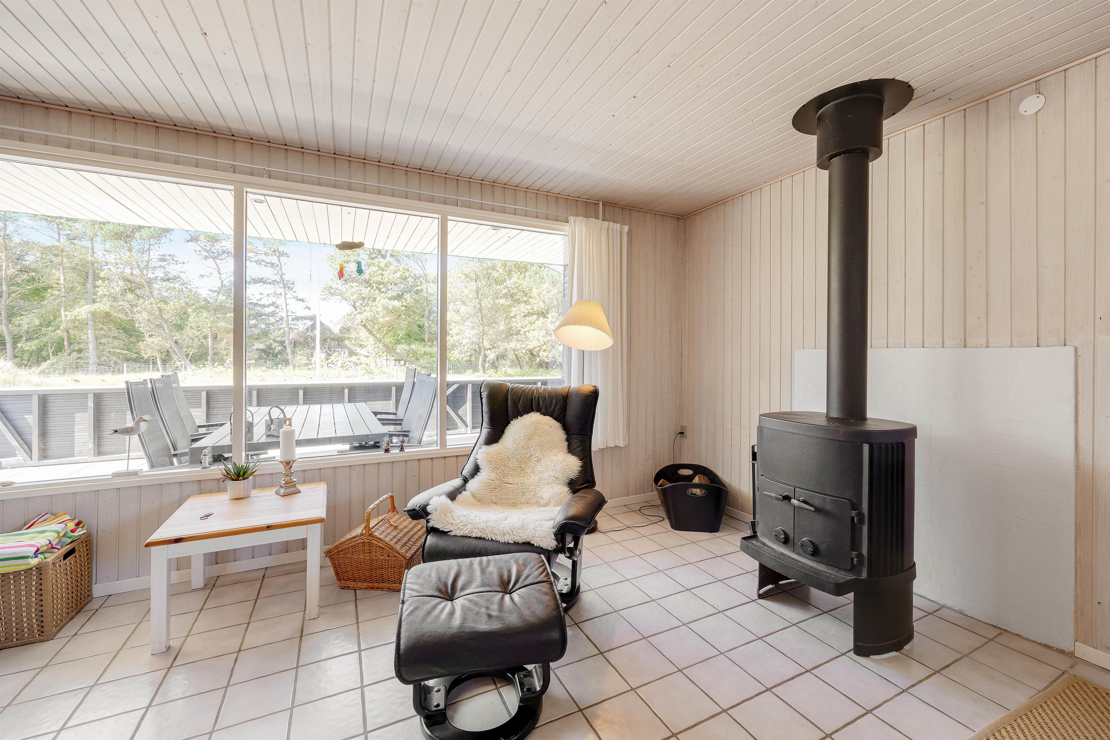 I sommerhusets alrum kan I samle hele ferieflokken til hyggelige feriestunder. Med åben forbindelse mellem køkken, stue og spiseplads kan I også nyde hinandens selskab, selvom nogle laver mad i køkkenet, og andre ser film i tv’et. Brændeovnen sørger for at fuldende feriestemningen med sine knitrende flammer i baggrunden.