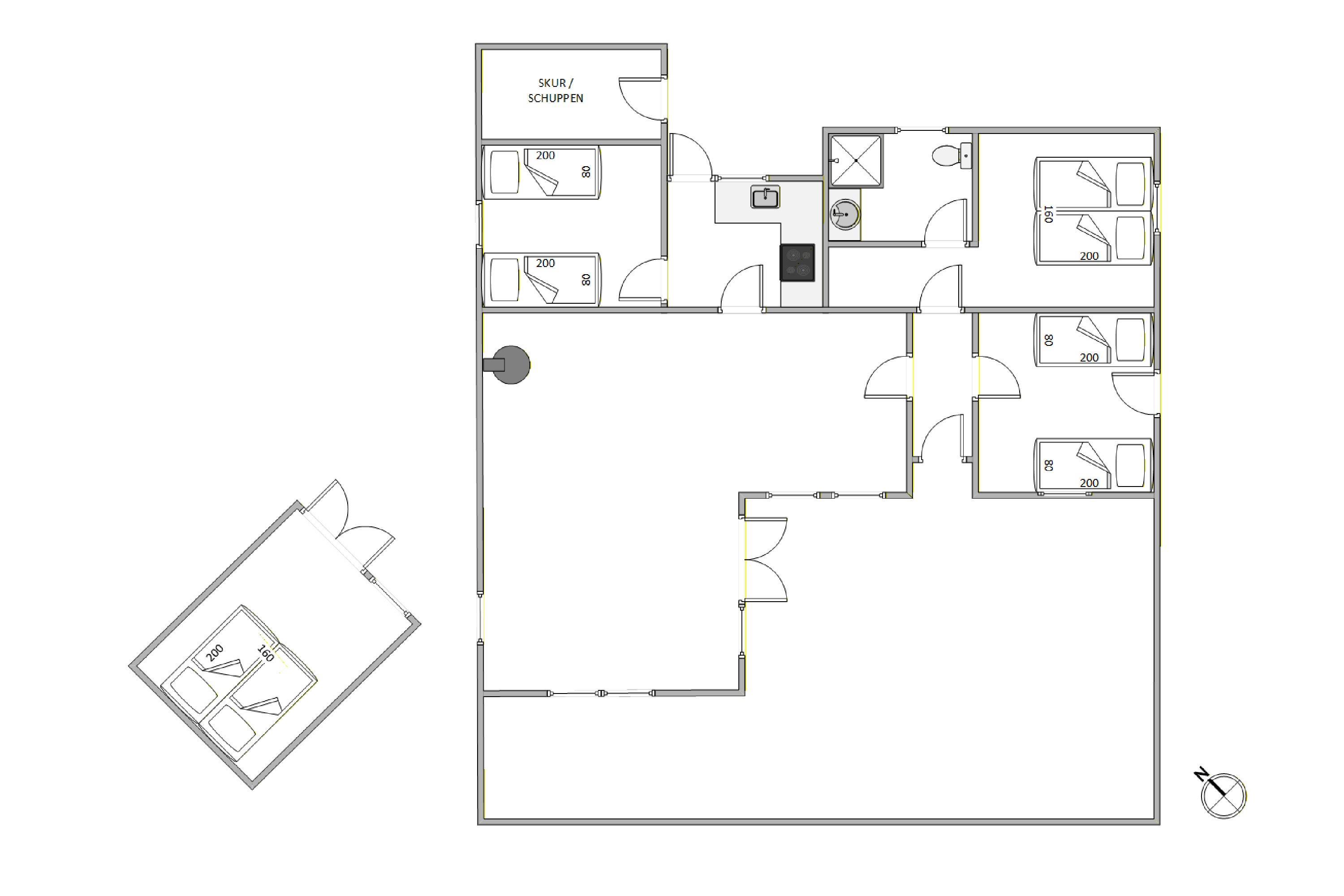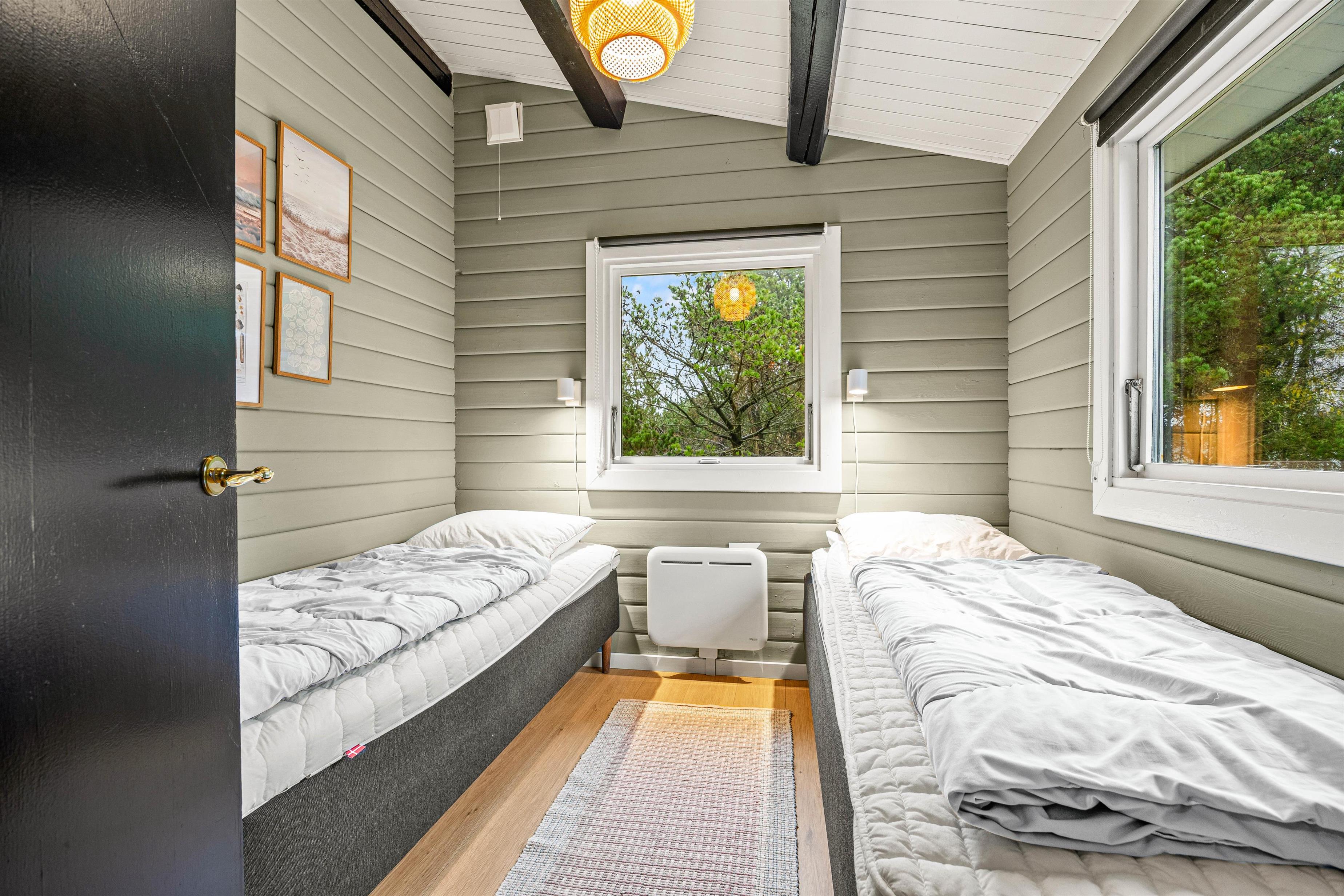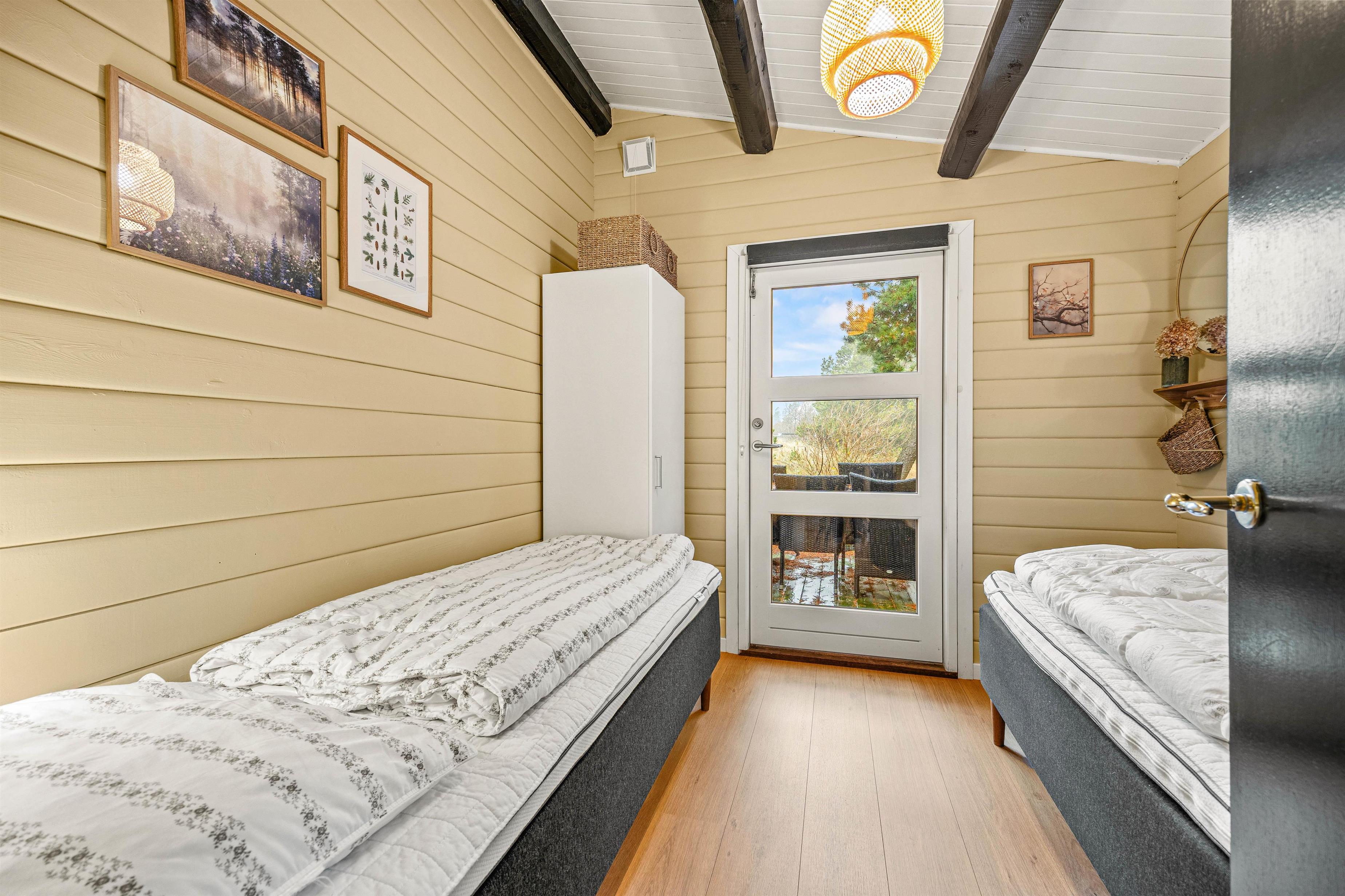 Sommerhuset har tre hyggeligt og enkelt indrettede soveværelser med en dobbeltseng samt fire enkeltsenge, hvor I kan finde ro og hvile efter spændende og aktive feriedage. Derudover finder I 2 ekstra sovepladser i det tilhørende anneks.
