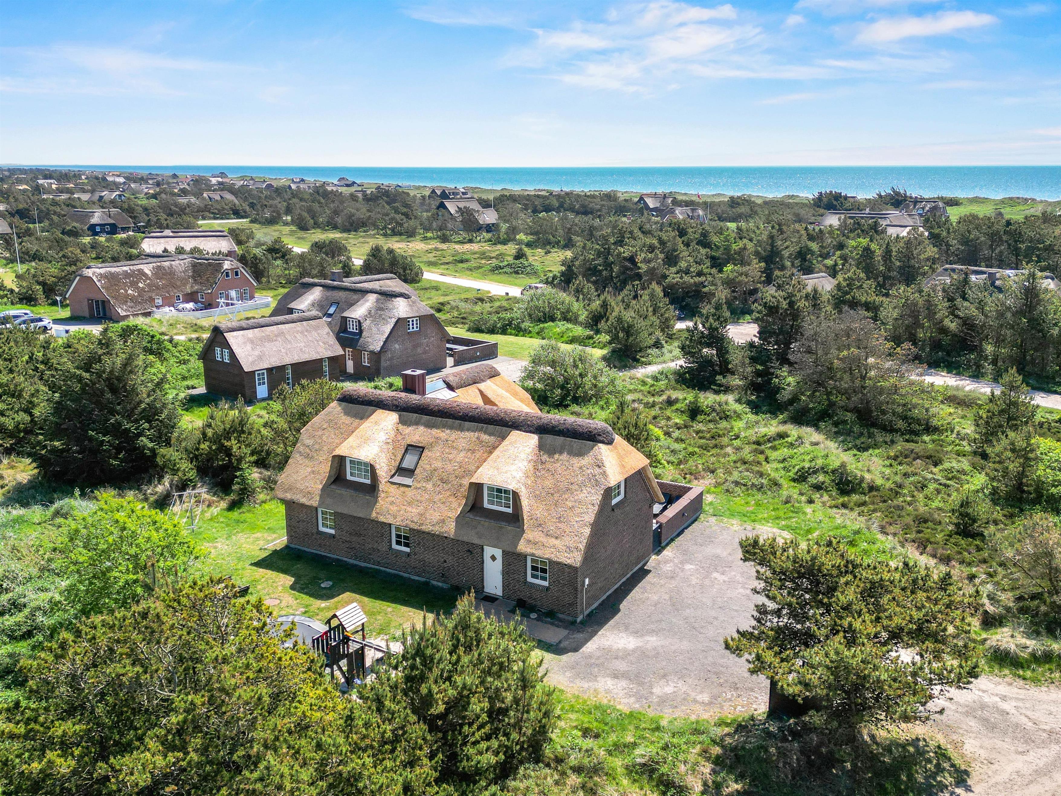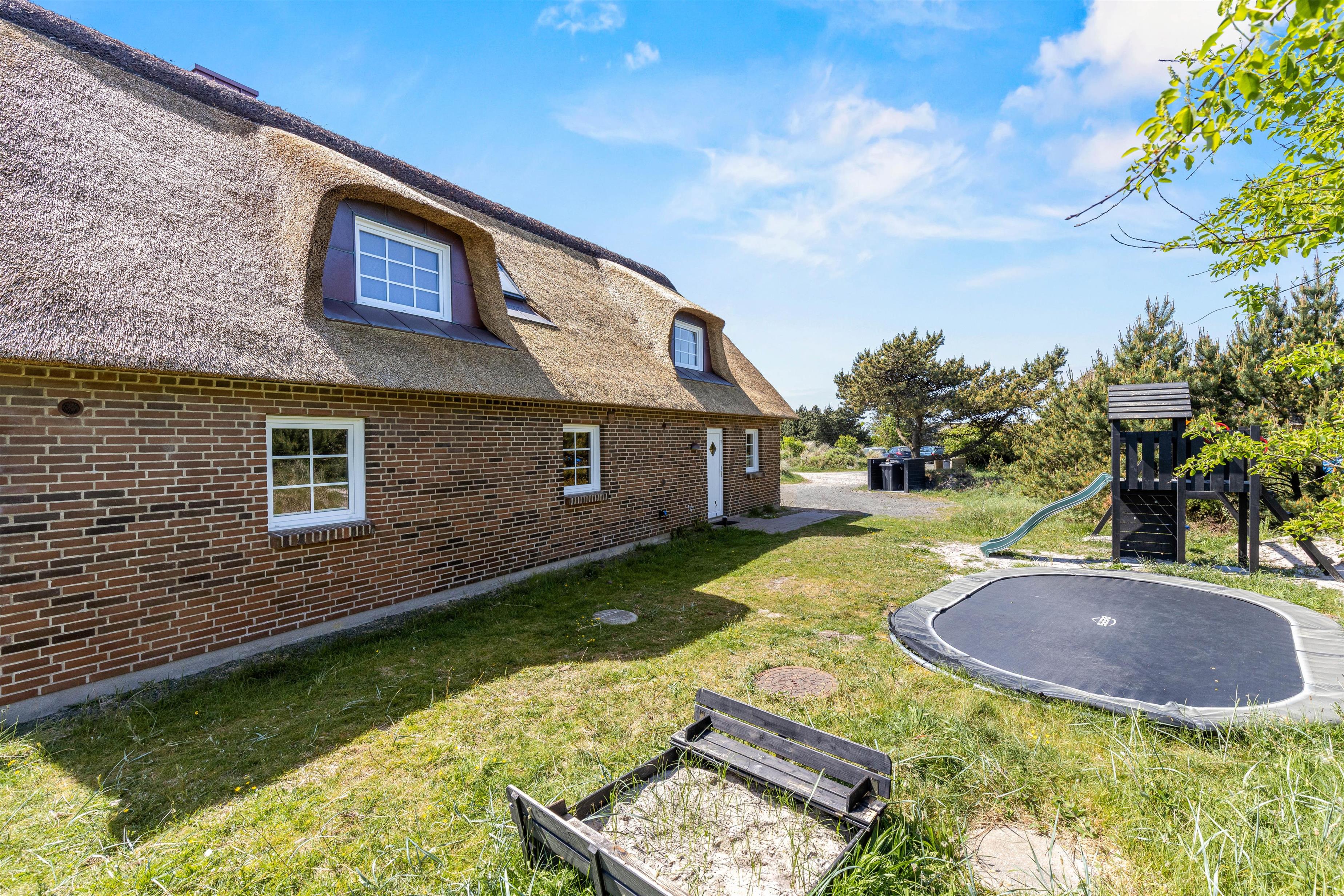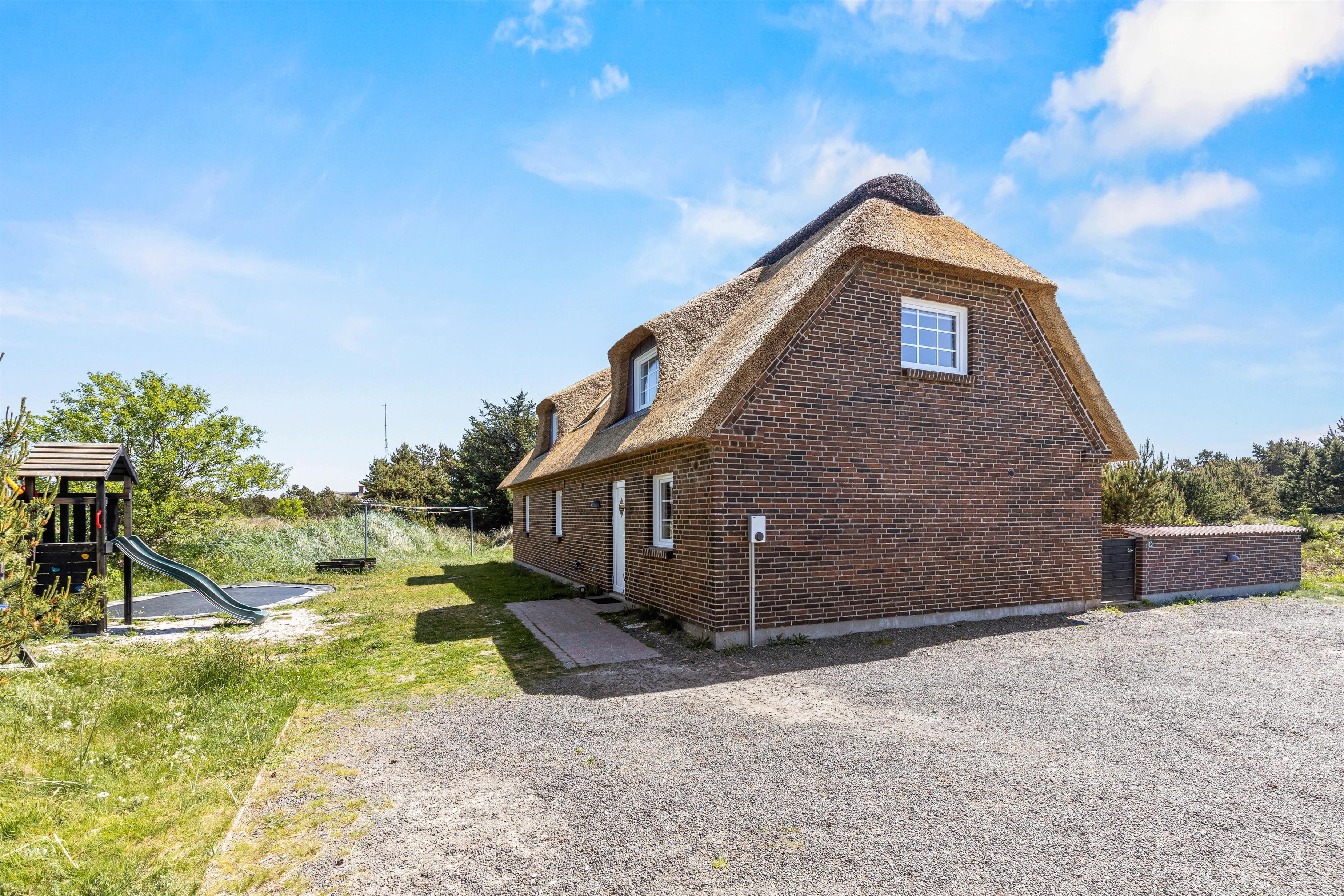 Stråtækt ferieidyl med pool og spa kun 300 meter fra stranden og masser af plads til op til 12 personer og 2 hunde venter på jer. Attraktivt hus for børnefamilier med trampolin, gyngestativ og sandkasse. Feriehuset på Horns Rev 10 i Blåvand har også ladestander til el-bil (husk ladekabel/adapter), så bilerne kan være køreklar hele tiden. Huset er renoveret i december 2023.