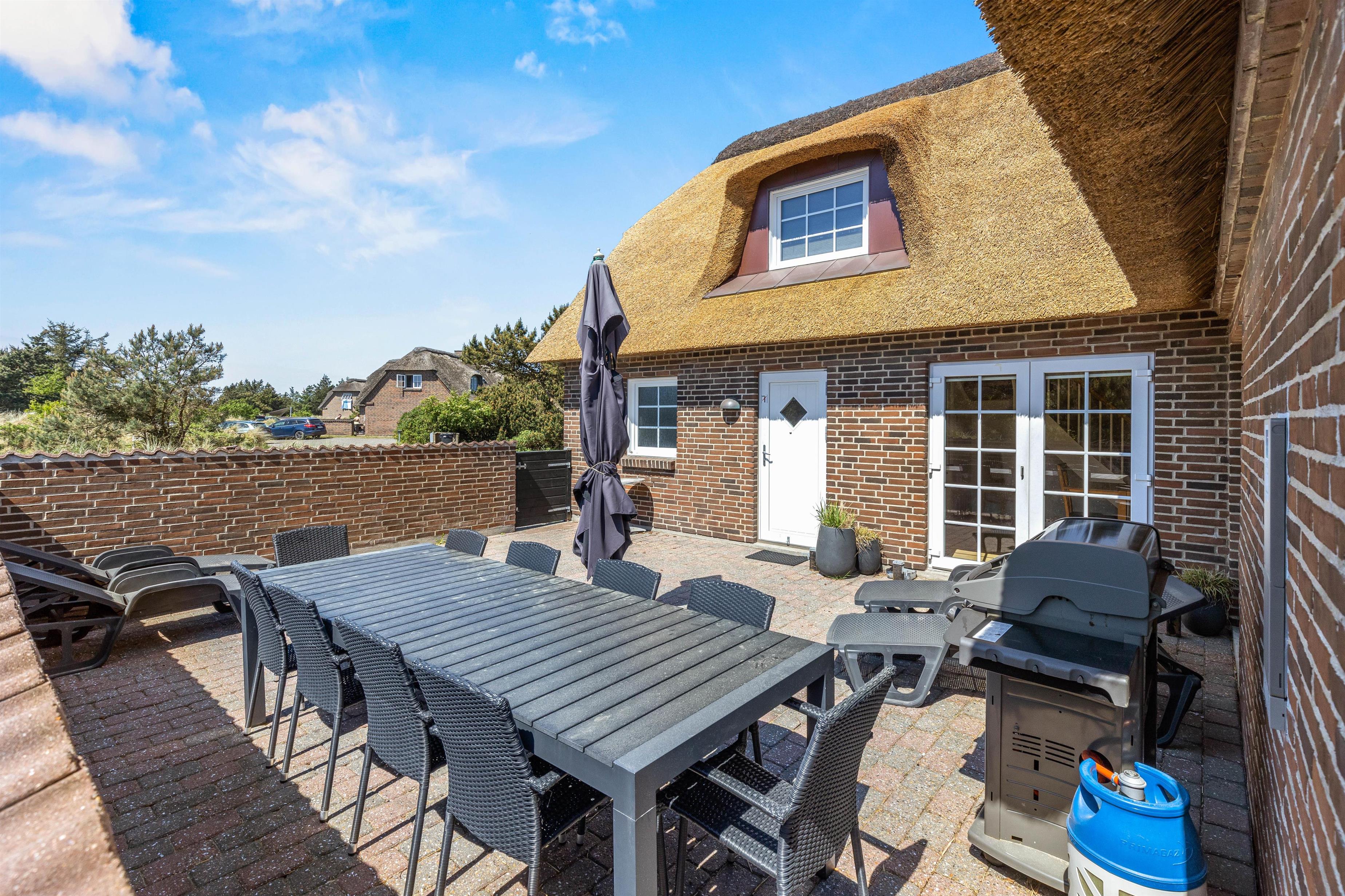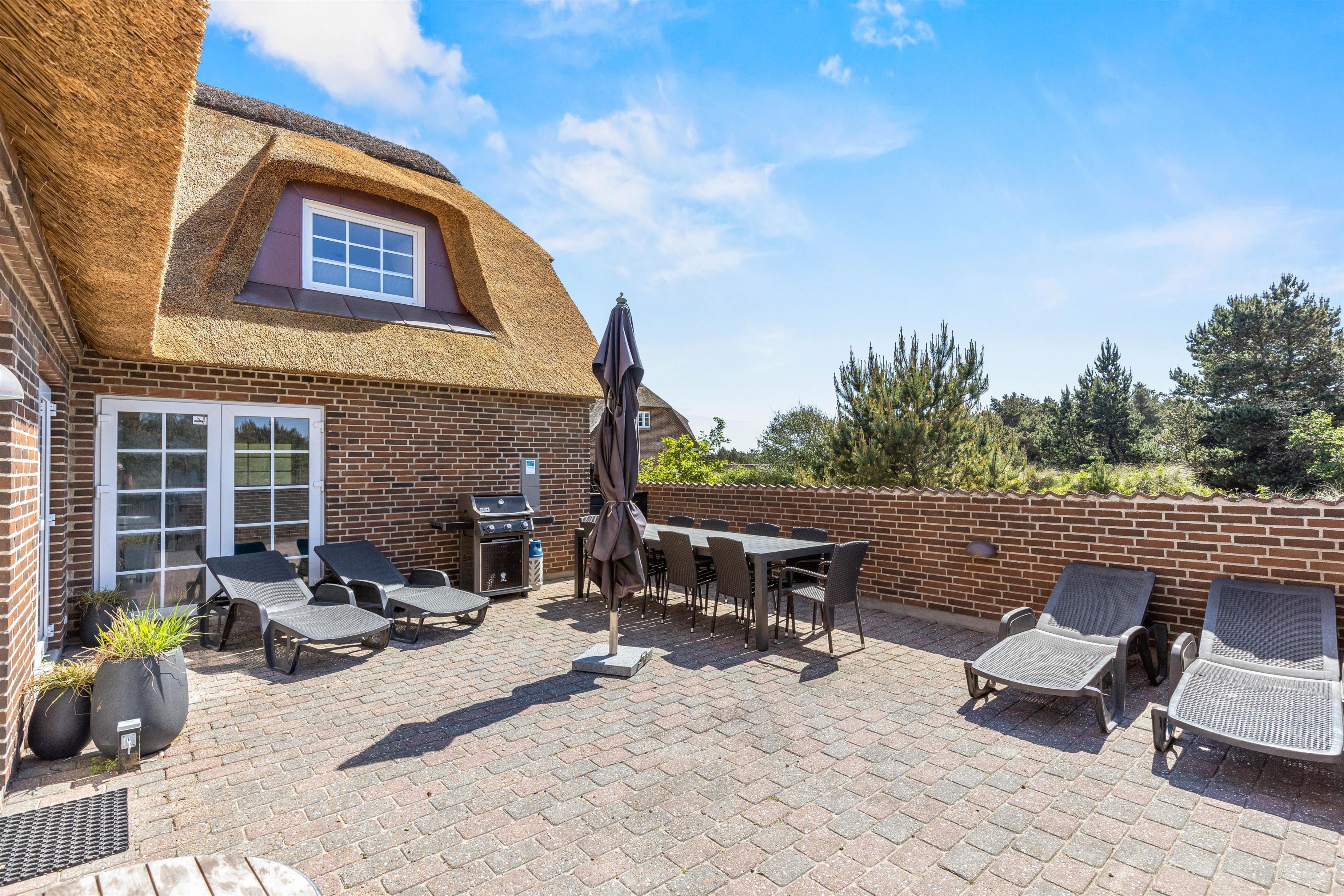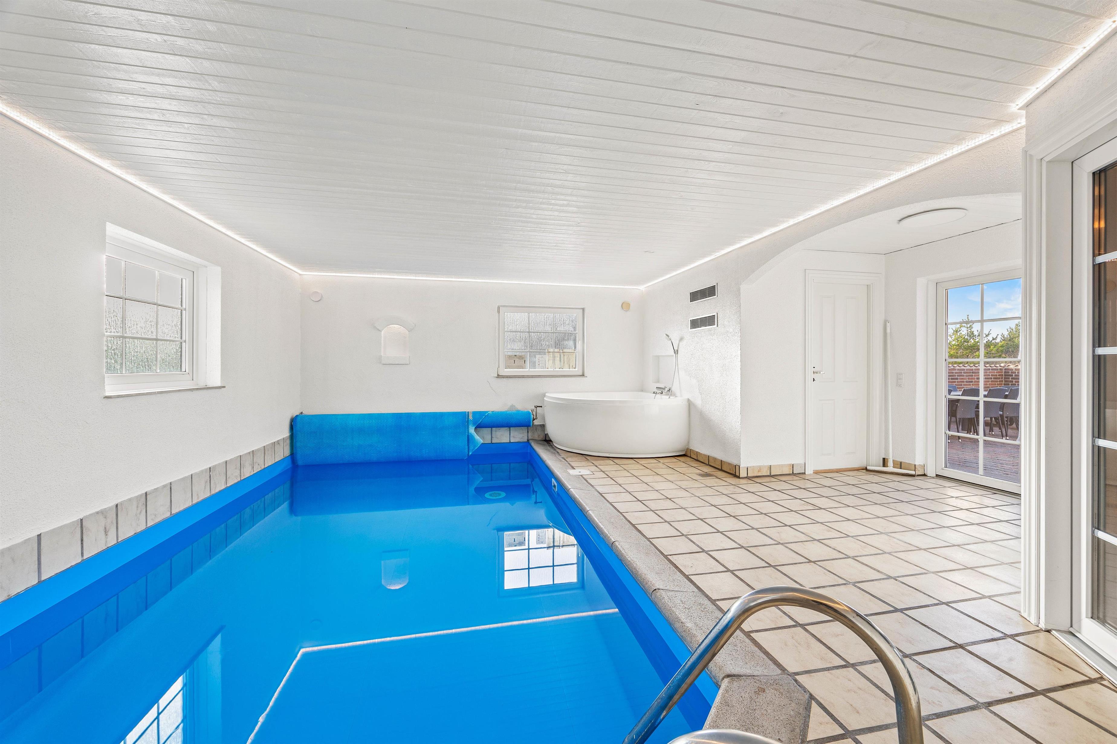 Stråtækt ferieidyl med pool og spa kun 300 meter fra stranden og masser af plads til op til 12 personer og 2 hunde venter på jer. Attraktivt hus for børnefamilier med trampolin, gyngestativ og sandkasse. Feriehuset på Horns Rev 10 i Blåvand har også ladestander til el-bil (husk ladekabel/adapter), så bilerne kan være køreklar hele tiden. Huset er renoveret i december 2023.