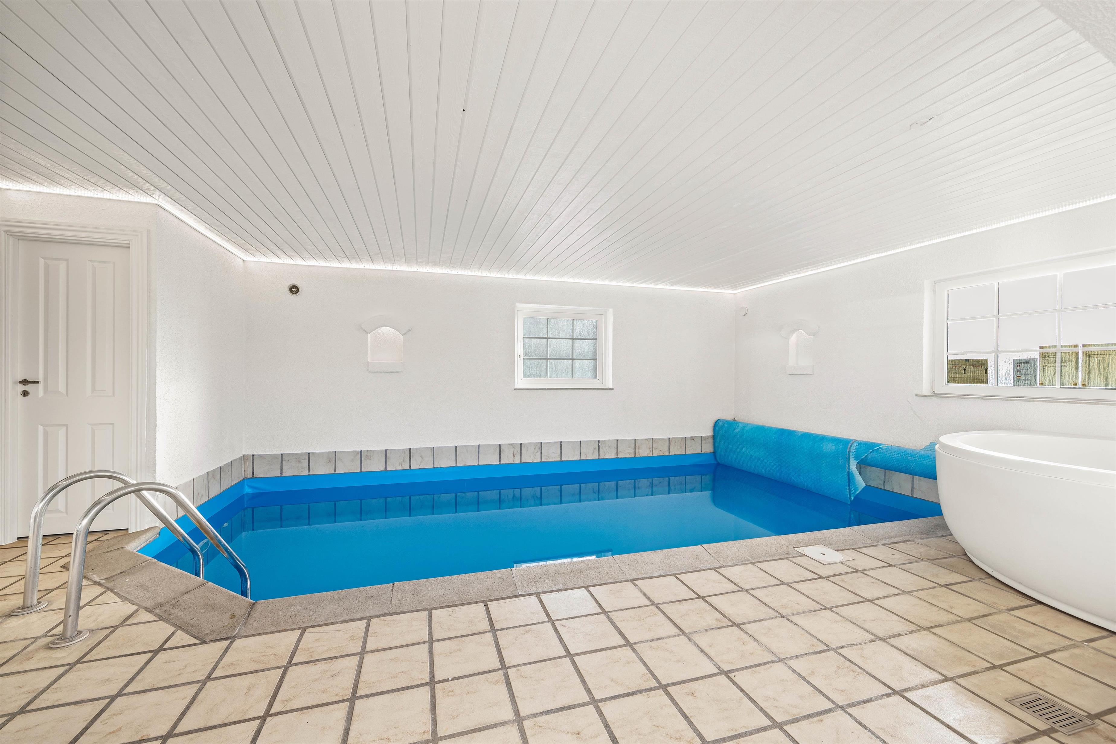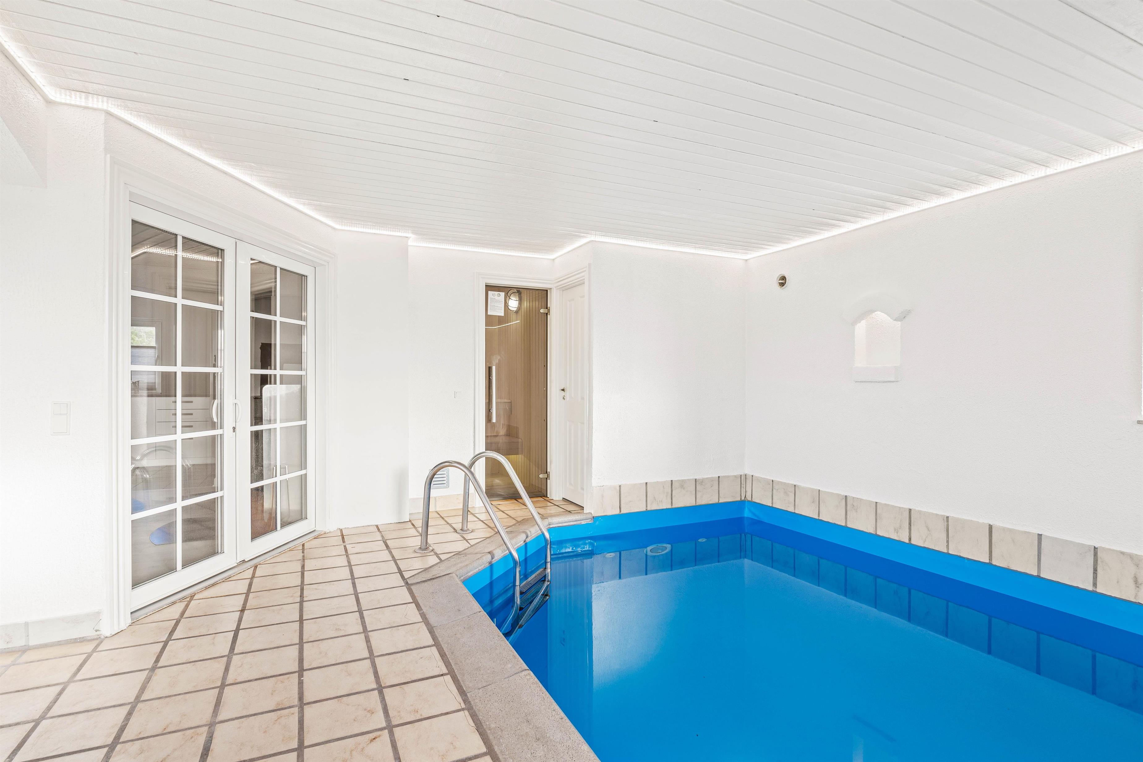 Den store velværeafdeling vil være det helt store hit for både store og små. Den ca. 15 m2 store pool har plads til leg og spil. Her kan børnene lege, mens de voksne slapper af i den dejlige 2-personers spa og bagefter kan alle jo tage en tur i saunaen.