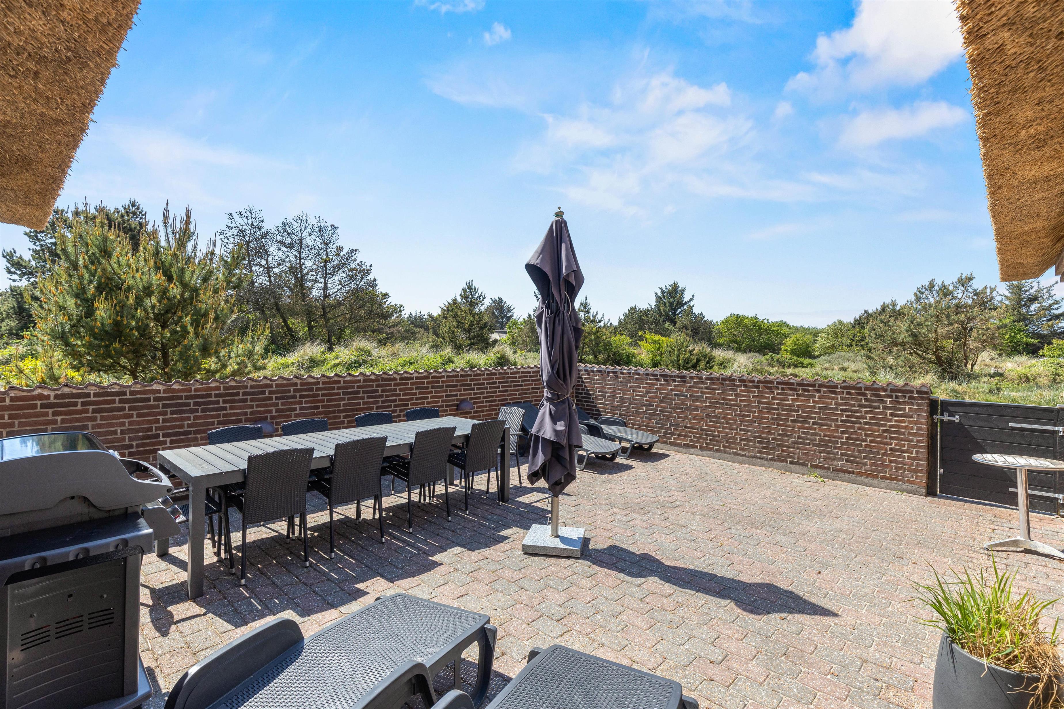 På den store terrasse, der er omkranset af en mur, er der plads til samling til dagens måltider, hvis vejret tillader det. Maden kan tilberedes på den store gasgrill og måske skylles ned med et godt glas vin, mens I nyder solnedgangen. Den 2501 m2 store grund er lagt ud som naturgrund, og den nedgravede trampolin, legestativet med gynger, rutsjebane og sandkasse kan brænde lidt af børnenes energi af. Husk i øvrigt ladekabel/adapter, hvis I ønsker at lade bilen op ved huset, da der er oplader til rådighed.