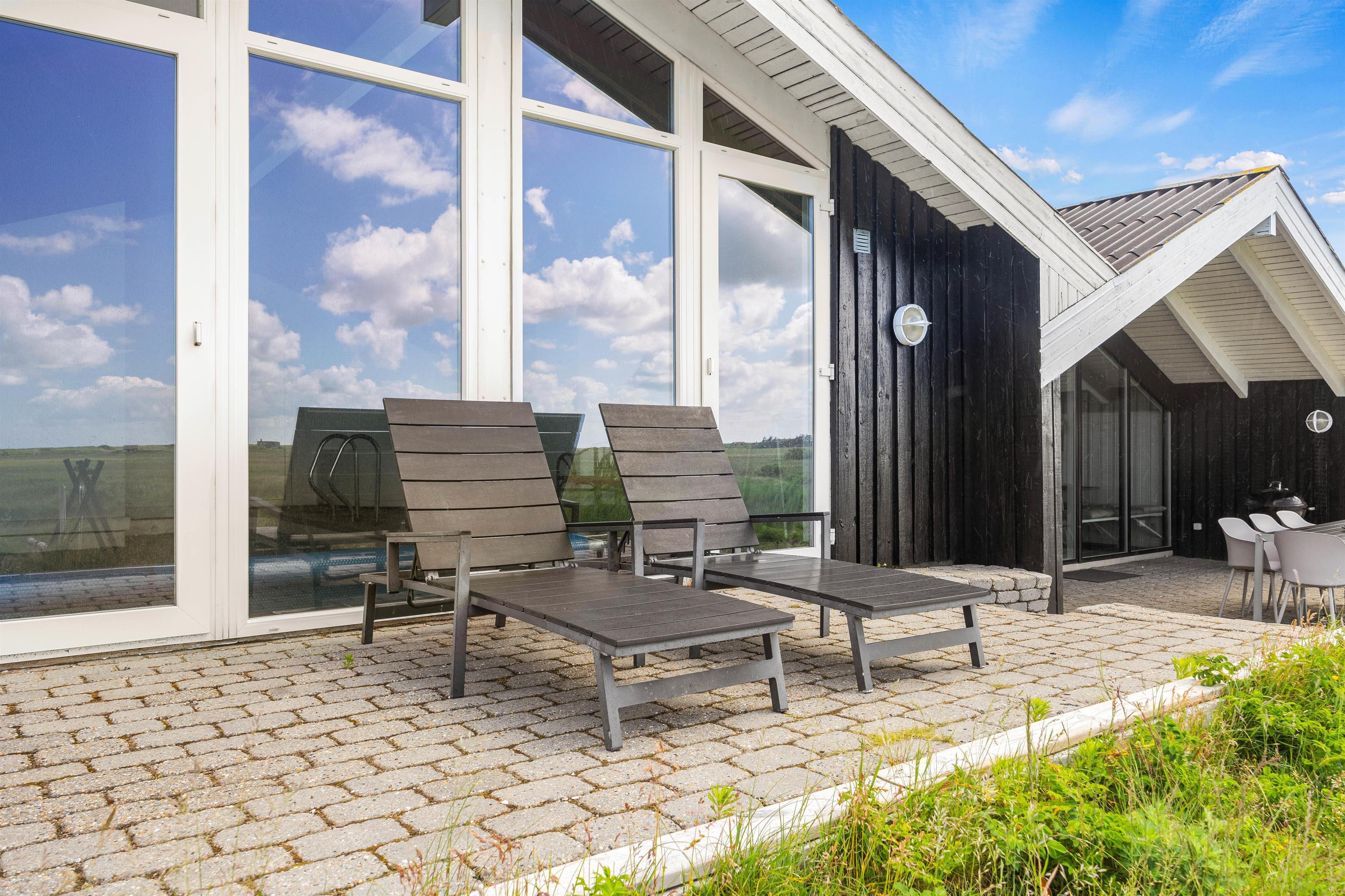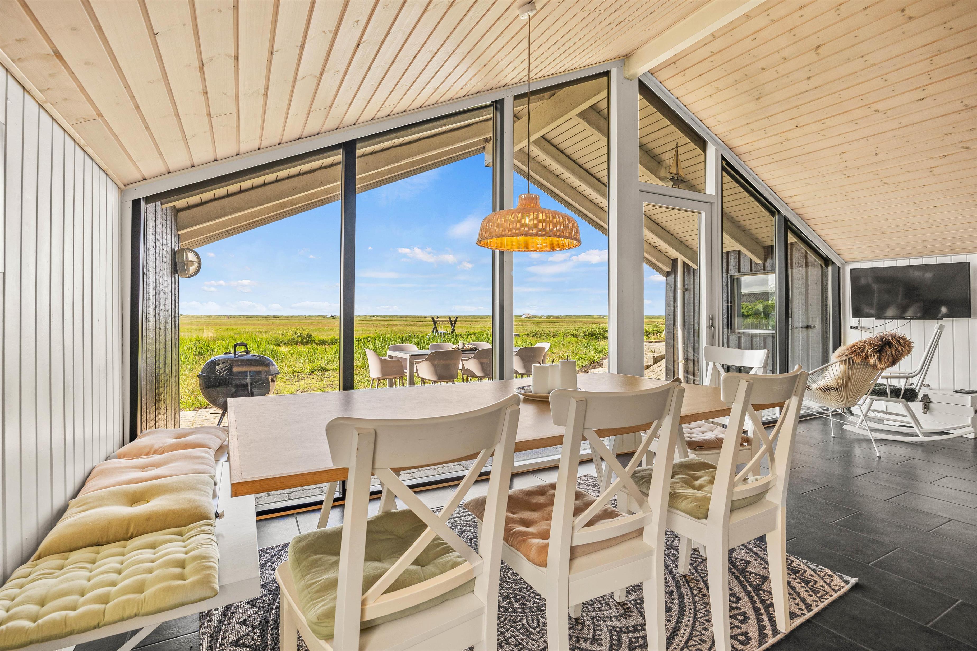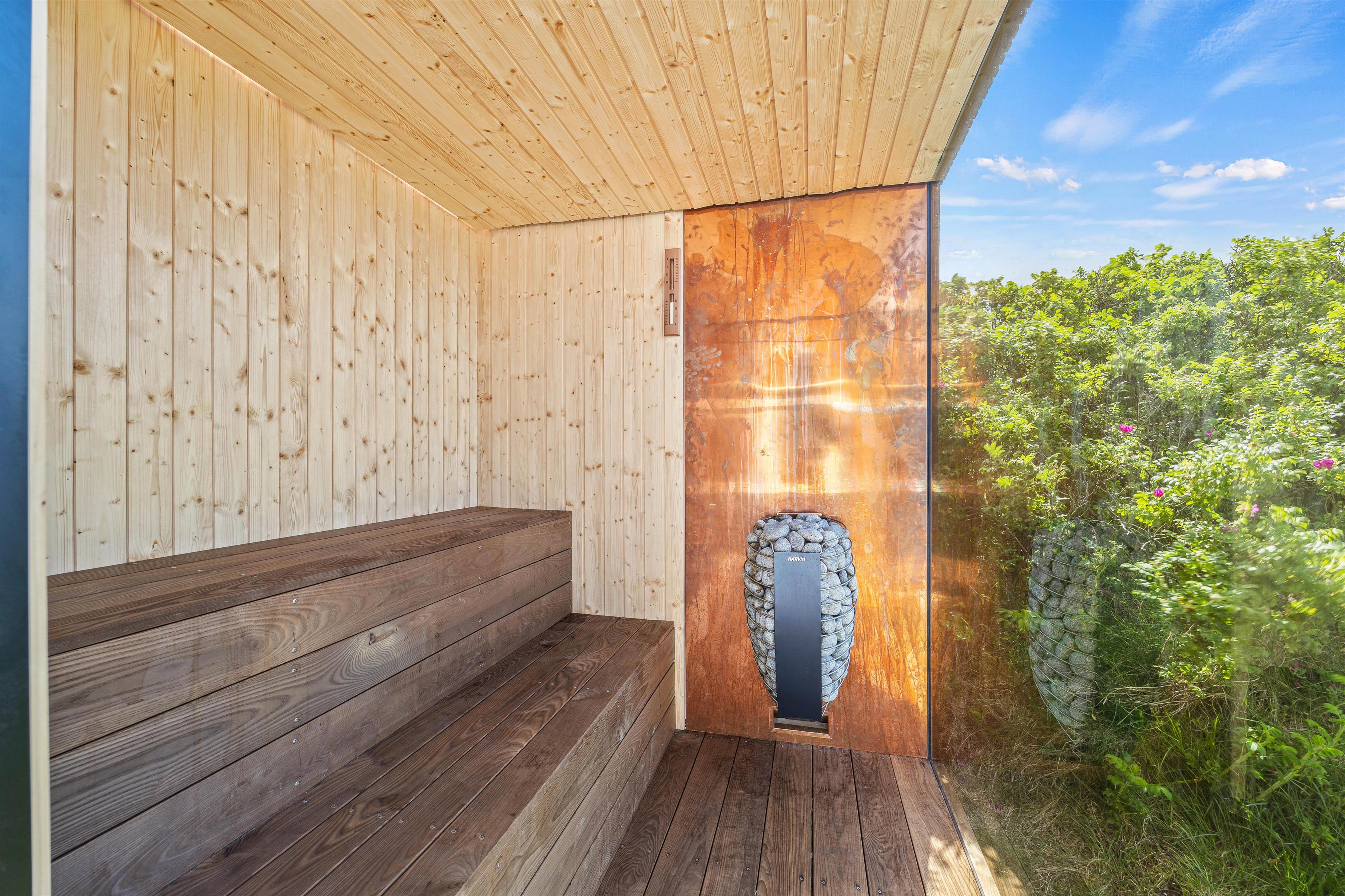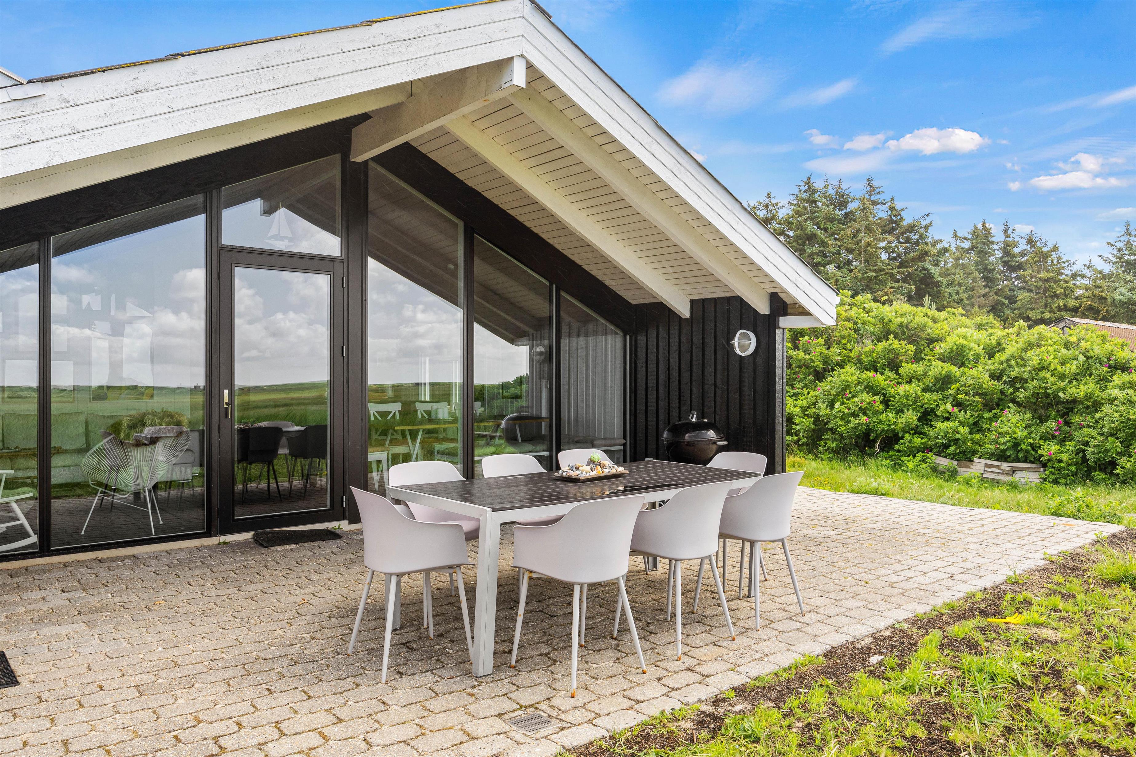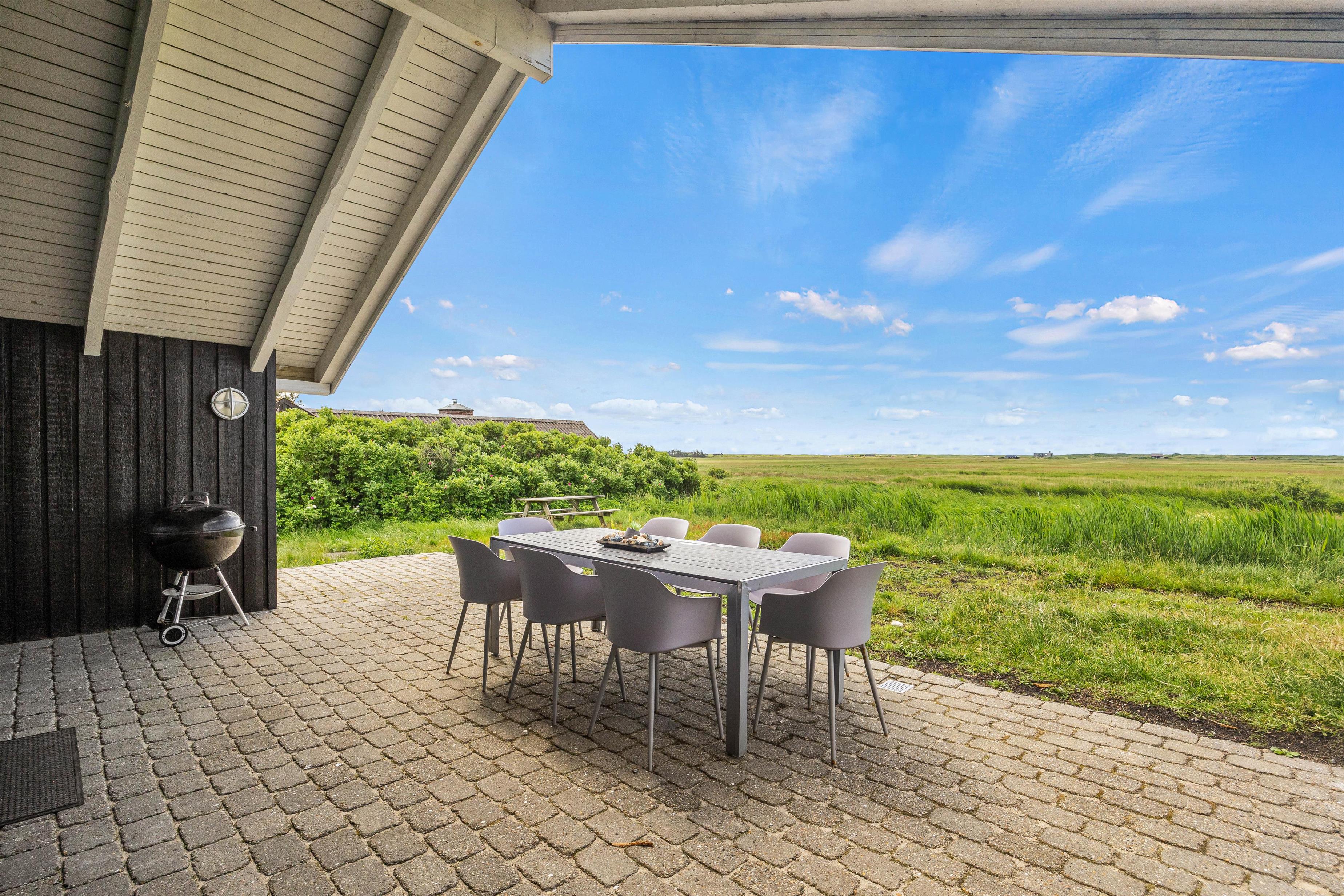 Når vejret er godt, kan I virkelig nyde jeres ferie i dette skønne udendørsområde. Børnene glider direkte ned i sandkassen, hvor en gammel sejlbåd er sat op til sjove piratlege. I har alt i udsigt fra terrassen, der indbyder til at sætte fødderne op, nyde solen og slappe af. Selvfølgelig må man ikke gå glip af en grillaften på en varm sommeraften, hvor I kan nyde et godt glas vin og solnedgangens farvespil over Vesterhavet.