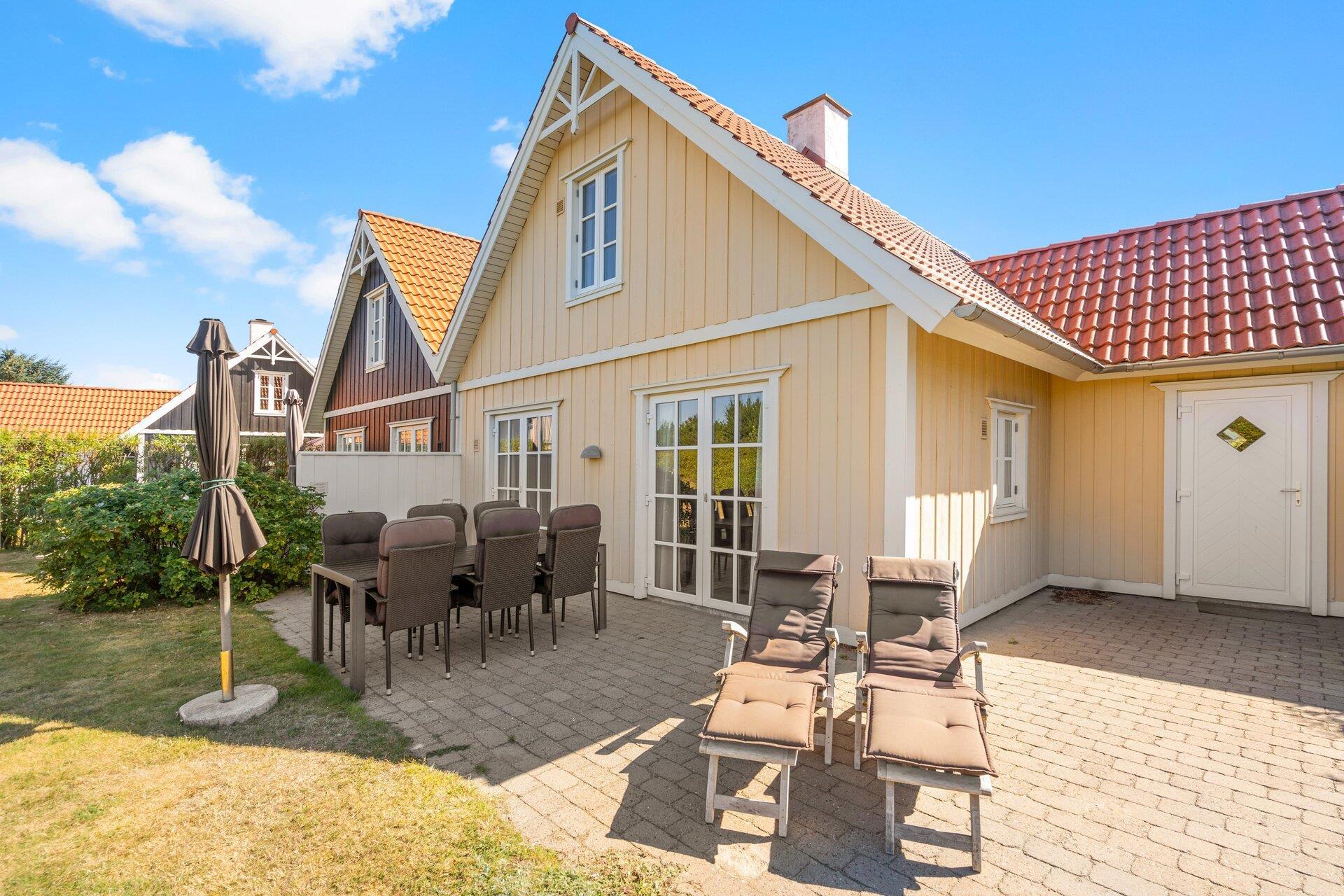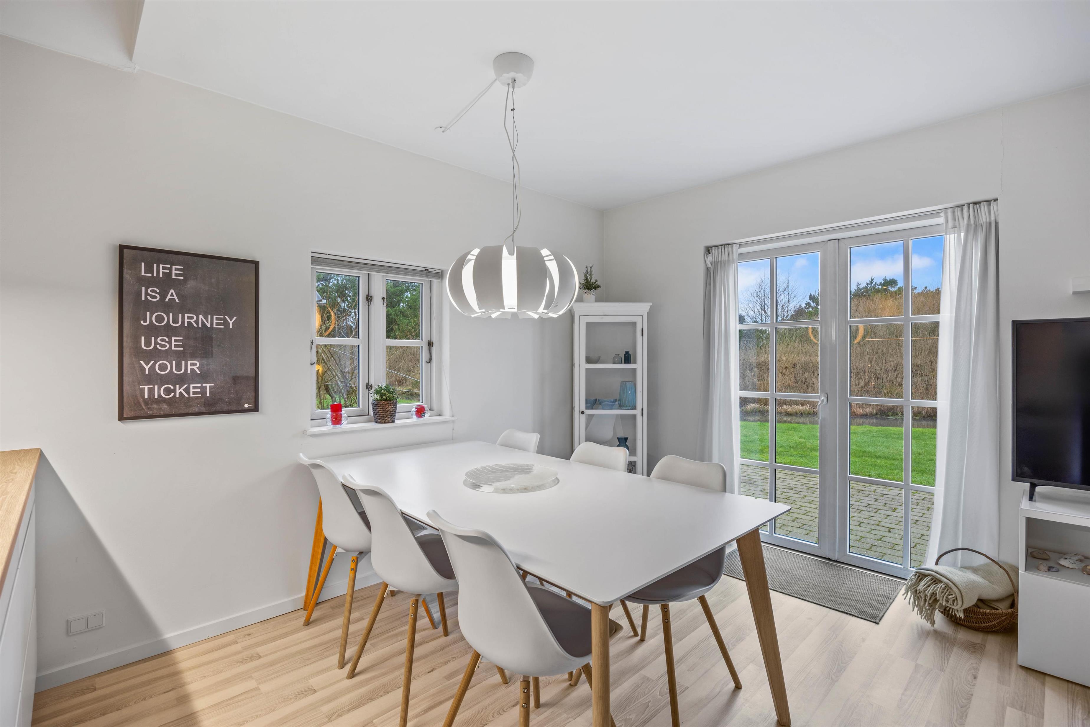 Fra stuen er der direkte udgang til den åbne terrasse, hvor I kan slikke sol, spise dejlig mad fra grillen over en kold øl eller et glas frisk hvidvin og generelt nyde livet i havemøblerne.