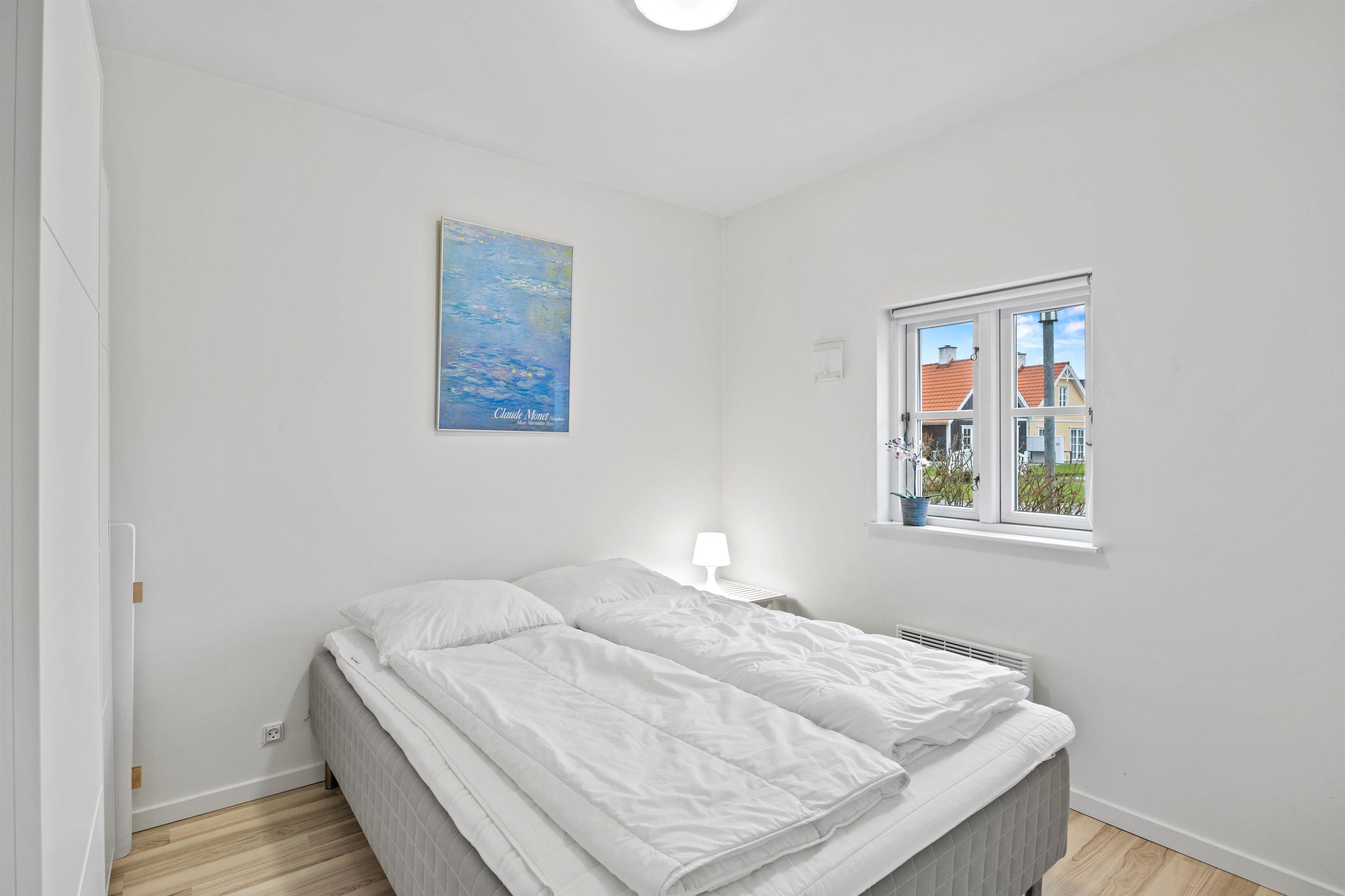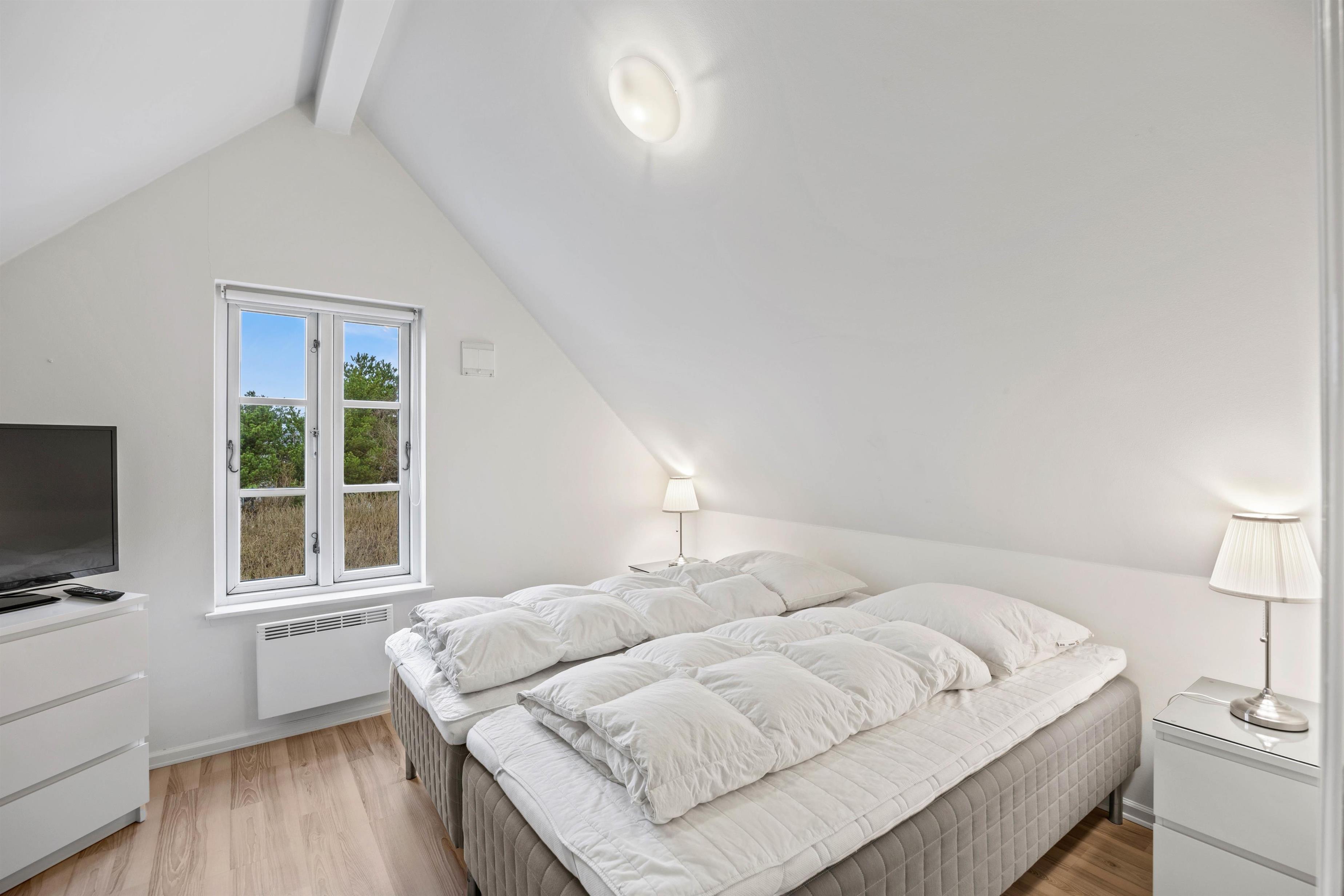 Ved dagens afslutning kan I finde ro og hvile i dobbeltsengene i de 3 enkelt, men smagfuldt indrettede soverum, hvoraf 2 ligger på 1. sal, som også rummer et fint gæstetoilet. Næste dag sørger gulvvarmen på badeværelserne for, at I ikke fryser om fødderne, når I skal friskes op til nye ferieoplevelser. Nyd på det store badeværelse også den gode plads i den ekstra store bruseniche og, måske efter en lang, god gåtur på den nærliggende strand, at blive varmet godt igennem i husets sauna.