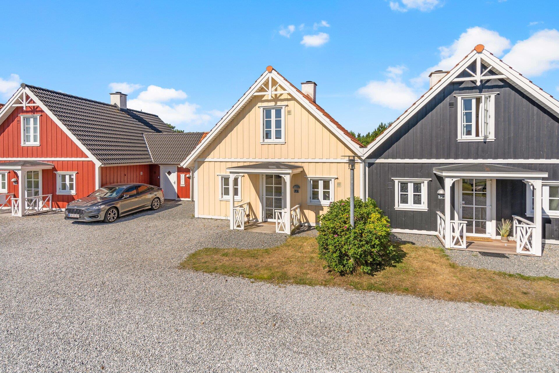 På en central, men rolig, adresse i livlige Blåvand finder I det hyggelige og smagfuldt indrettede sommerhus Horns Bjerge 3, 67, hvor en venneflok eller familie på 6 personer kan holde ferie og få ladet batterierne op. Husene her er bygget efter svensk inspiration og malet i forskellige, men efter hinanden nøje afstemte, flotte farver, og udenfor langs bebyggelsen slynger sig en lille bæk.
