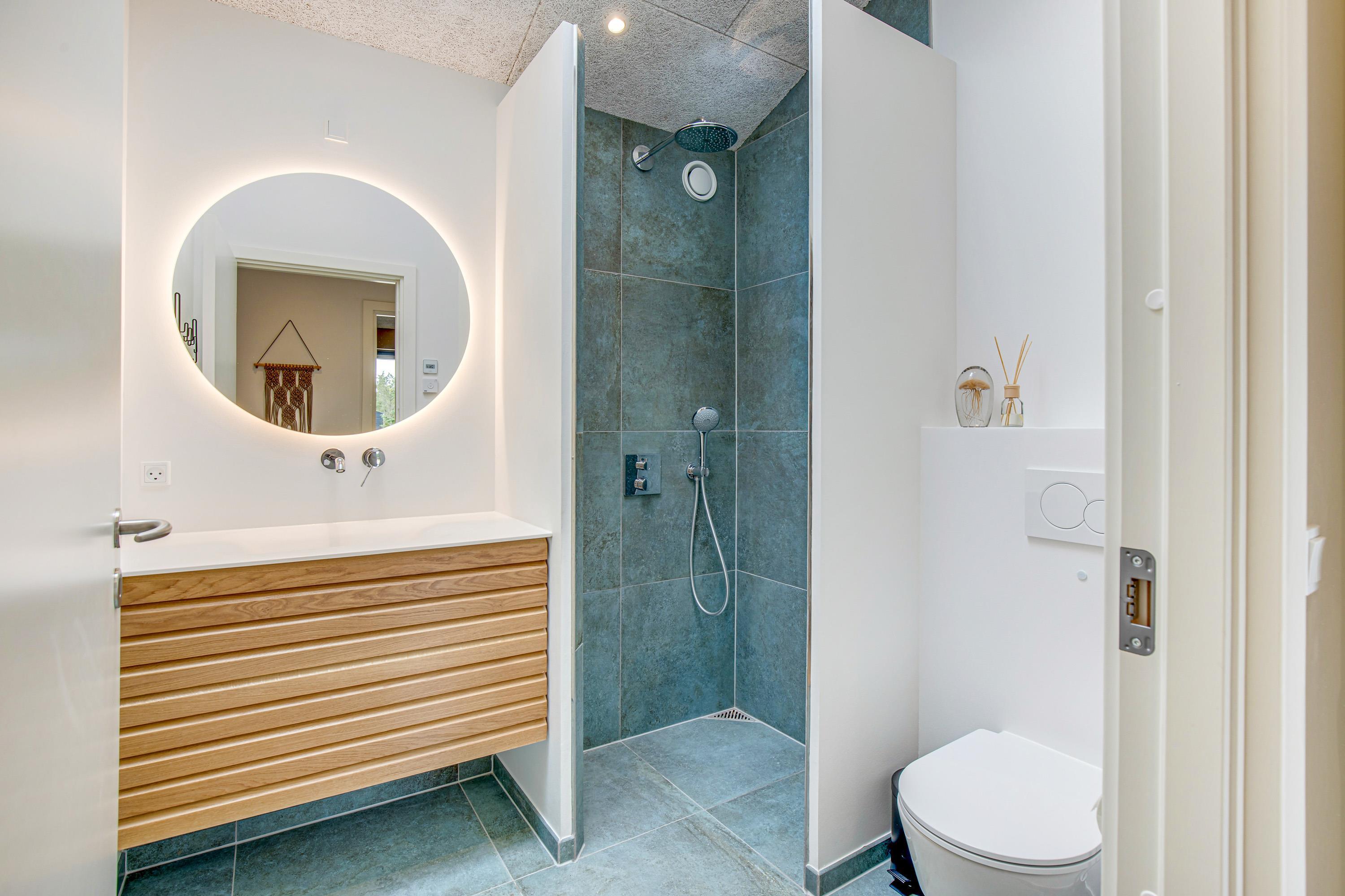 De praktiske faciliteter er selvfølgelig også tænkt ind, hvilket kun gør ferien endnu mere komfortabel. Både opholdsrummet og aktivitetshusets 2 badeværelser er udstyret med gulvvarme, og hverdagens hjælpere i form af opvaskemaskine og vaskemaskine er også at finde i feriehuset. Særligt nævnelsesværdige er vinkøleren og vandpejsen - en hybridpejs der skaber en fascinerende flammeeffekt, men ikke afgiver varme. Den kræver altså ingen brændsel, blot et tryk på fjernbetjeningen, og hyggen breder sig.