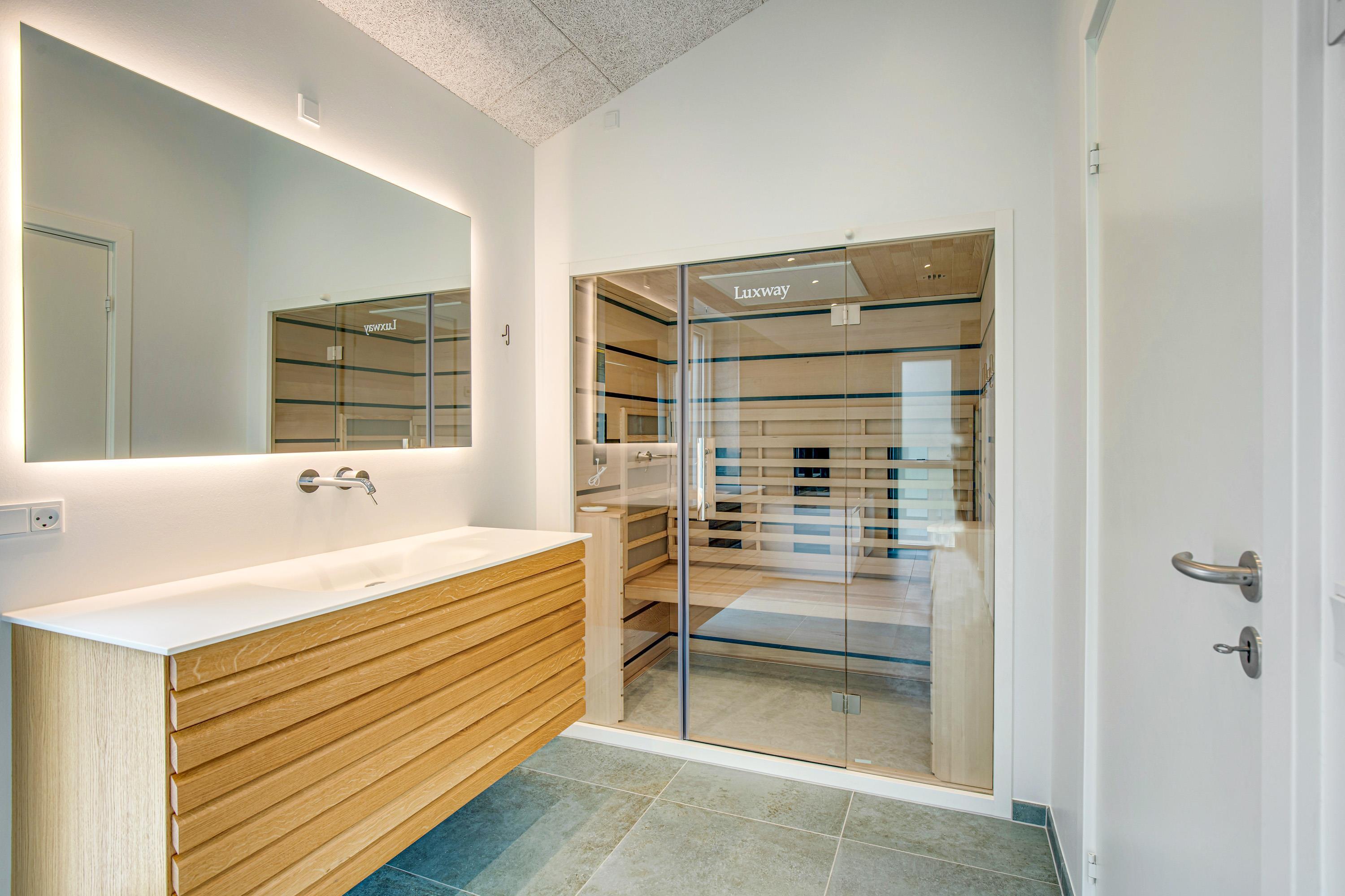 Der er flere muligheder for de wellness-glade gæster. I kan for eksempel søge ud på terrassen, hvor en lækker udendørs spa står klar til at tage sig kærligt af jer – eller I kan nyde et velfortjent afbræk på det store wellnessbadeværelse, der både er indrettet med spabad og infrarød sauna.