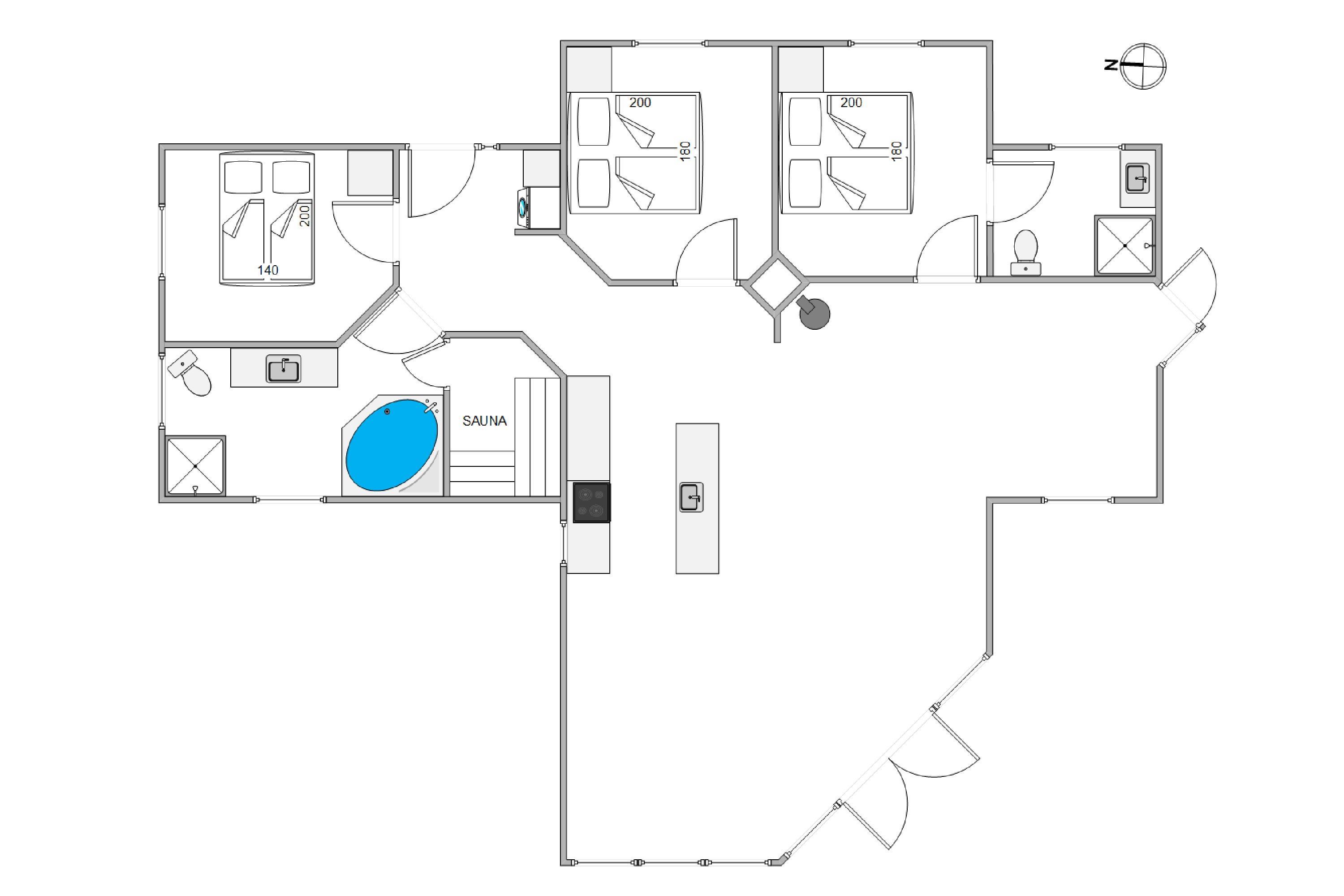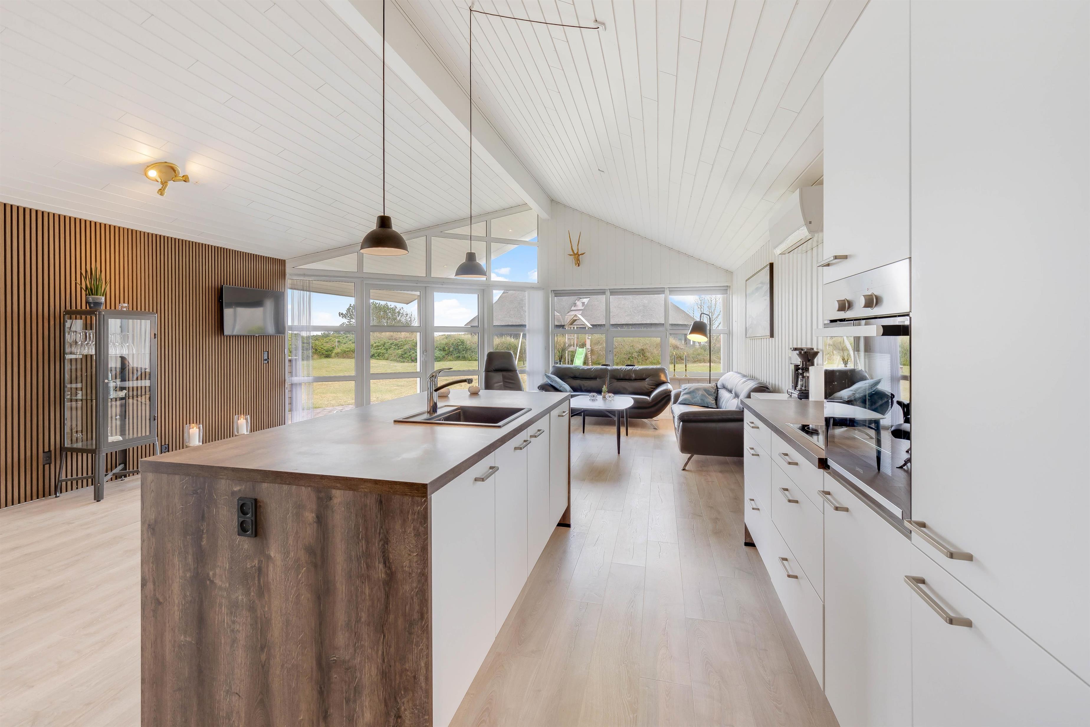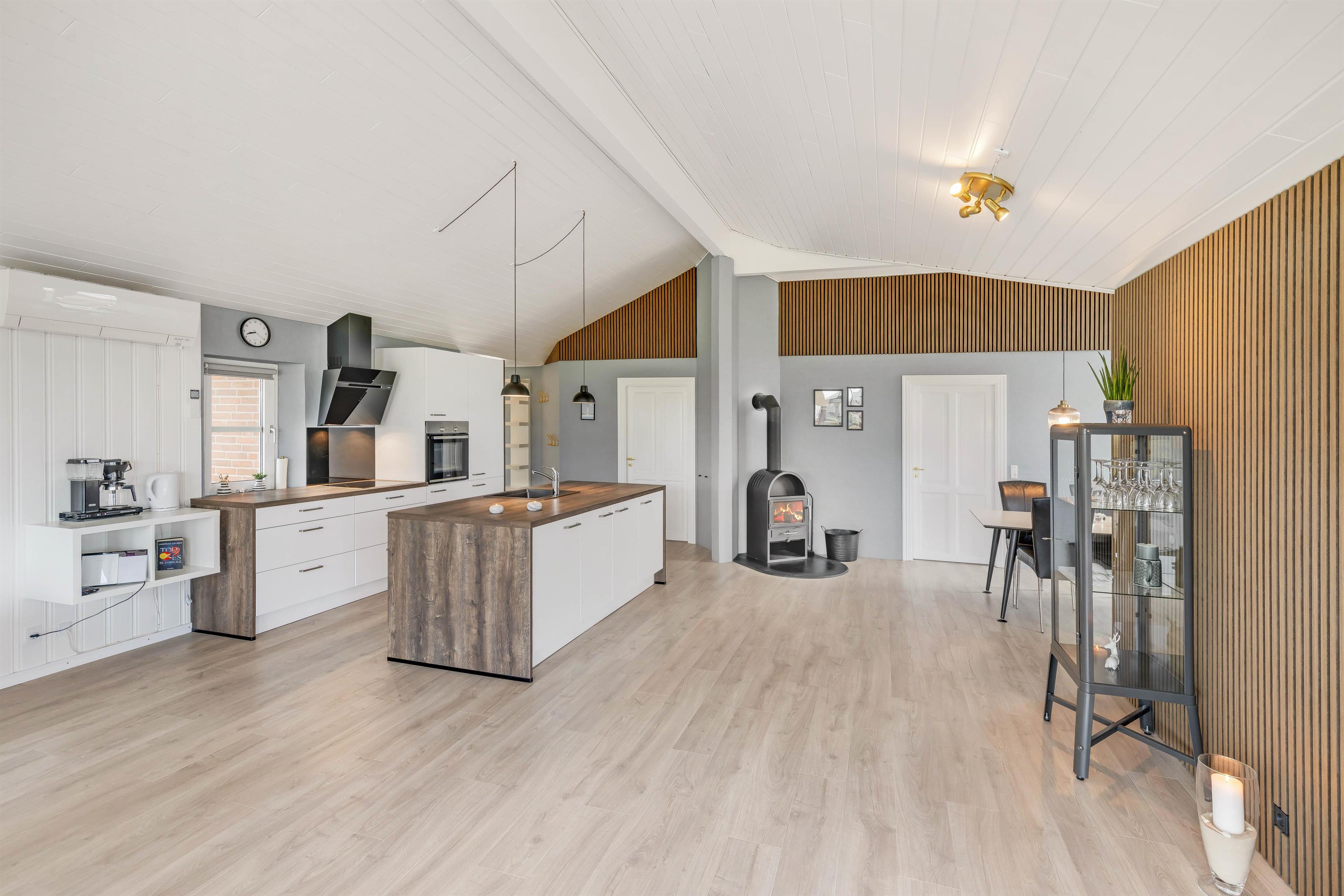 I det nyrenoverede (2022) sommerhus kan I tilbringe hyggelige feriestunder med hele ferieflokken i alrummet, som er sommerhusets hjerte. Her kan I samles til en god film i tv’et, et sjovt spil omkring bordet og hyggelig madlavning i køkkenet. Selv hvis I laver forskellige ting i alrummet, kan I nyde hinandens selskab.