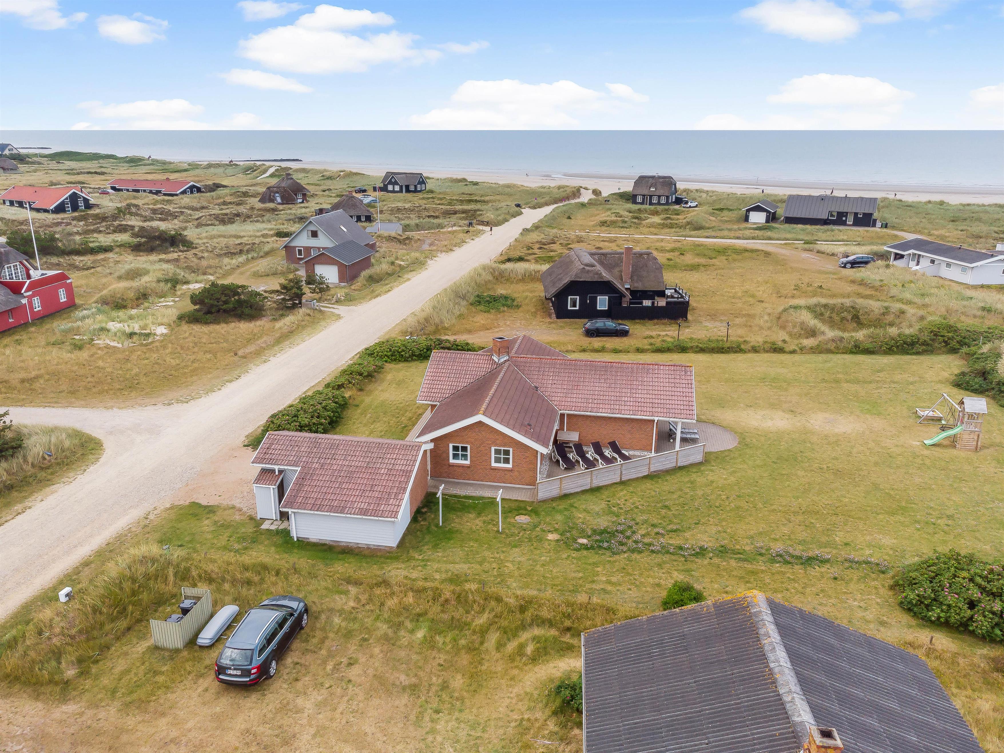 Sommerhuset på Lille Strandvej 6 i Blåvand er beliggende kun 100 meter fra stranden og Vesterhavet, og det vil altså ikke tage jer mange minutter at nå frem til de brede sandstrande og de brusende bølger, som I kan besøge hele året rundt.