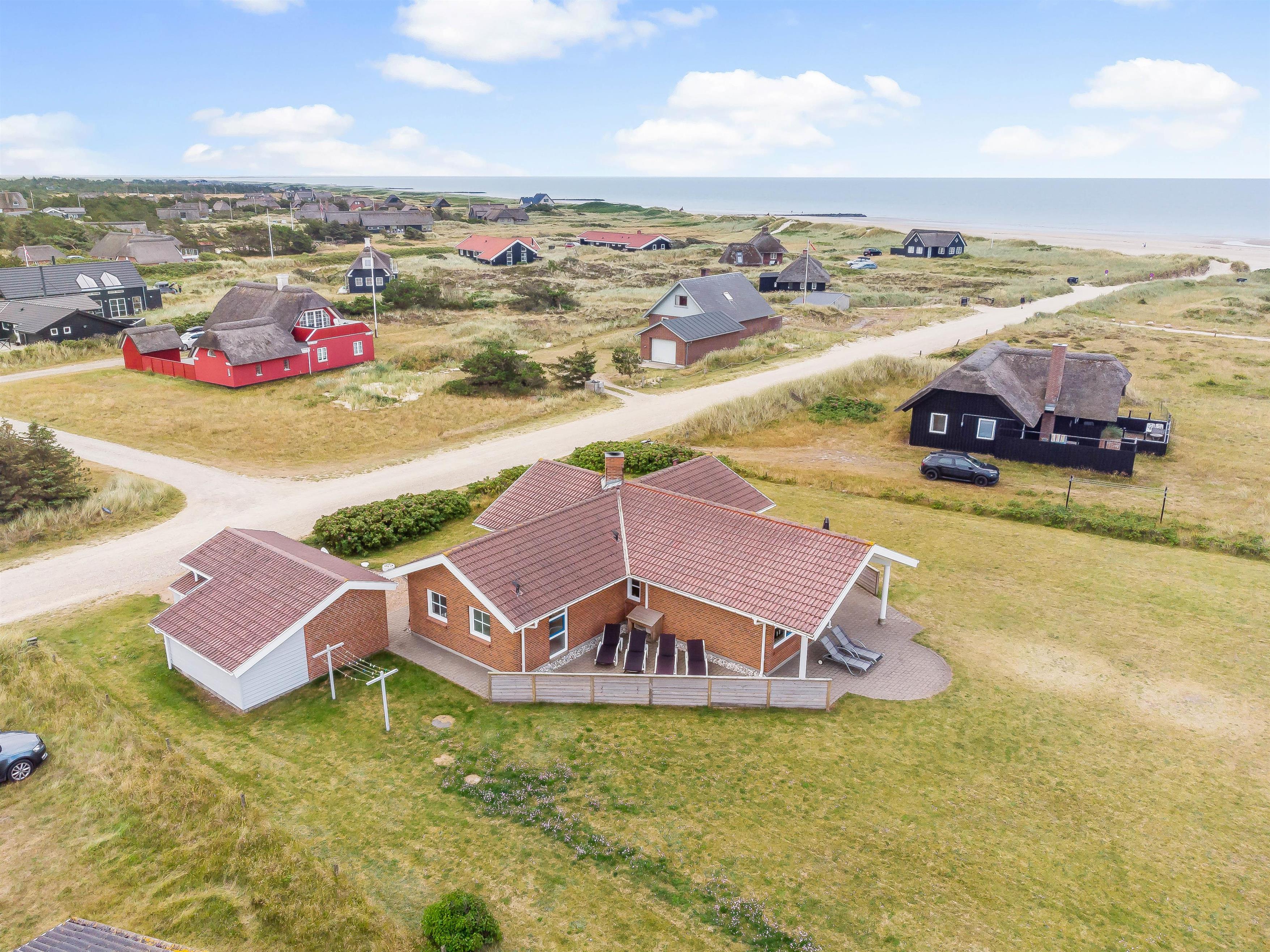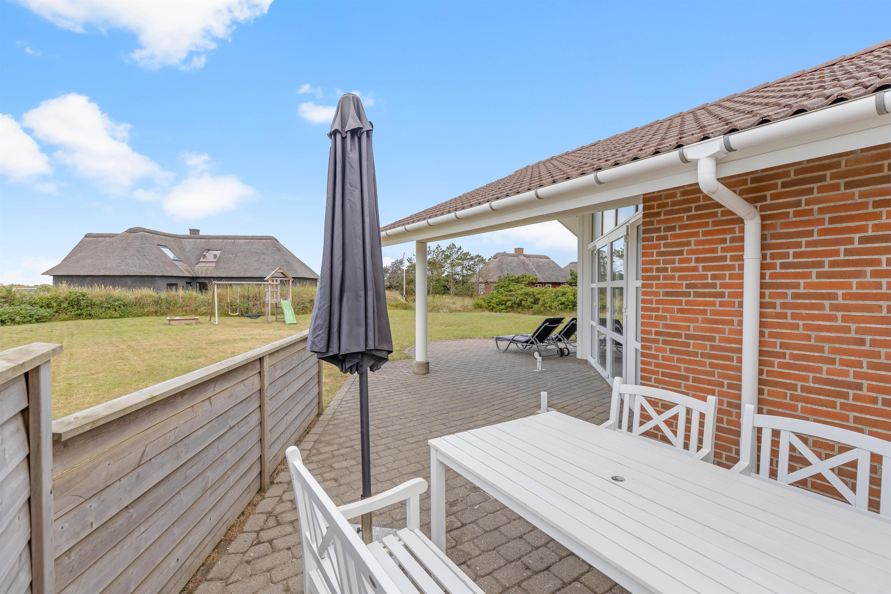 Mens det bliver bygget sandslotte, gynget og leget i haven, kan I slappe af på terrassen, hvor I kan sætte jer til rette i havemøbler og liggestole. Aftensmaden kan I tilberede på grillen og samles til på terrassen med lyden af brændingen i baggrunden.