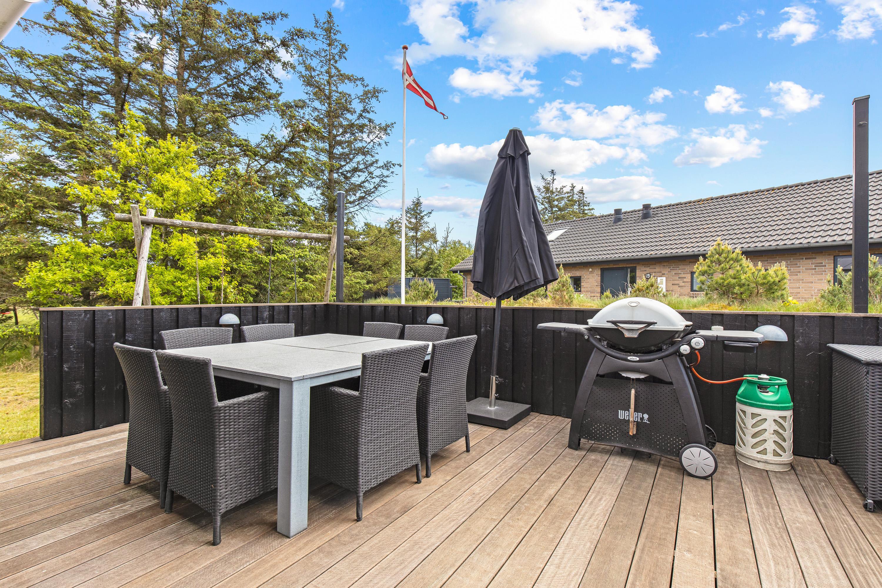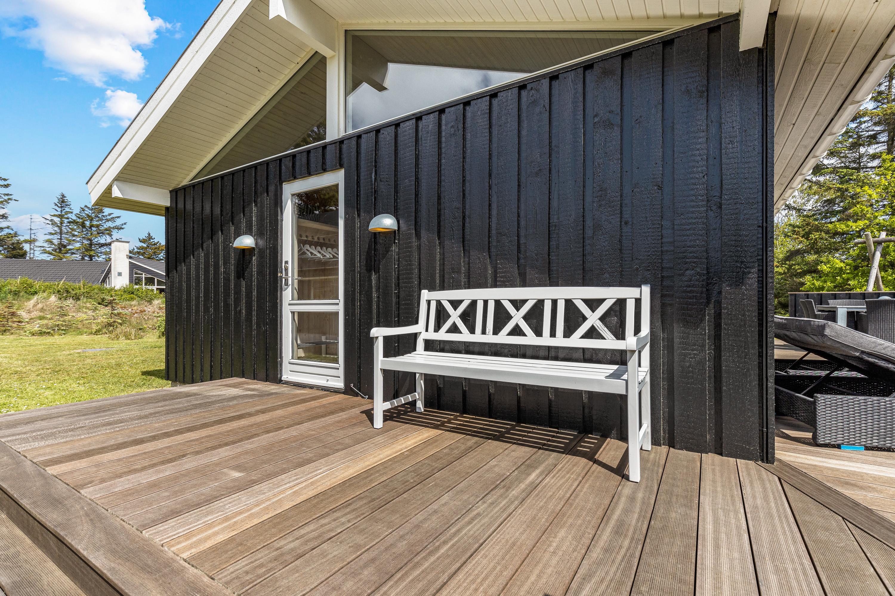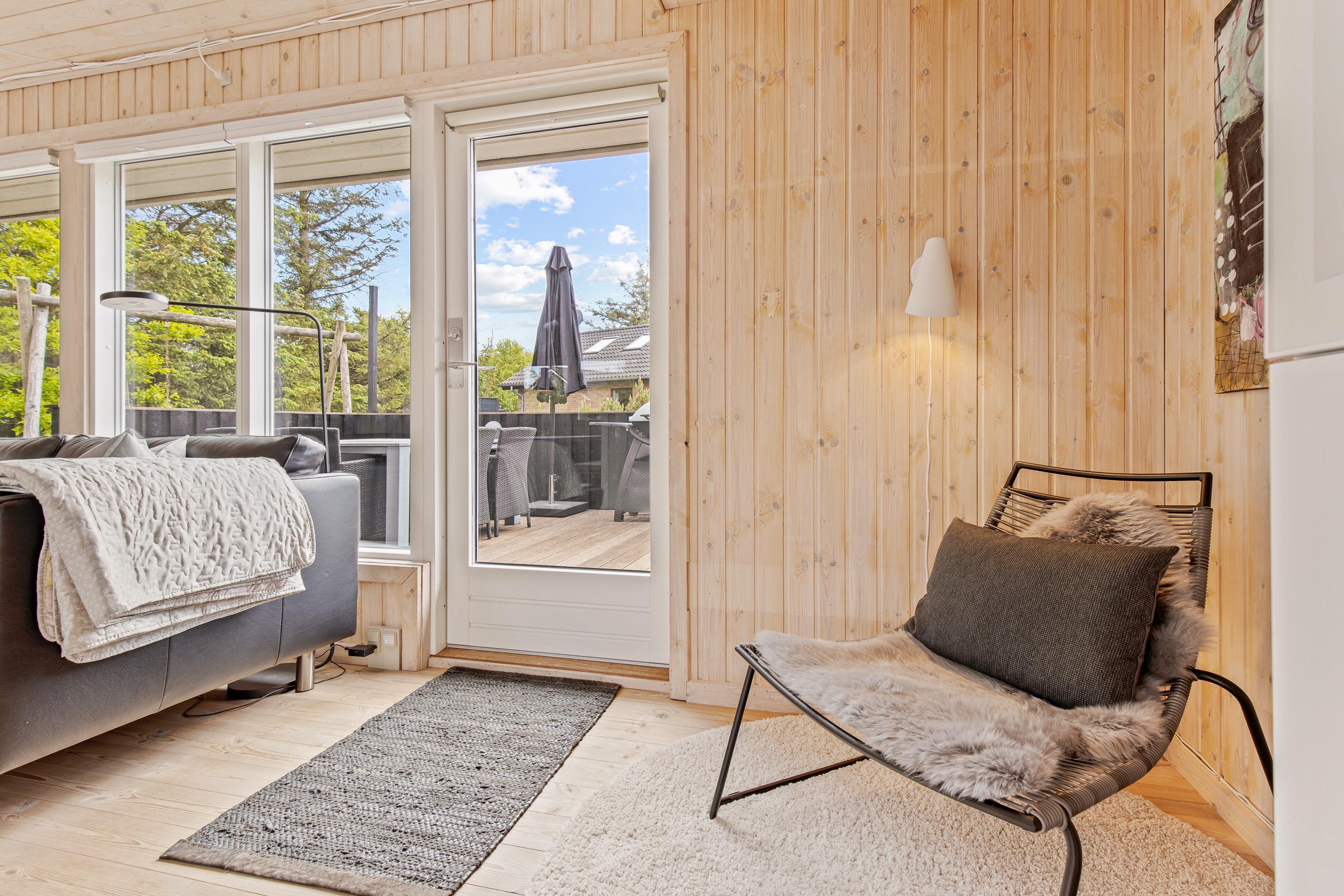 Udendørs venter jer en terrasse, der er cirka 80 kvadratmeter stor, hvor I helt sikkert vil kunne finde jer en god plads i solen, hvor I kan sætte jer til rette i havemøblerne og liggestolene, mens I bare slapper fuldstændig af. Terrassen strækker sig fra sommerhusets sydside til vestsiden, så I kan nyde solen det meste af dagen.