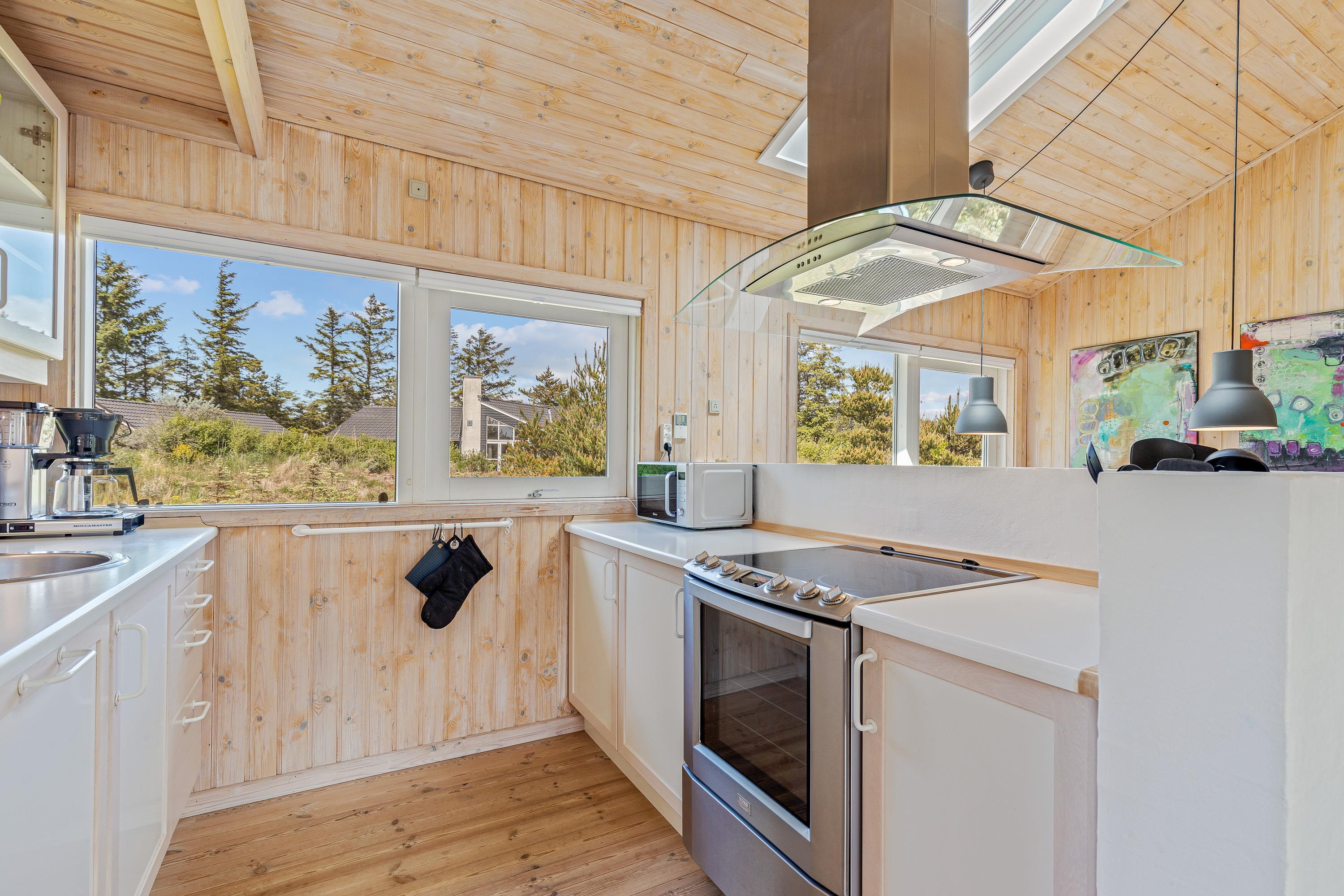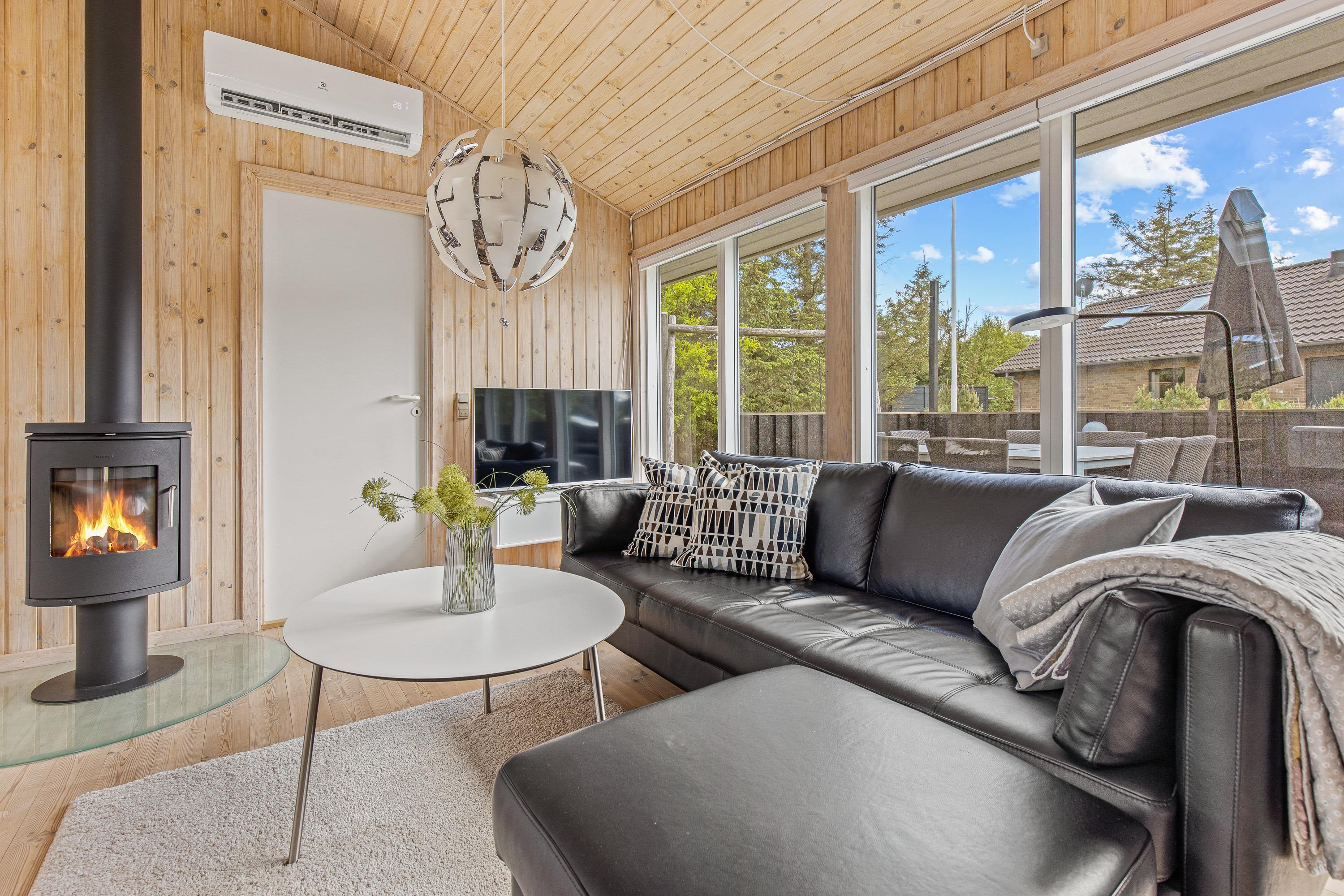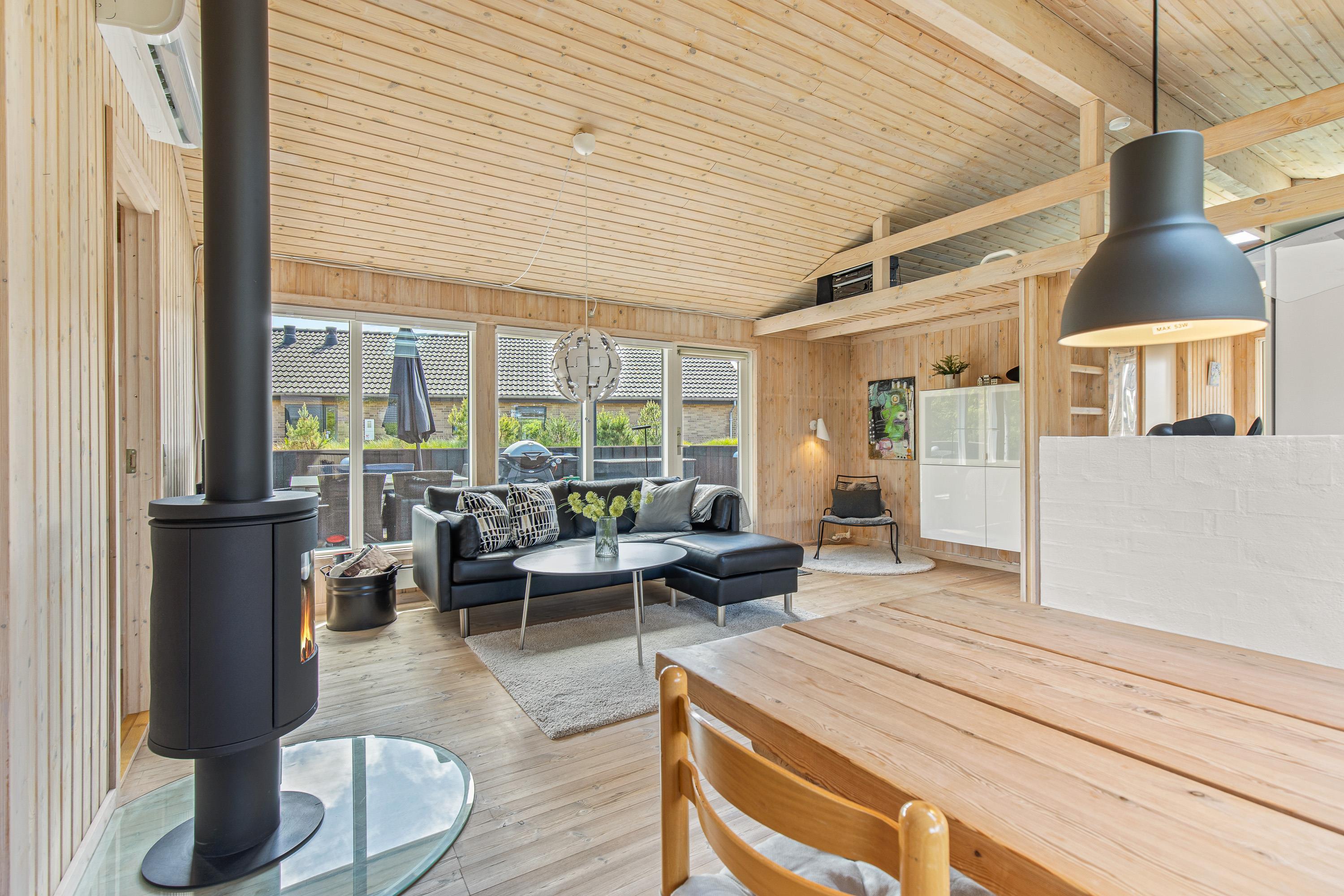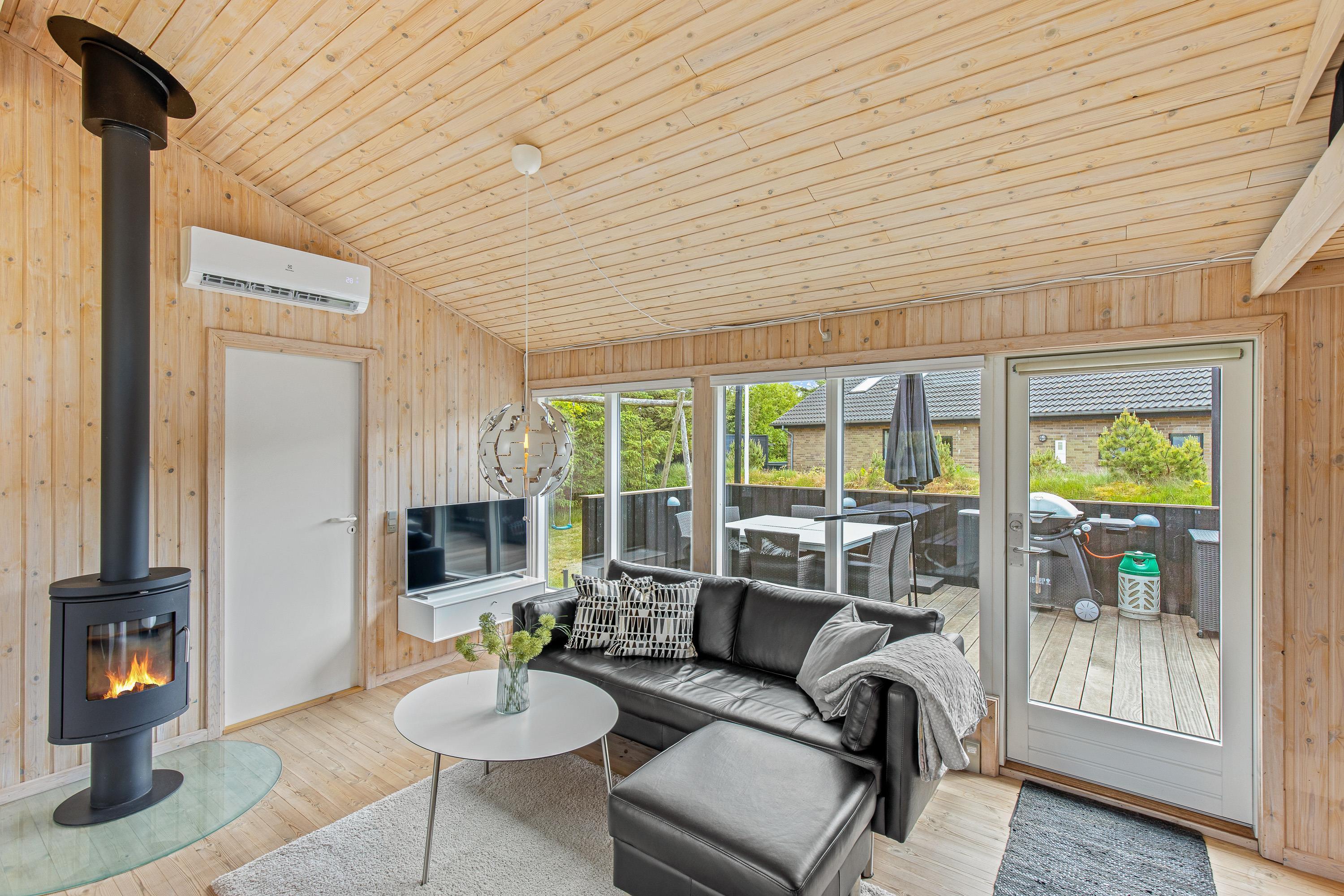 Foruden brændeovnen byder feriehuset også på en energivenlig varmepumpe, der både kan varme og køle, og som sørger for behagelige temperaturer indendørs. Desuden er feriehuset udstyret med opvaskemaskine, vaskemaskine og tørretumbler, som hjælper jer med det praktiske husarbejde i løbet af ferien.